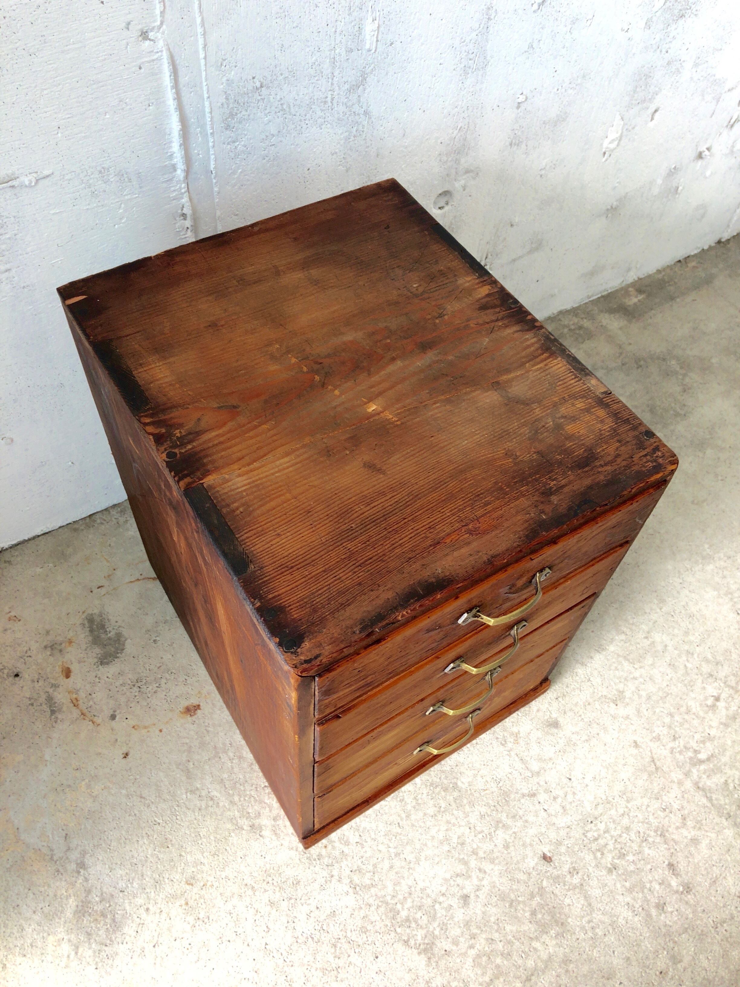 古い小引き出しになります。スレや当たりキズ、欠け、割れ、落としきれない汚れなどがあります。引出し中は少し汚れがありますが、開閉は比較的スムーズに行え日常気軽にお使いいただけます。全体的に状態も良く、まだまだ実用的にお使いいただけます。