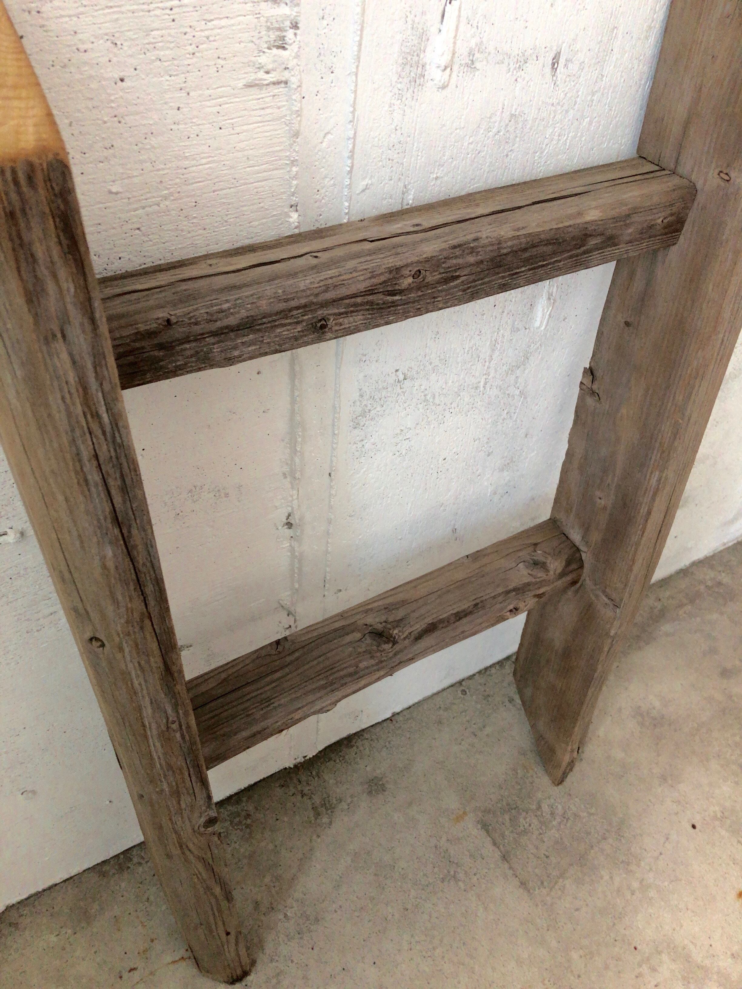 古い木製のラダーになります。スレや剥げ、割れ、欠け、当たりキズ、落としきれない汚れなどがあります。少しのぐらつきなどはありますが、しっかりとした造りで全体的に状態も良いので、まだまだ実用的に活躍してくれます。