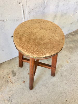 木の温かみを感じさせてくれる木製のスツール。レトロな布張りの座面も感じ良く、シンプルなデザインでお部屋にもすっと馴染んでくれそうです。少しがたつきはありますが、状態は良いです。実用使いでアトリエや食卓用の椅子、キッチンや玄関先で腰掛け椅子としても感じ良さそうです。