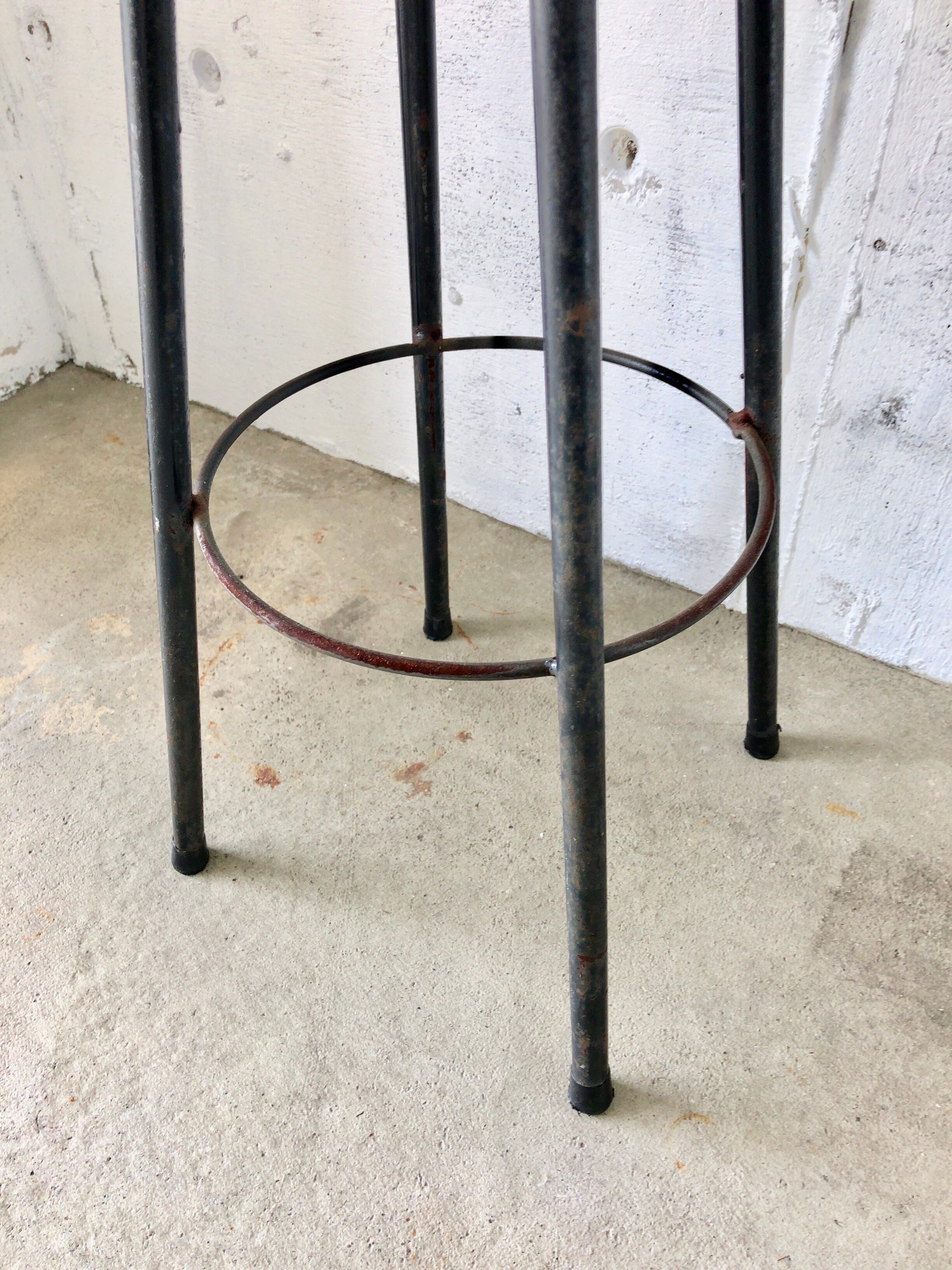 新材と古い鉄脚のスツールになります。スレや剥げ、サビ、欠け、当たりキズ、落としきれない汚れなどがあります。古い鉄脚になりますので少しのがたつきはありますが、強度上問題なくお使いいただけます。全体的に状態も良く、まだまだ実用的に活躍してくれます。