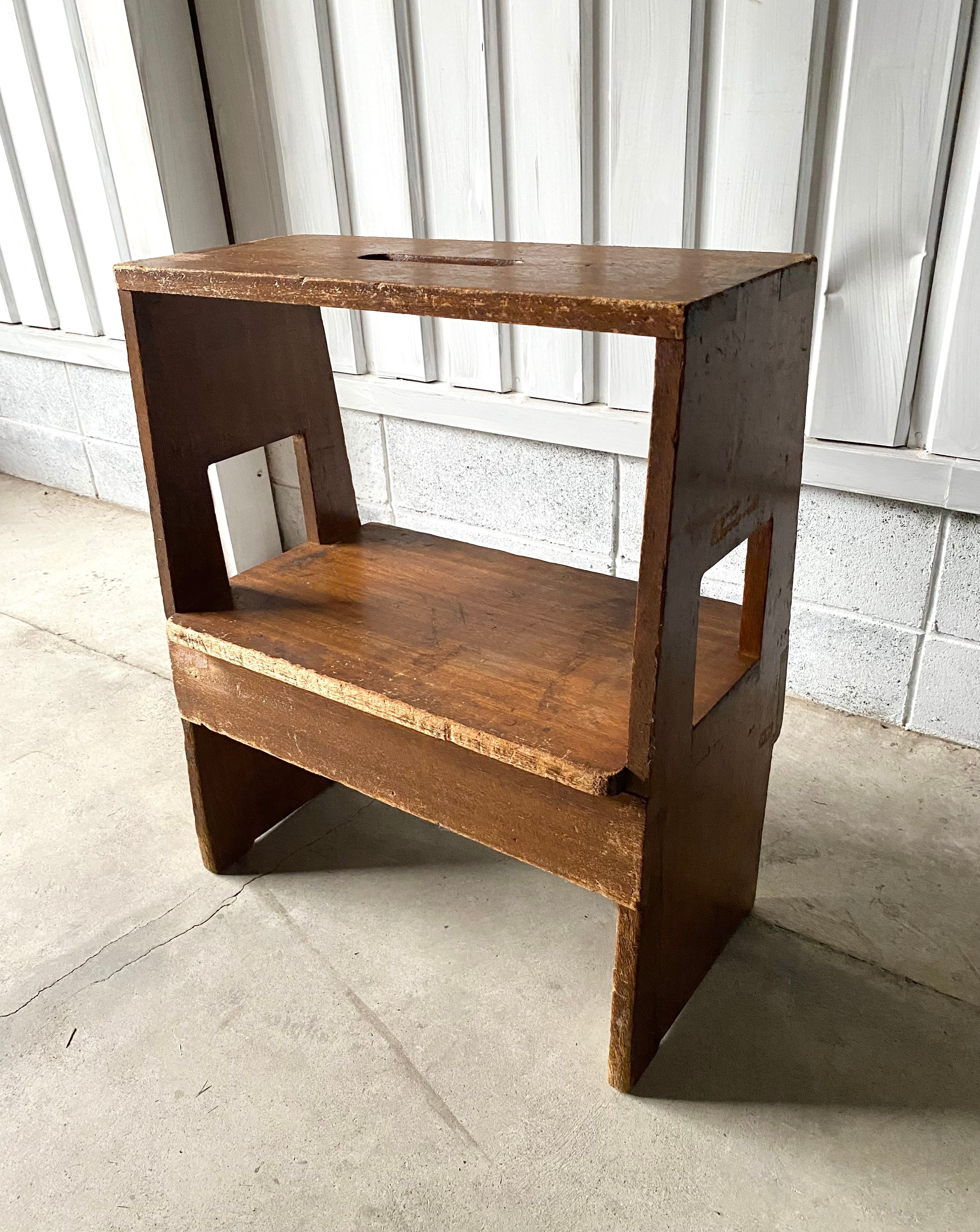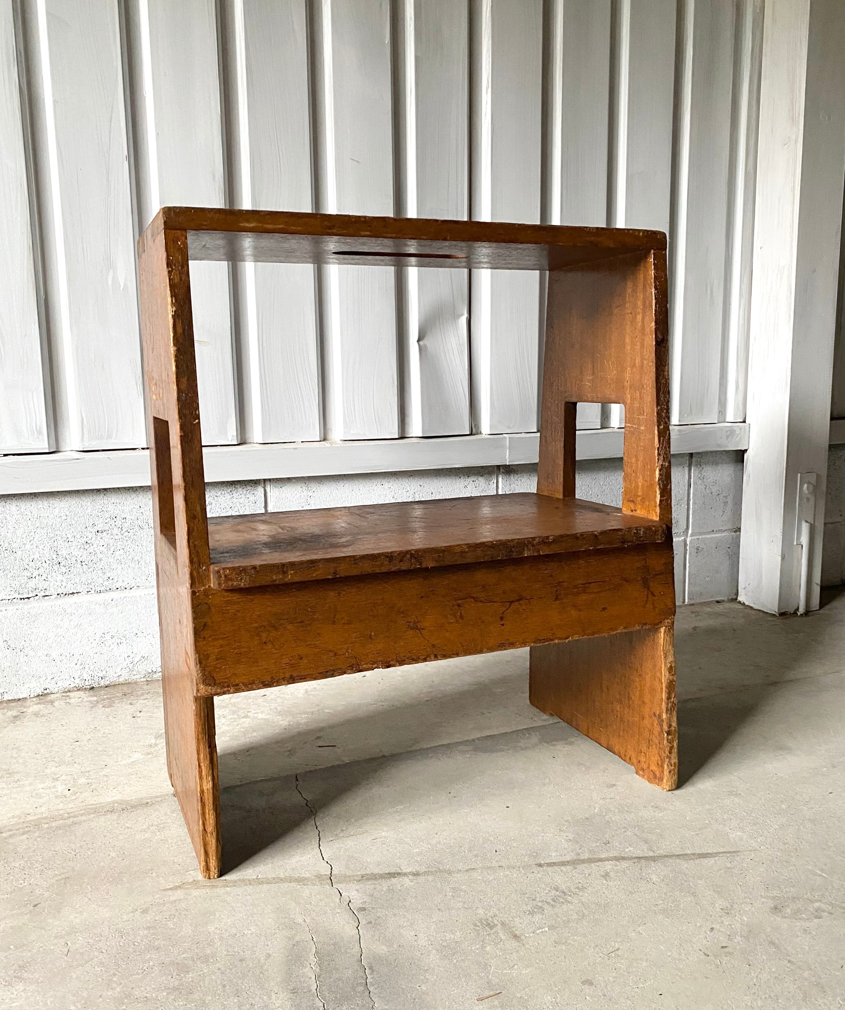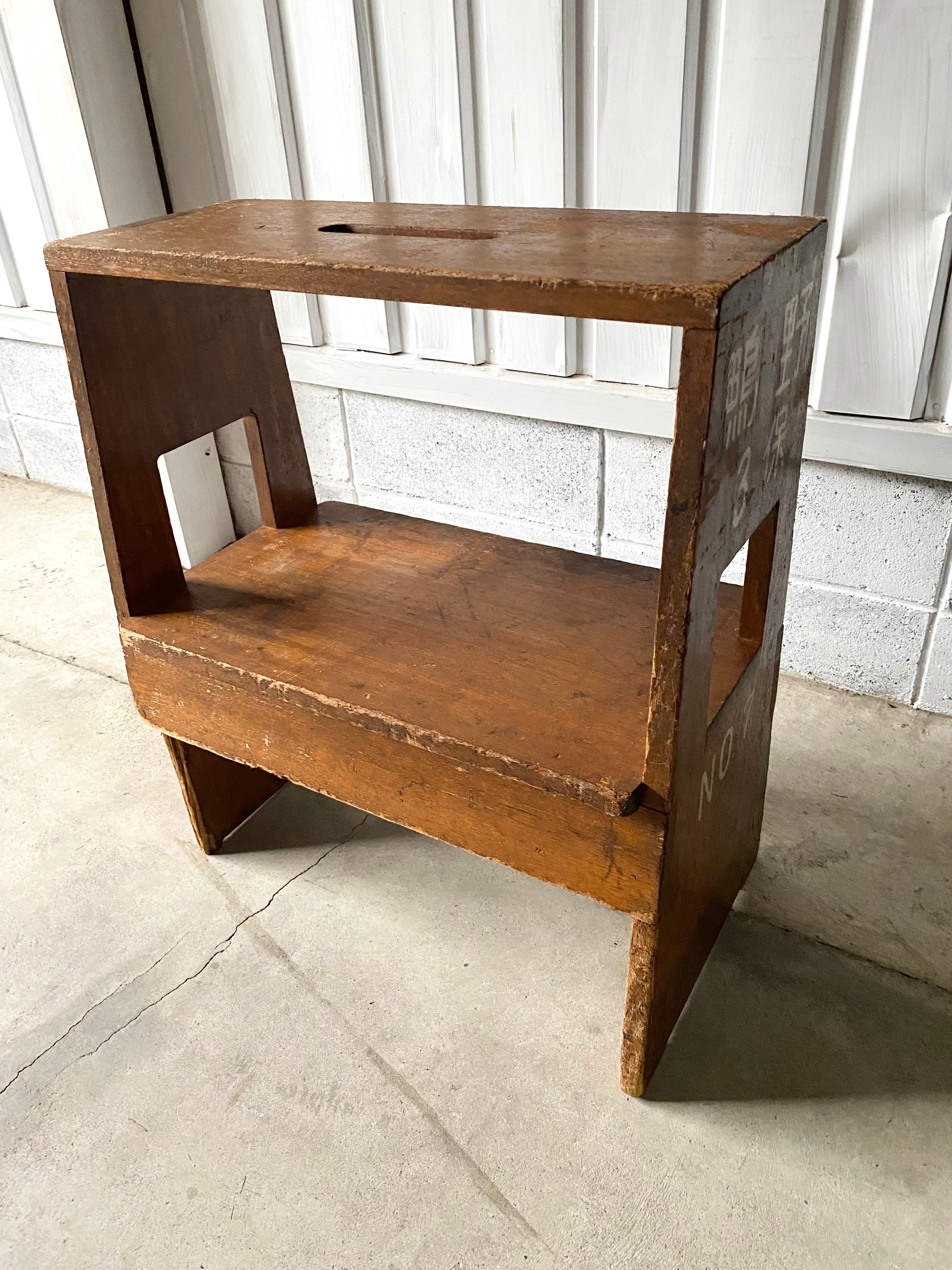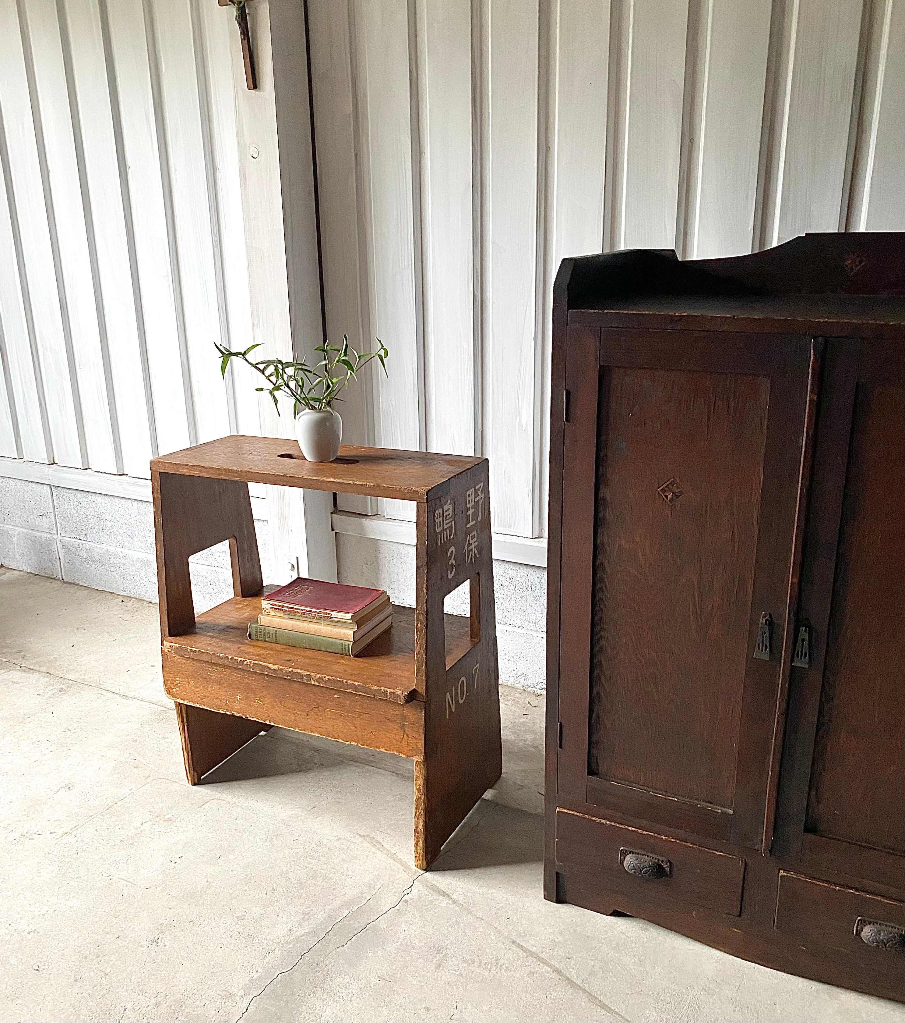 経年変化の味のある木肌、シンプルな姿が使いやすい飾り台。上と横に手を入れられるので持ち運びも便利です。踏台としてもお使い頂けます。お気に入りの小物や植物を飾る台としても素敵です。