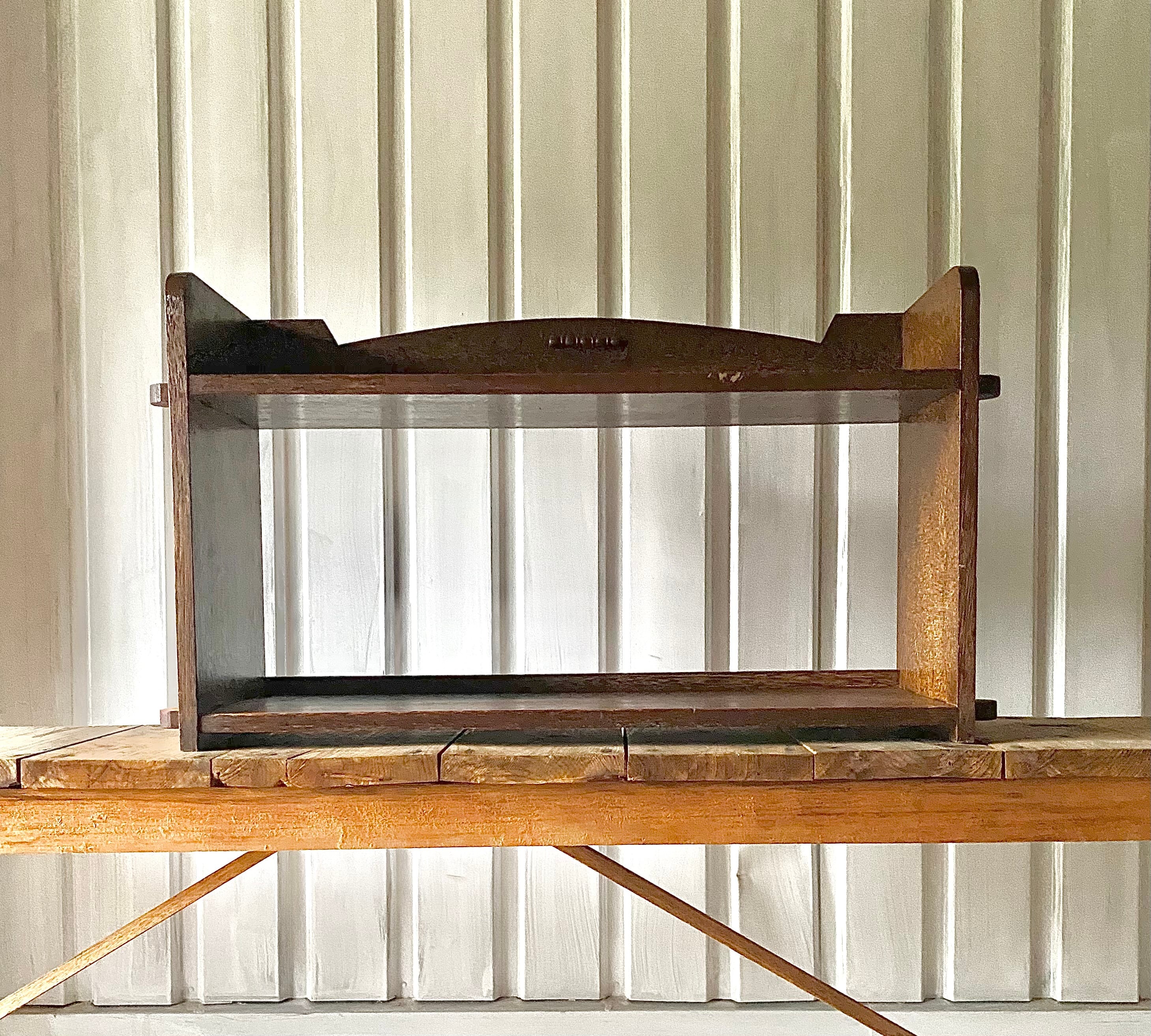 小振りなサイズ感が可愛らしい横幅のある楔棚。釘を使わず楔で組み立てられているのでしっかりとしています。お部屋の卓上やカウンター上に置いて、お気に入りの小物や植物を飾っても素敵です。