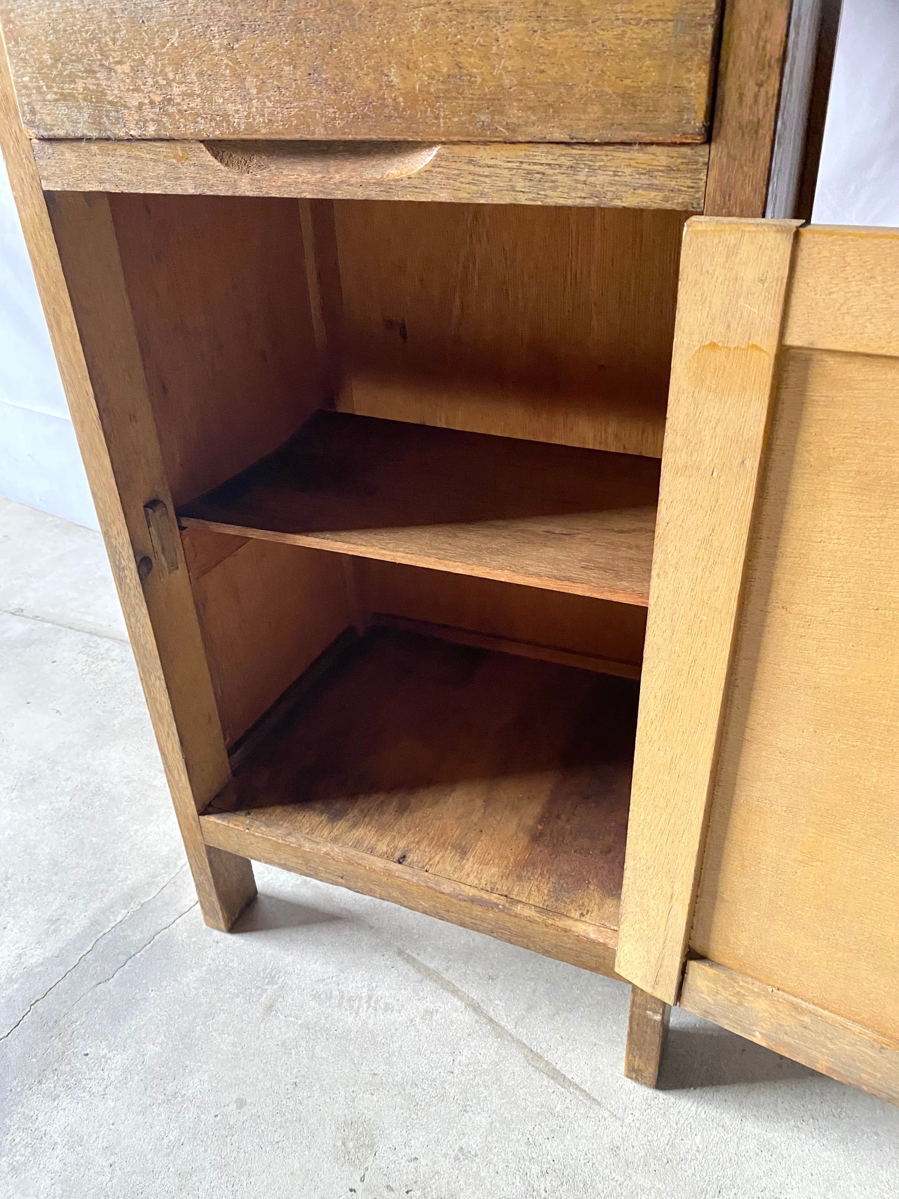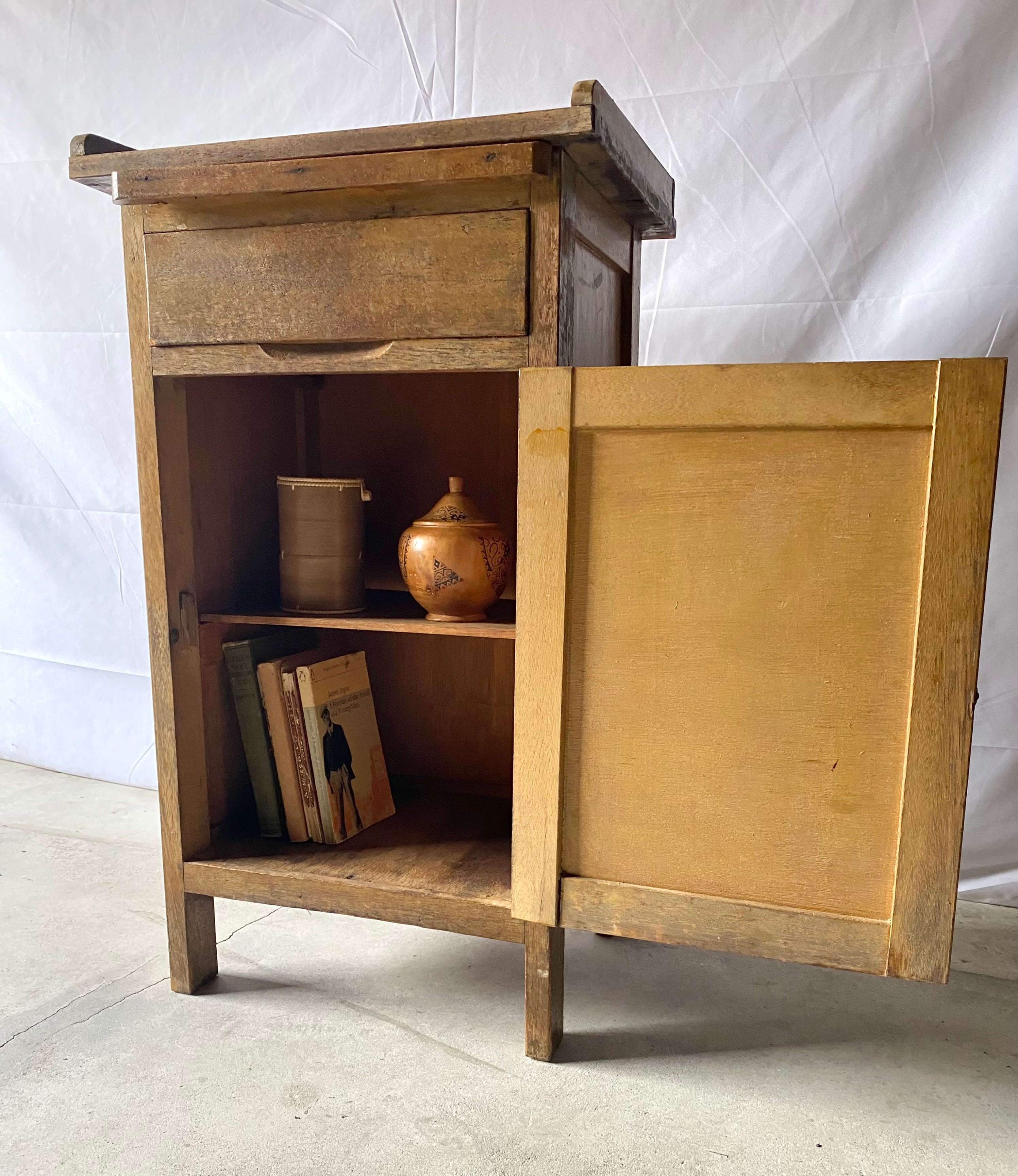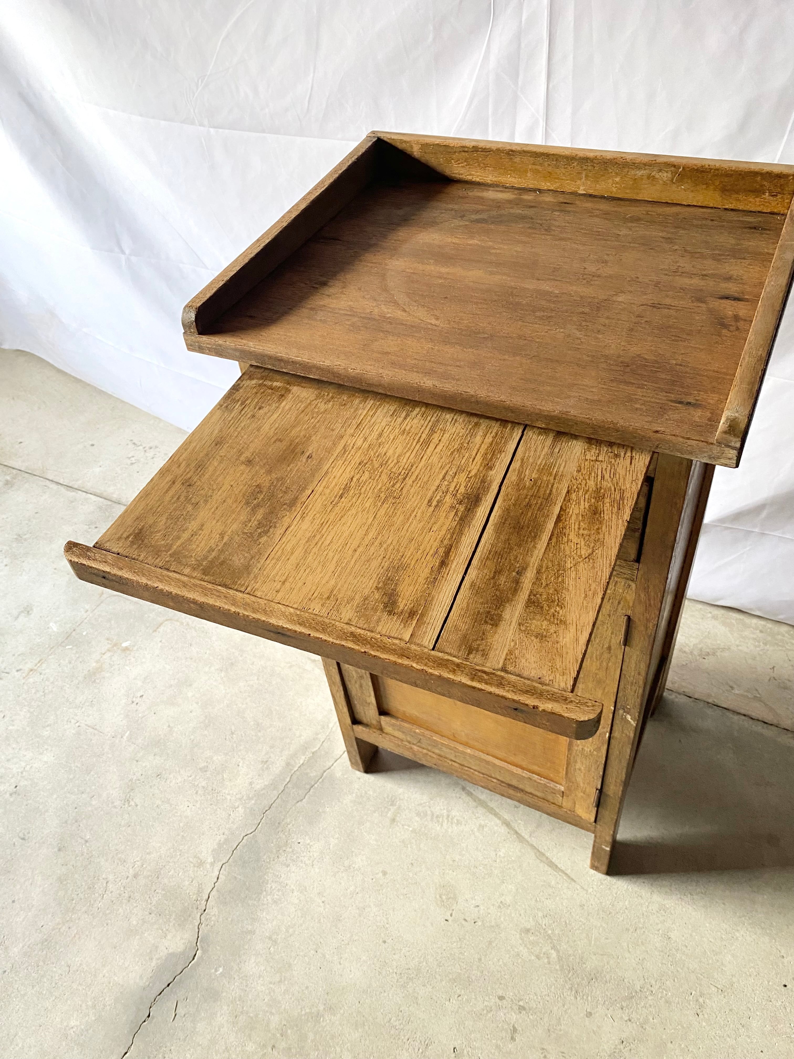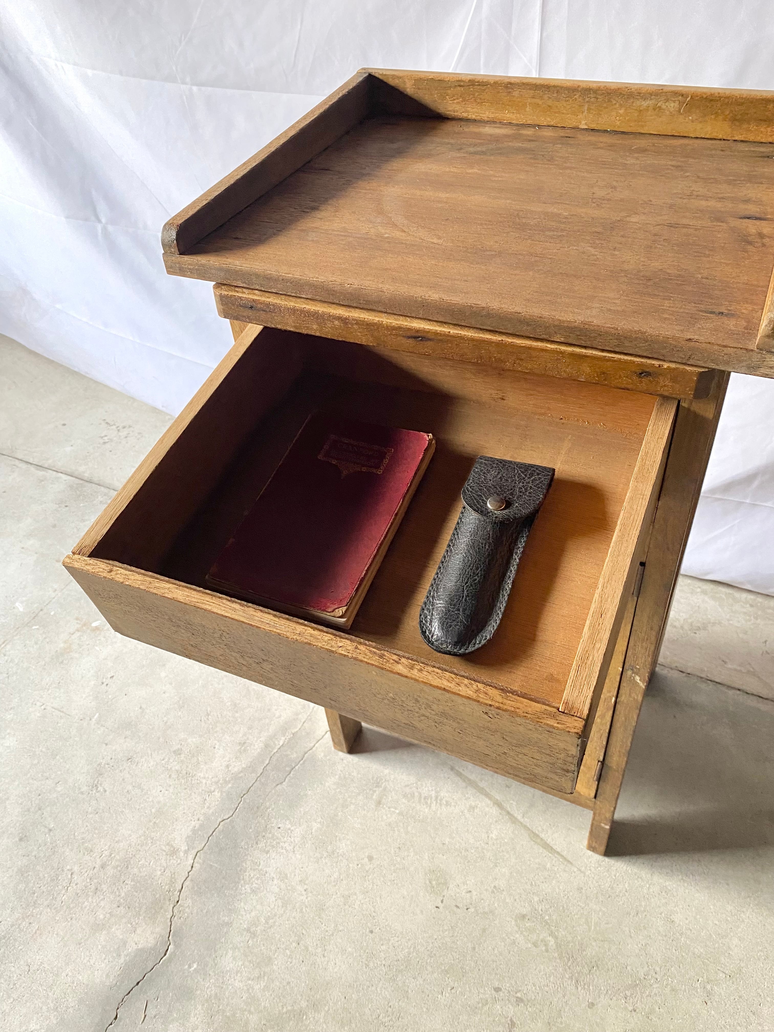 時を重ねた木肌の風合いが魅力の、味わい深い古家具の袖机です。書類や道具を収納し、必要な時は天板を引き出して作業台に。キッチンでは食器や調理道具の収納にも使えそうです。日常に自然と溶け込み、実用性もしっかり備えた一点物です。