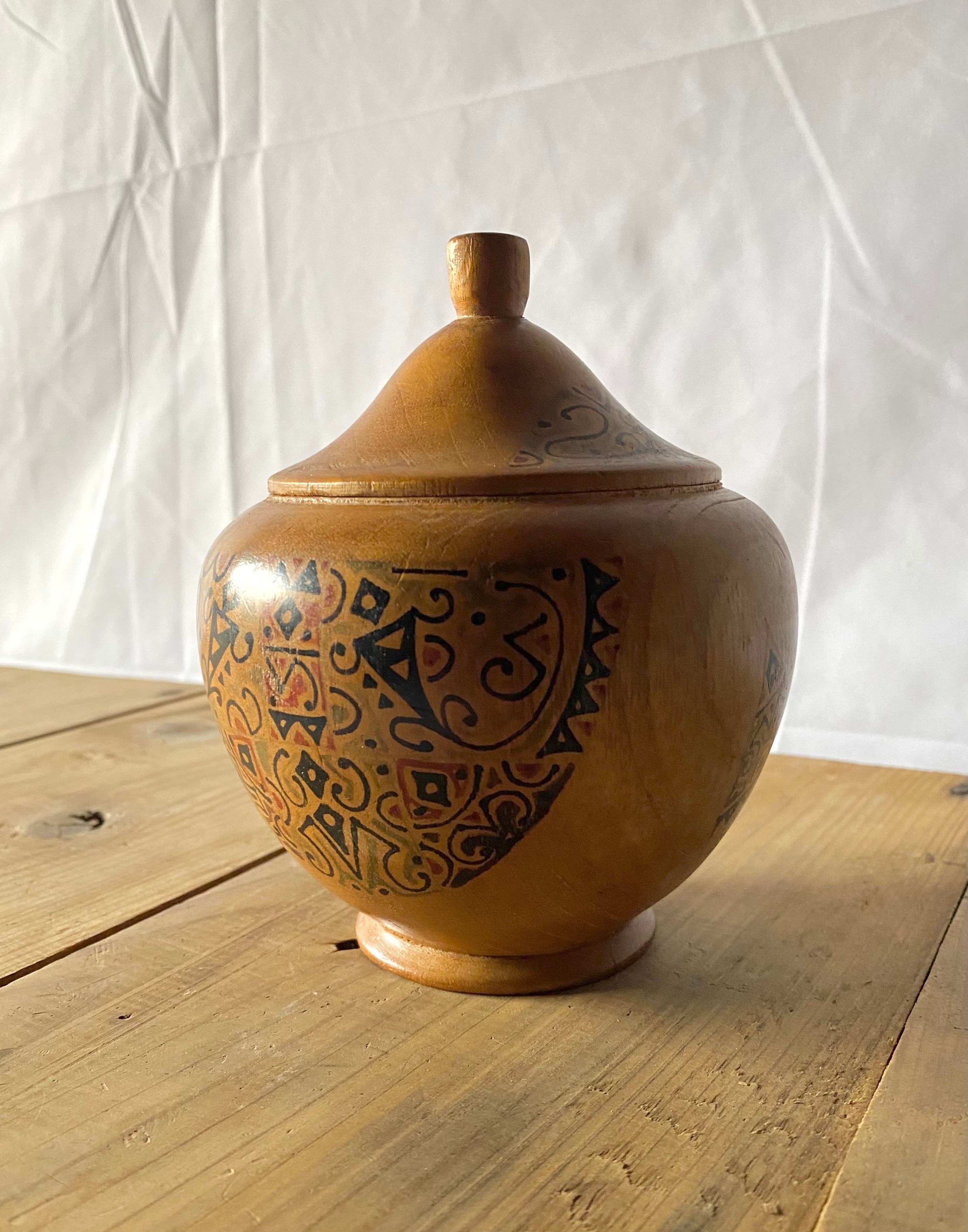 温かみのある細やかな模様が施された小ぶりな小物入れ。