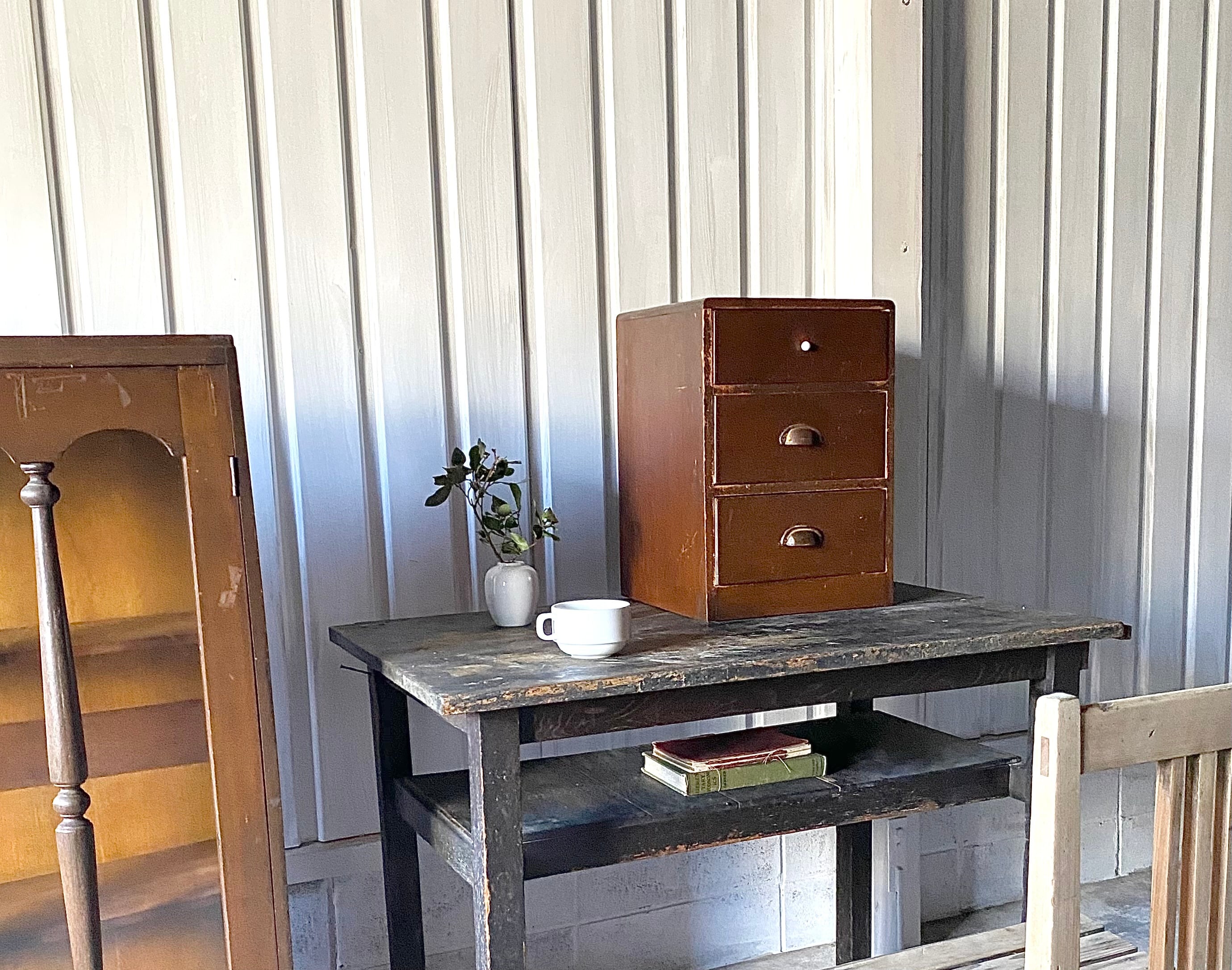 味のある取手の小引出し3杯[古家具]