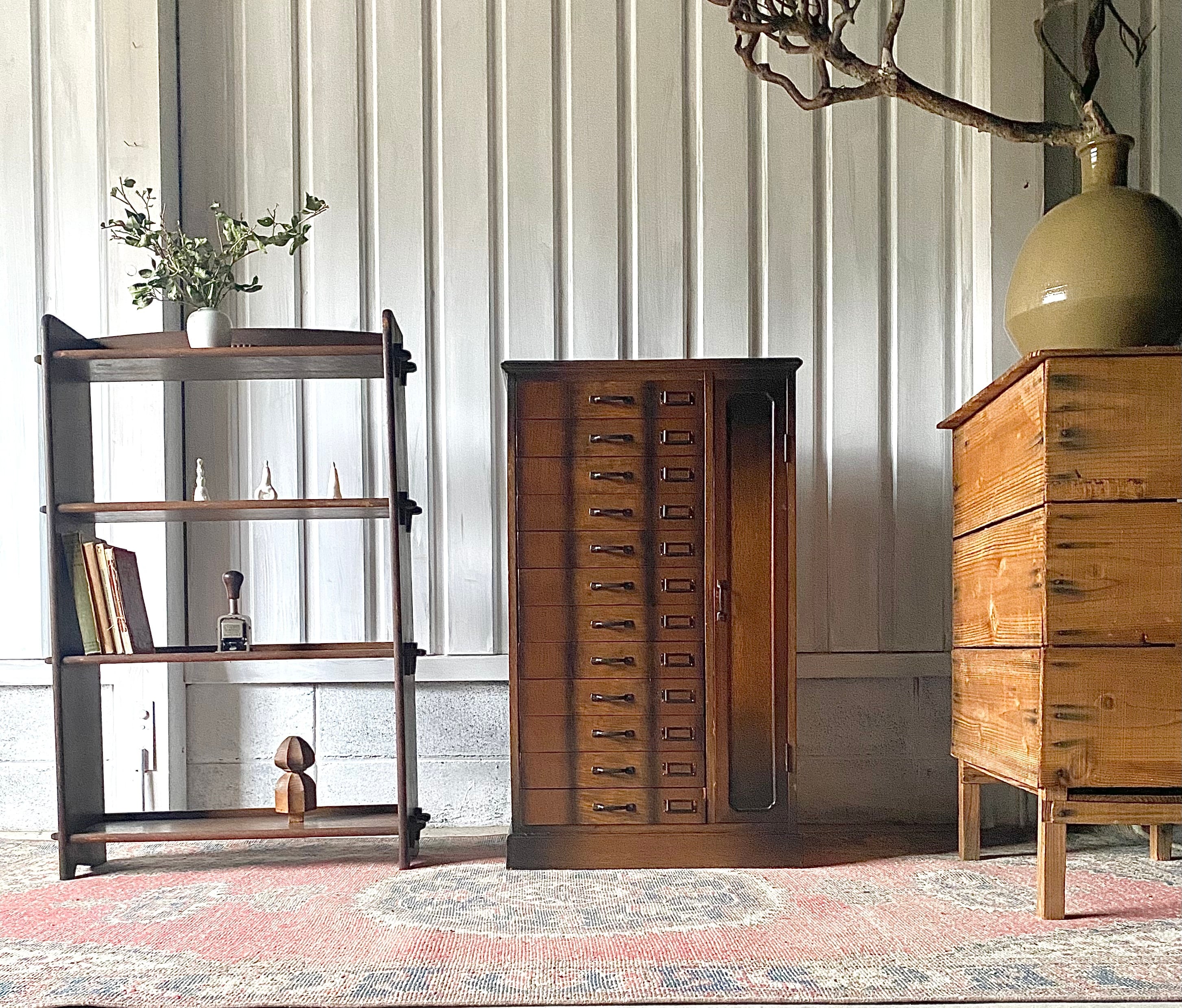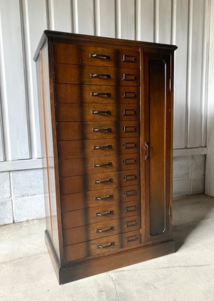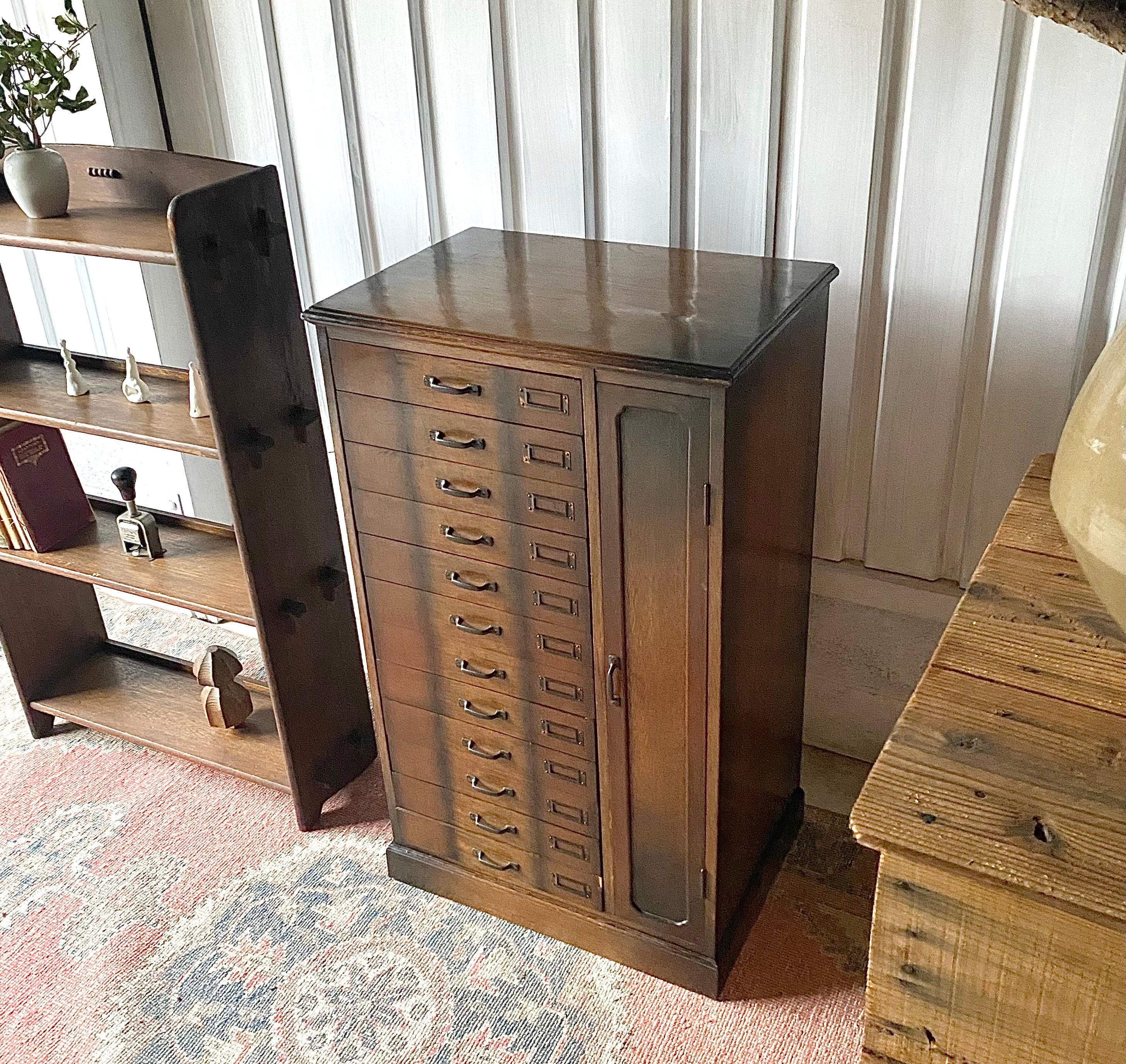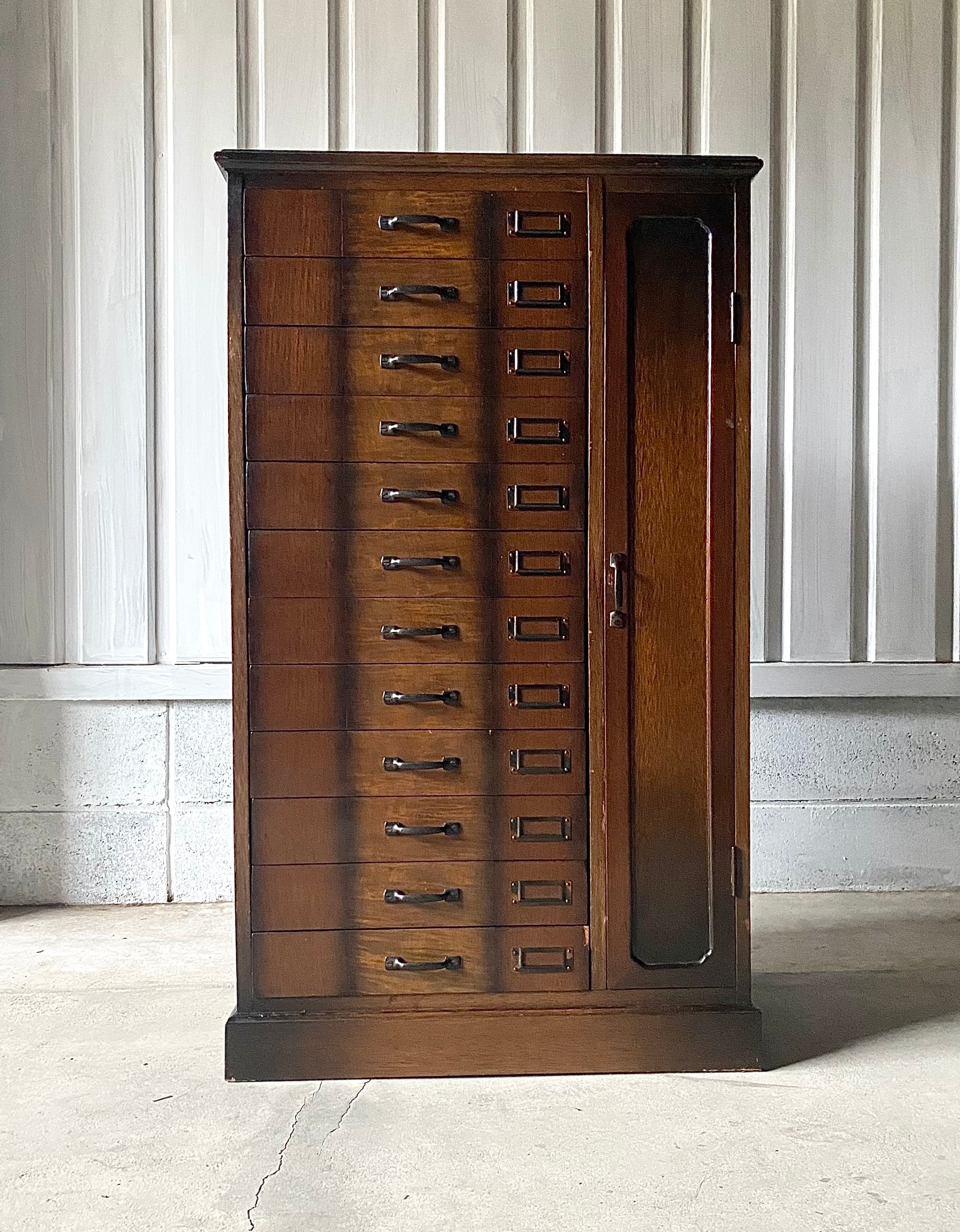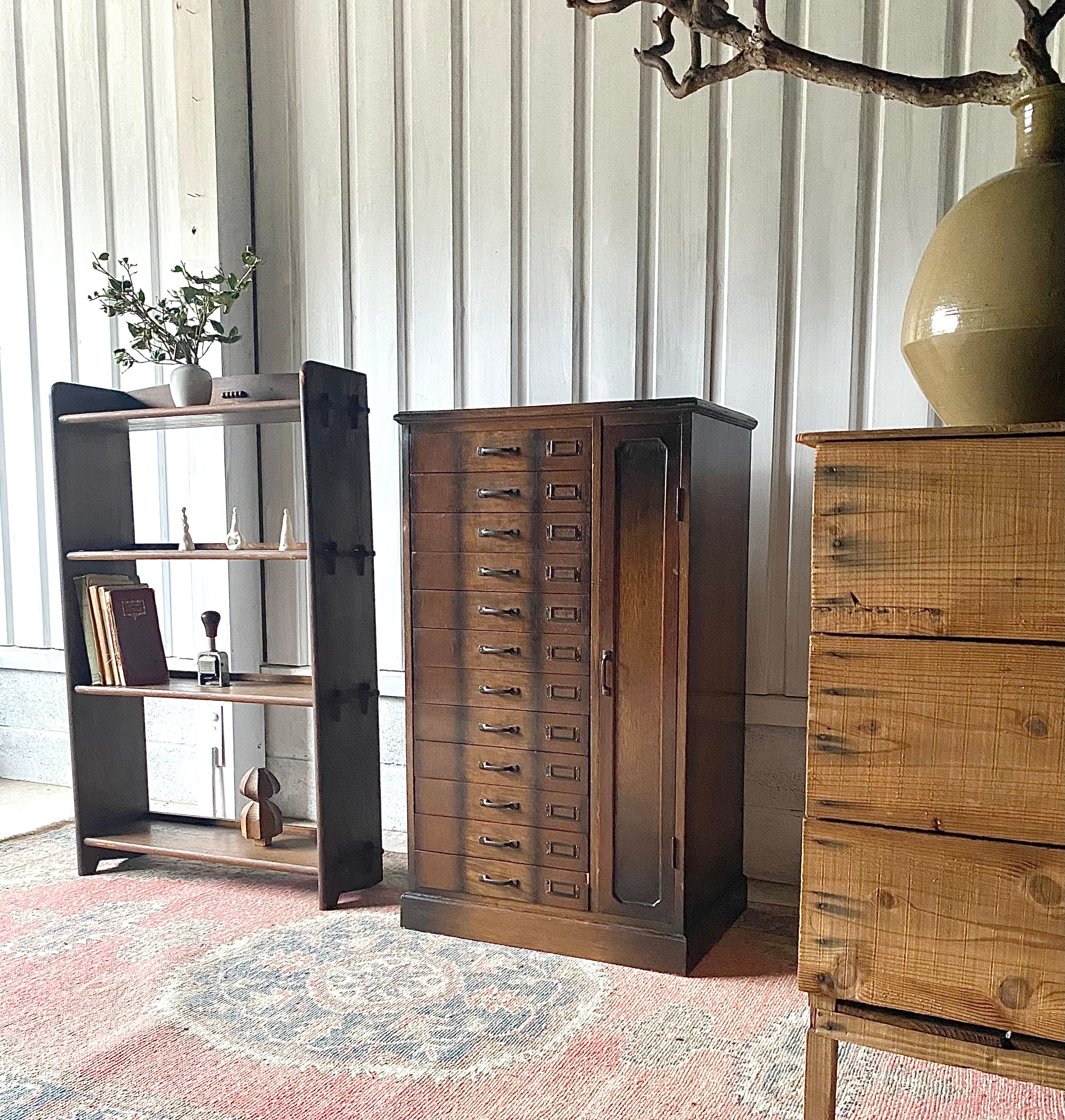 品のある佇まい、12杯の引出しが綺麗に並んだ収納棚。引出しにはネームプレートが付いていて仕分にも便利です。リビングやアトリエで本やステーショナリー、紙物、パーツ、書類などの収納としても素敵です。
