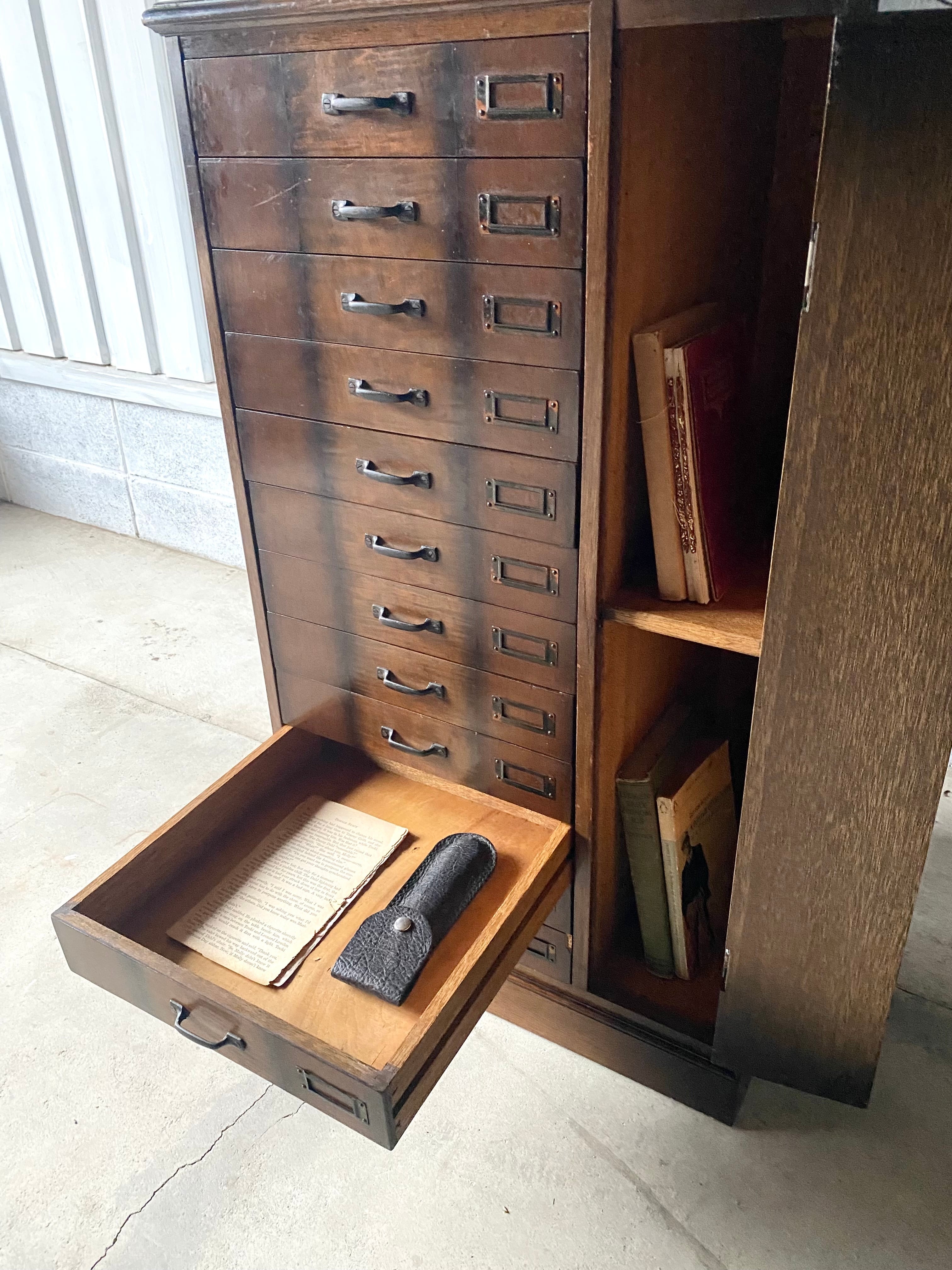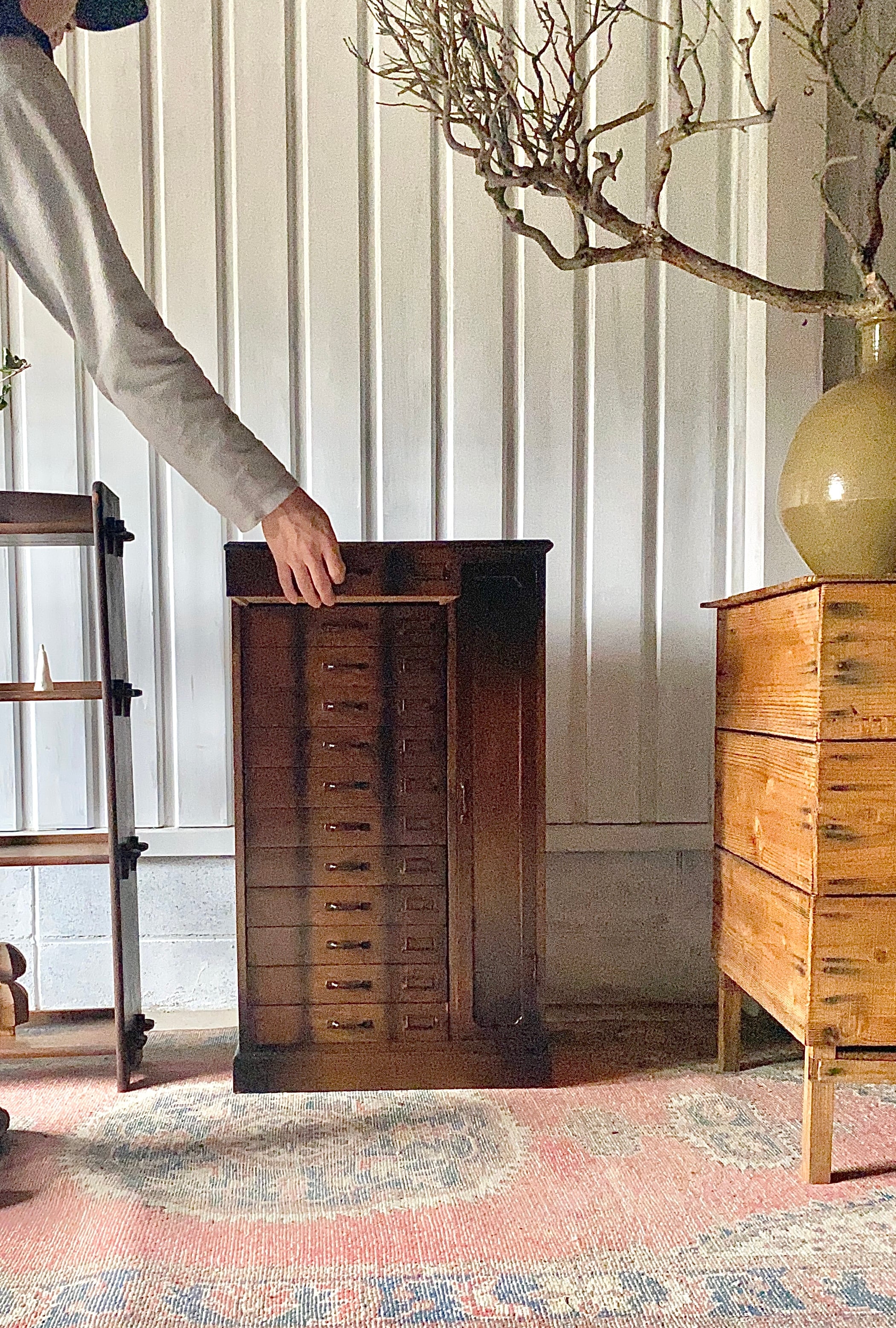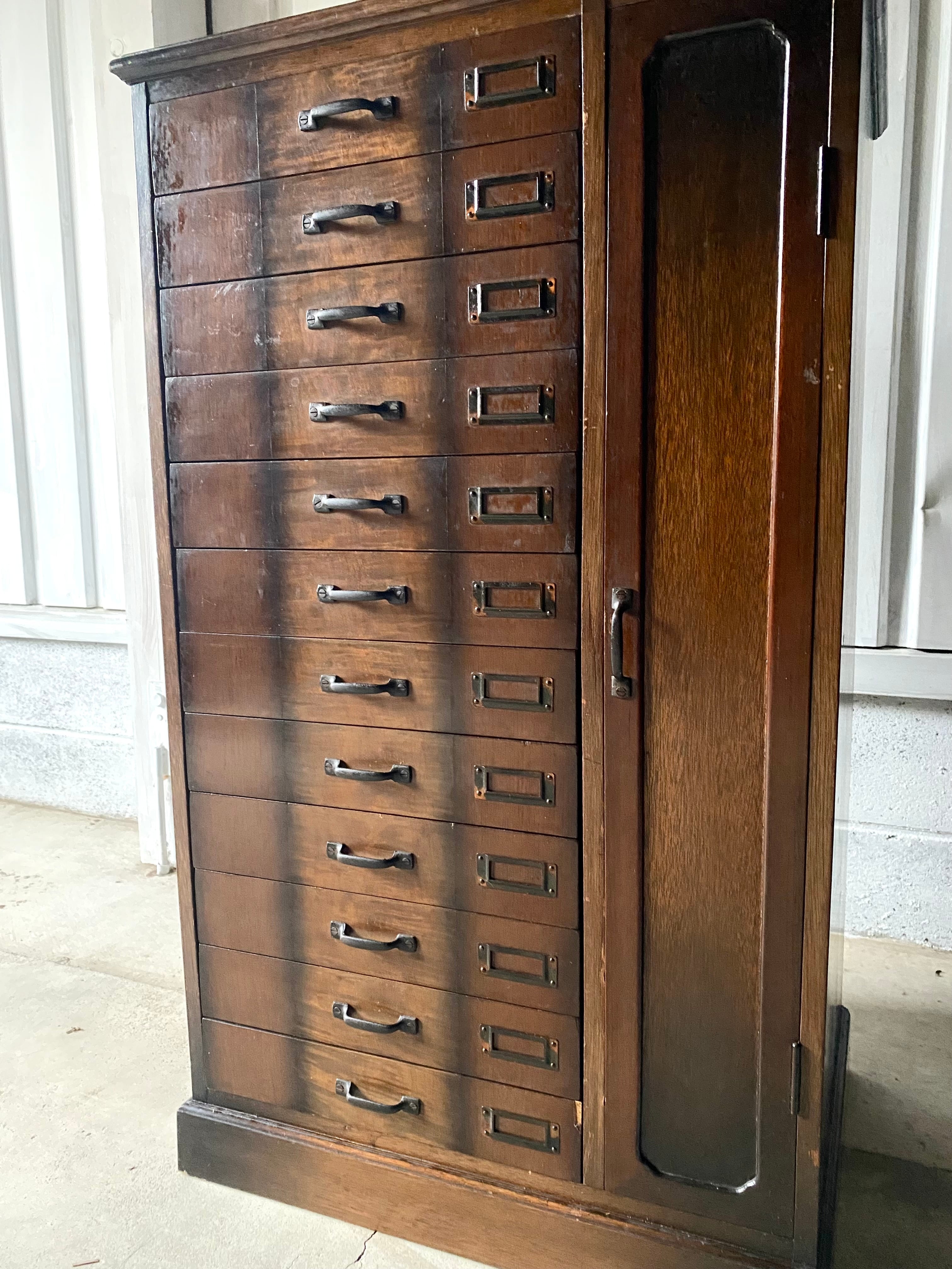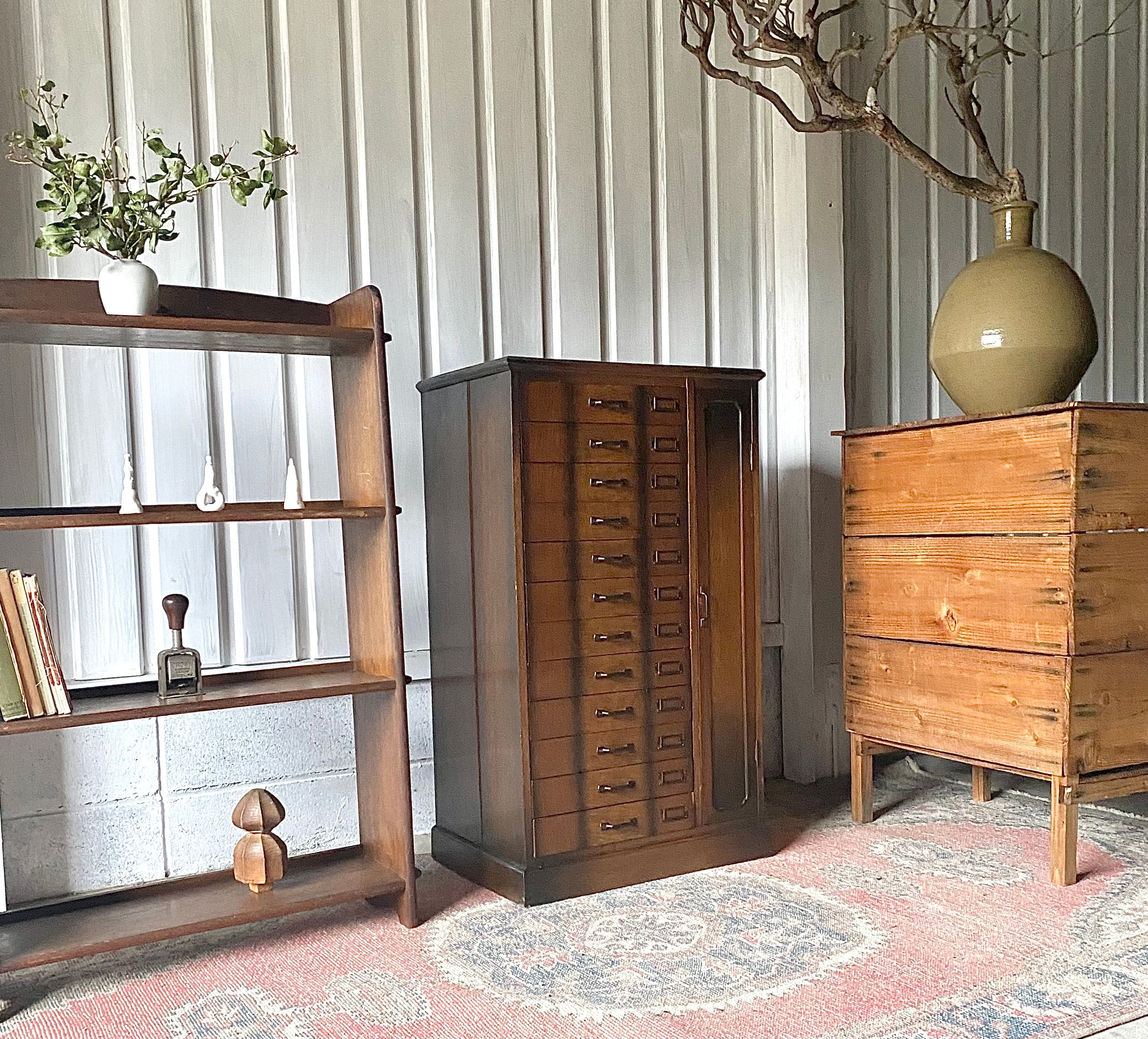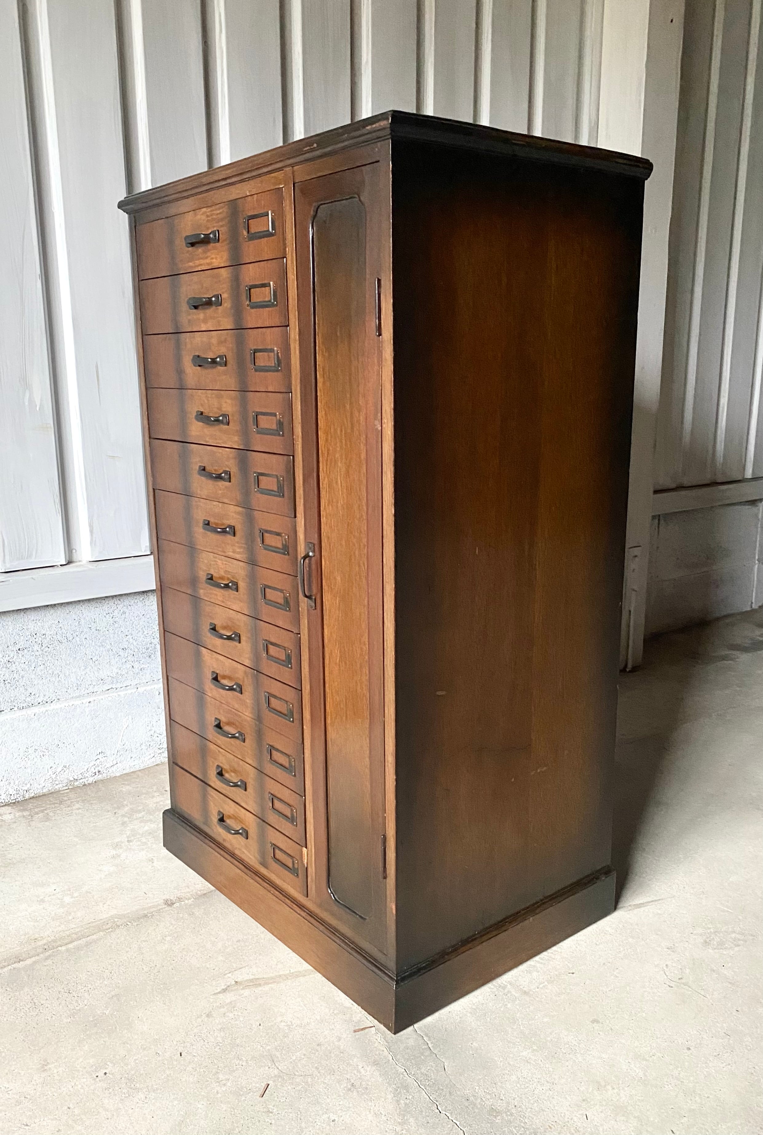 品のある佇まい、12杯の引出しが綺麗に並んだ収納棚。引出しにはネームプレートが付いていて仕分にも便利です。リビングやアトリエで本やステーショナリー、紙物、パーツ、書類などの収納としても素敵です。