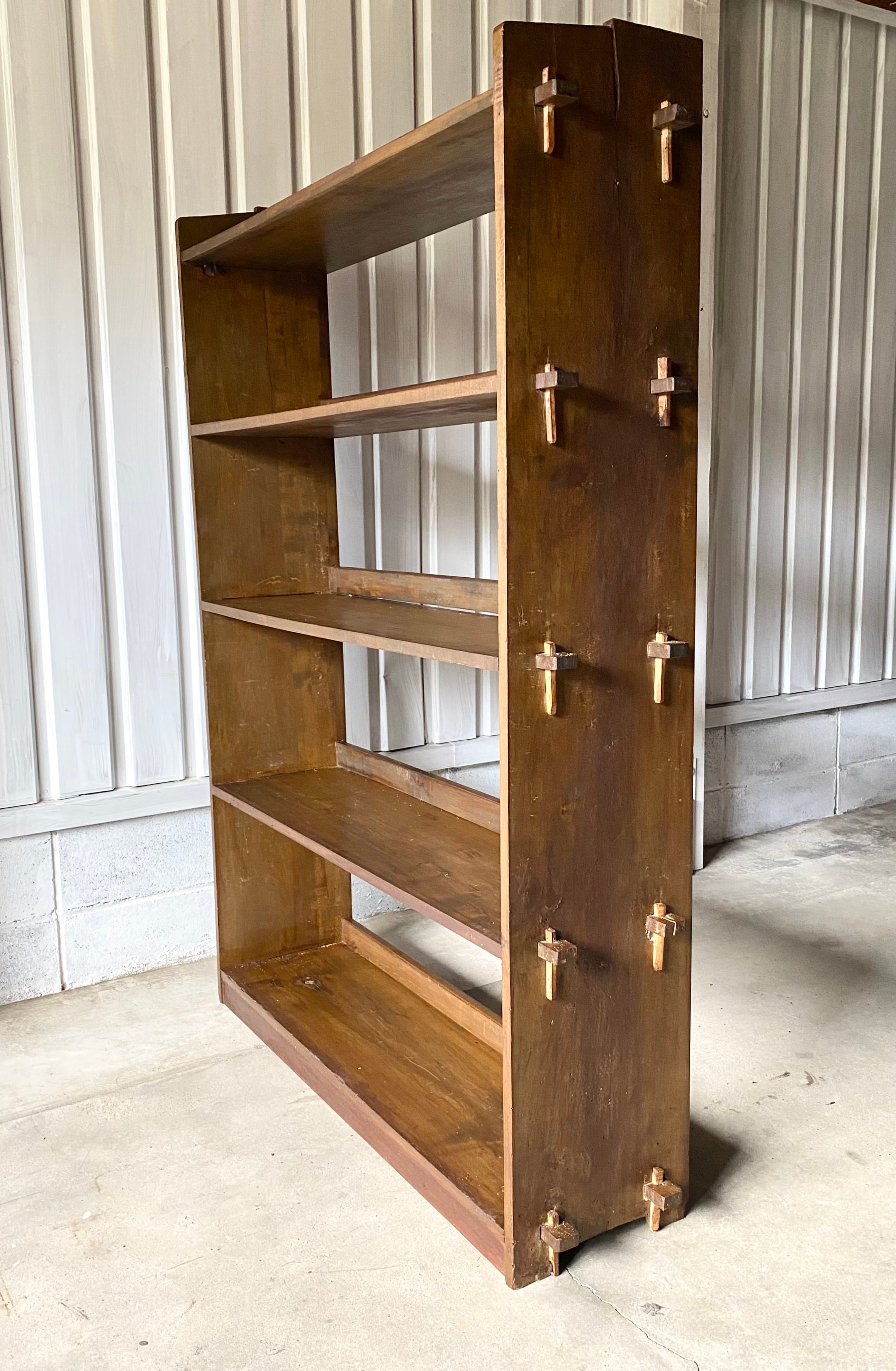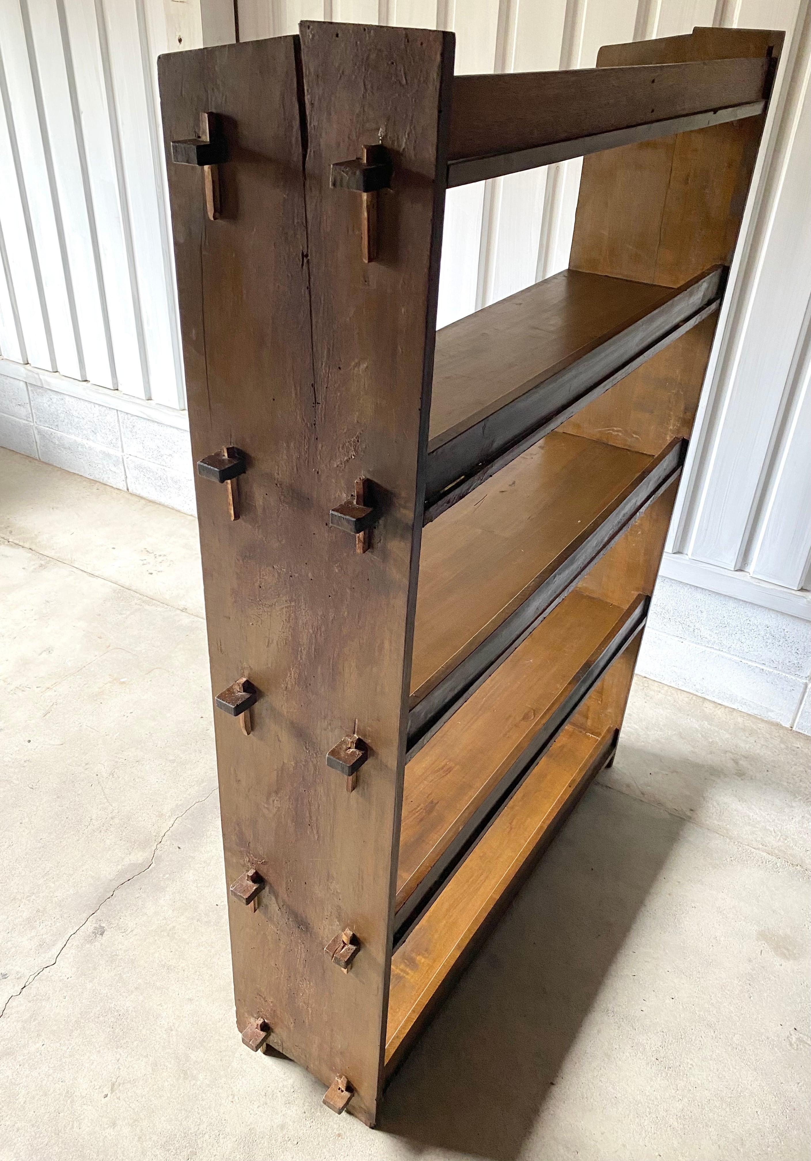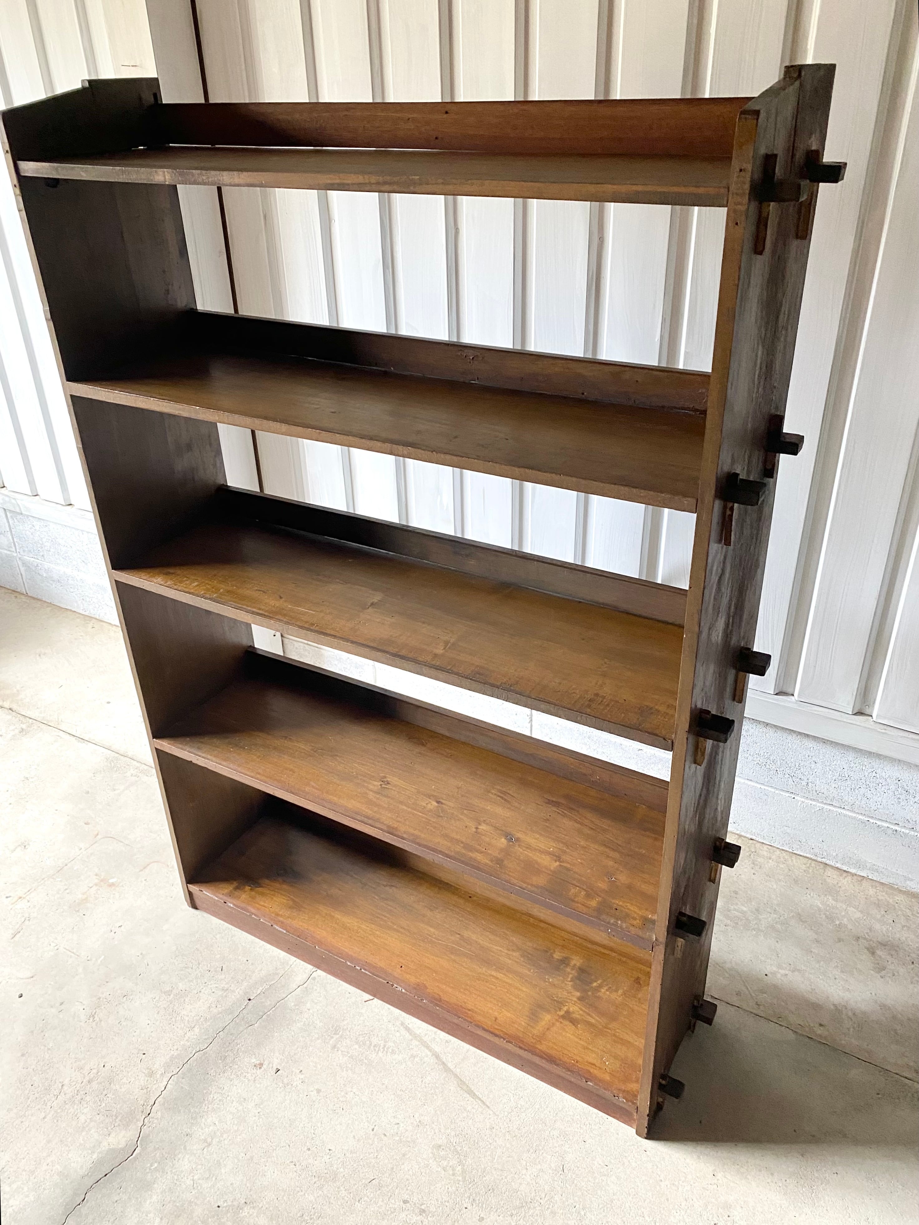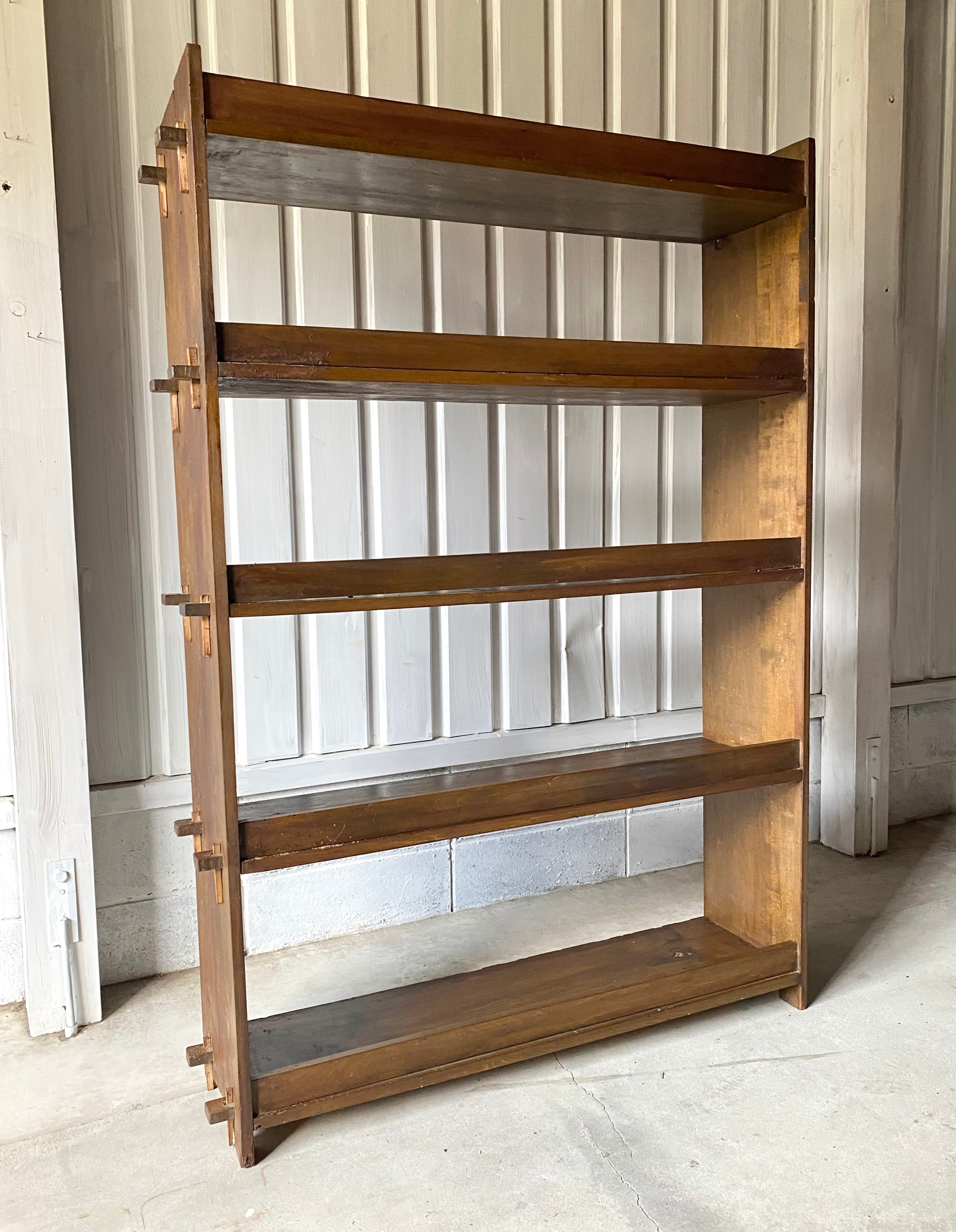 古い楔棚になります。スレや欠け、当たりキズ、禿げ、虫食いによる少しの木屑、隙間、落としきれない汚れなどがあります。少しのぐらつきはありますが、全体的に状態も良いのでまだまだ実用的に活躍してくれます。