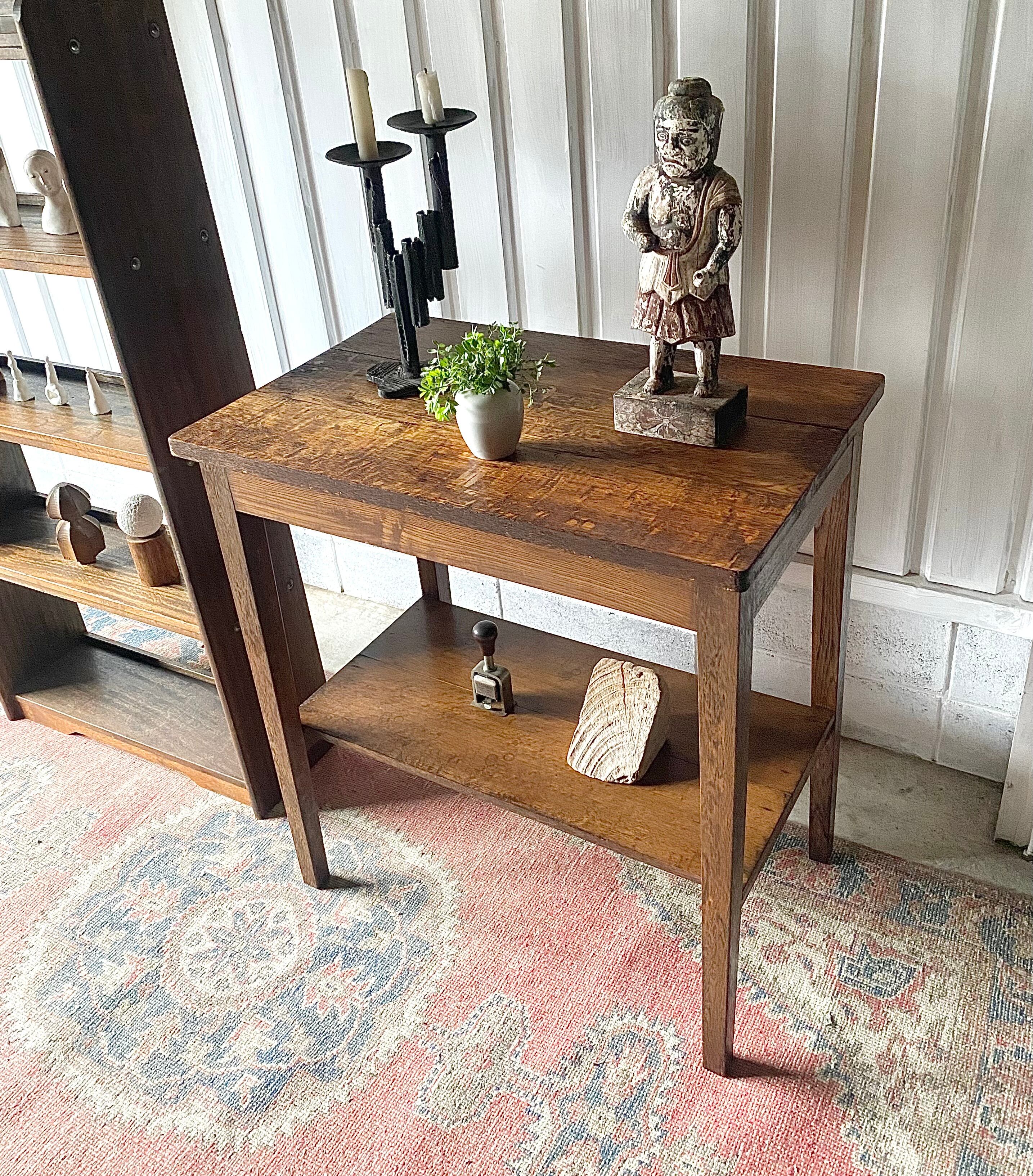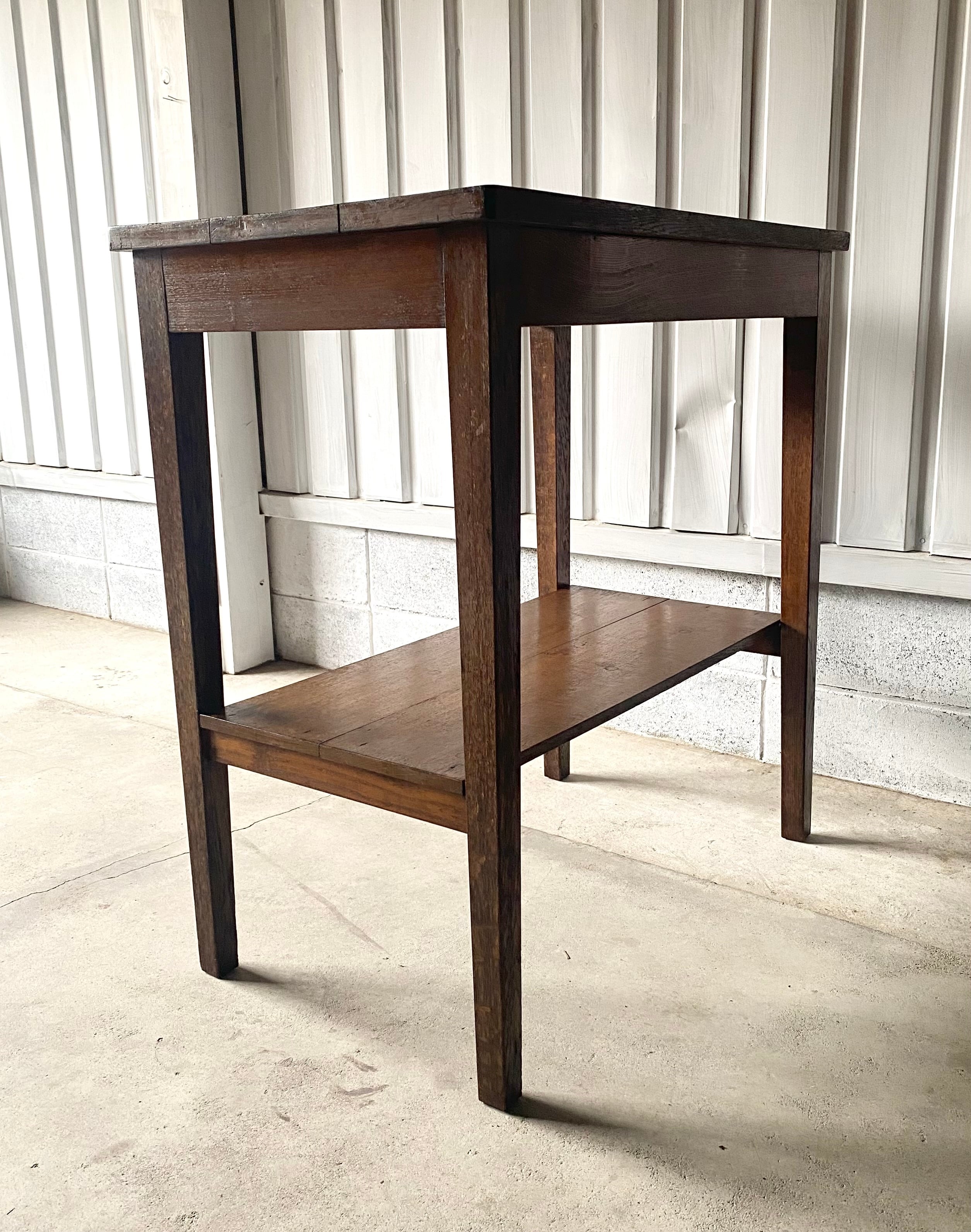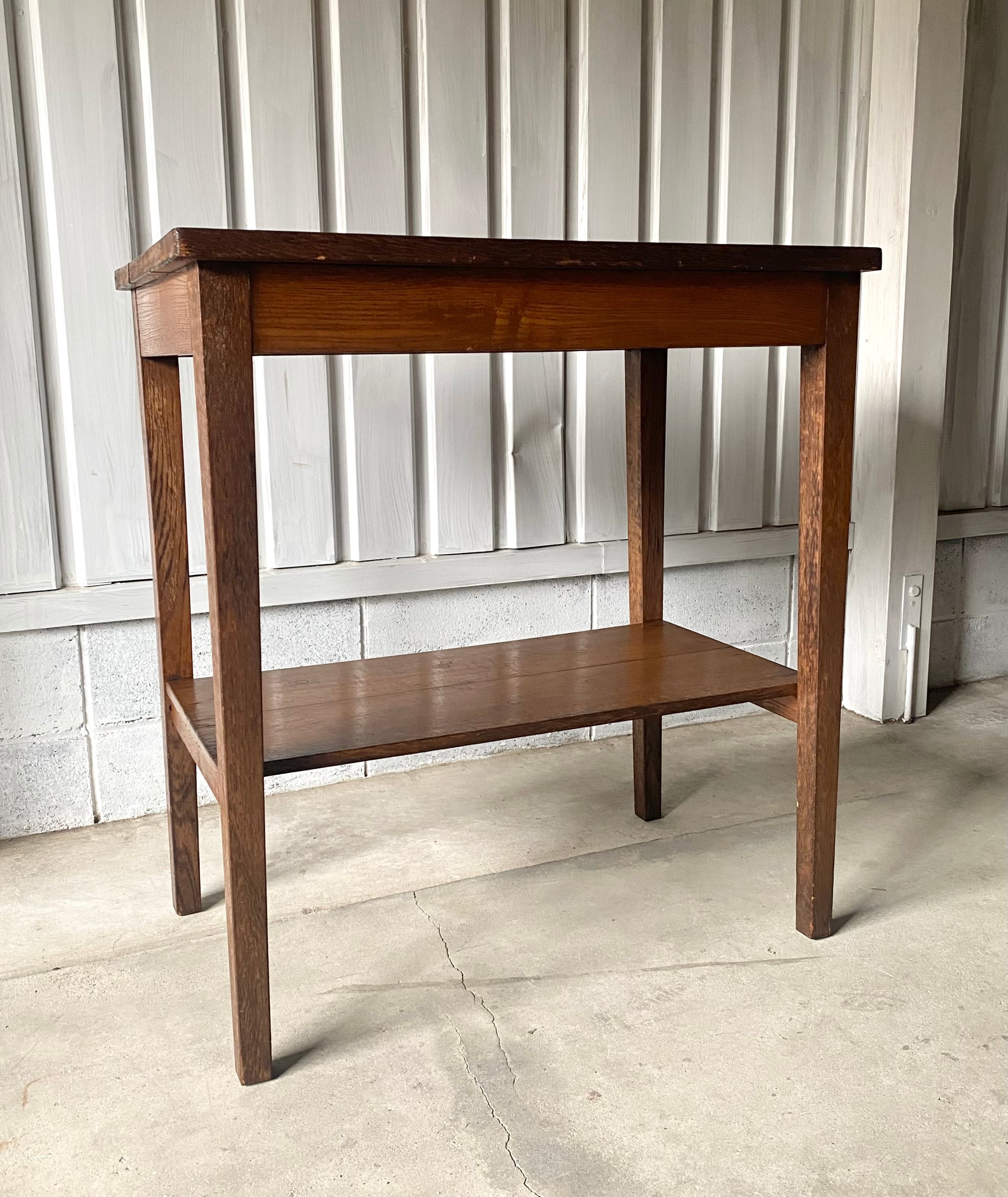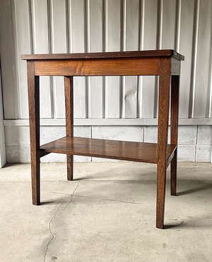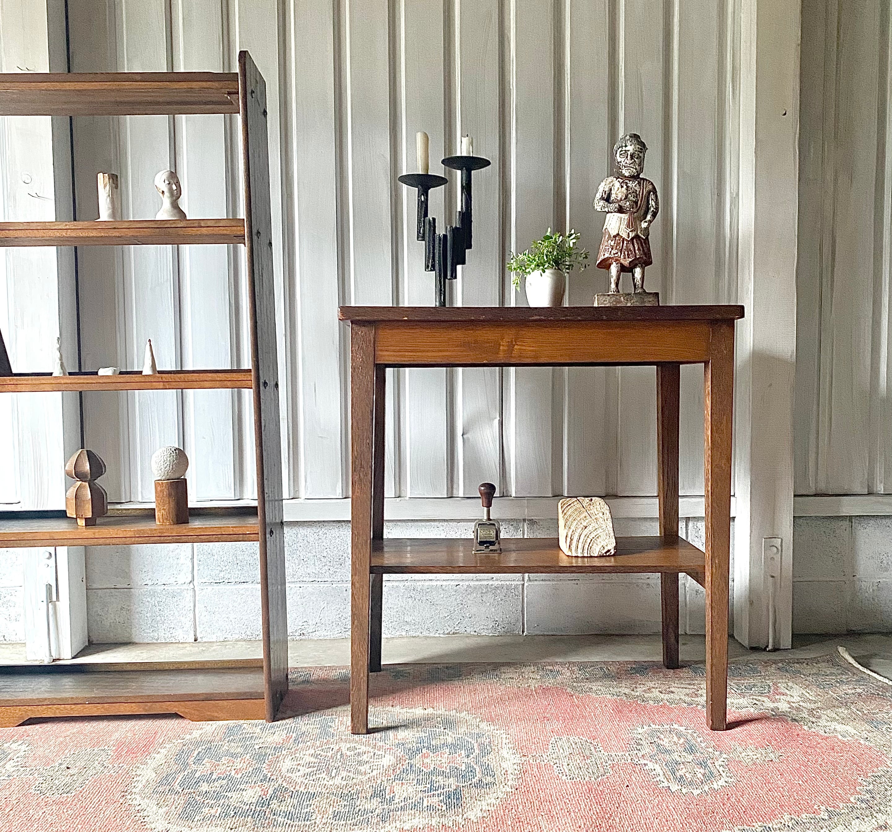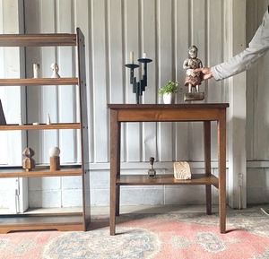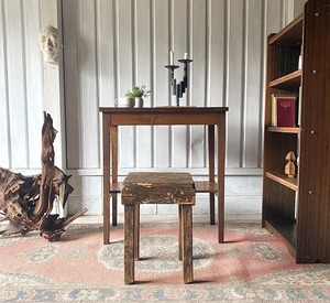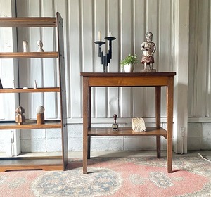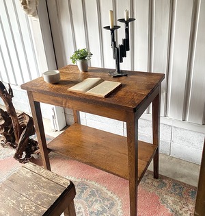 経年変化の雰囲気ある佇まい、すらっとした脚が綺麗なテーブル。天板下にはオープンラックがあり使い勝手も良いです。実用使いでパソコン作業や書物をする作業テーブルとしてや、お気に入りのコレクションや植物を飾る台としても素敵です。