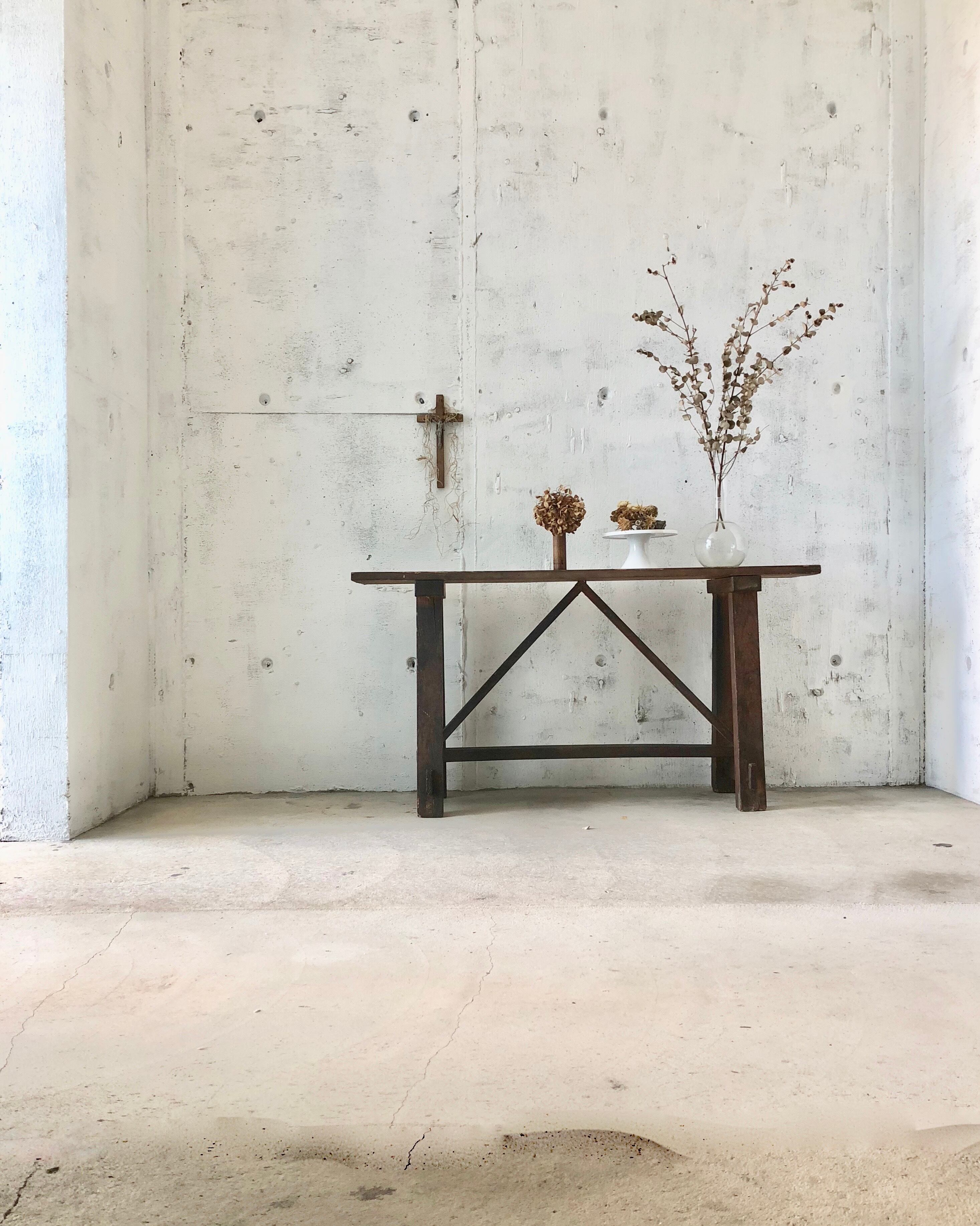 雰囲気の良い古材板が感じ良い木製ベンチ。食卓テーブルの椅子としてや、庭先、玄関先に置いて腰掛け椅子にしてみても素敵です。実用使い以外にも、お気に入りの植物や小物などを飾るディスプレイ台としても活躍してくれそうです。ショップさんの店舗什器としてもオススメの品です。