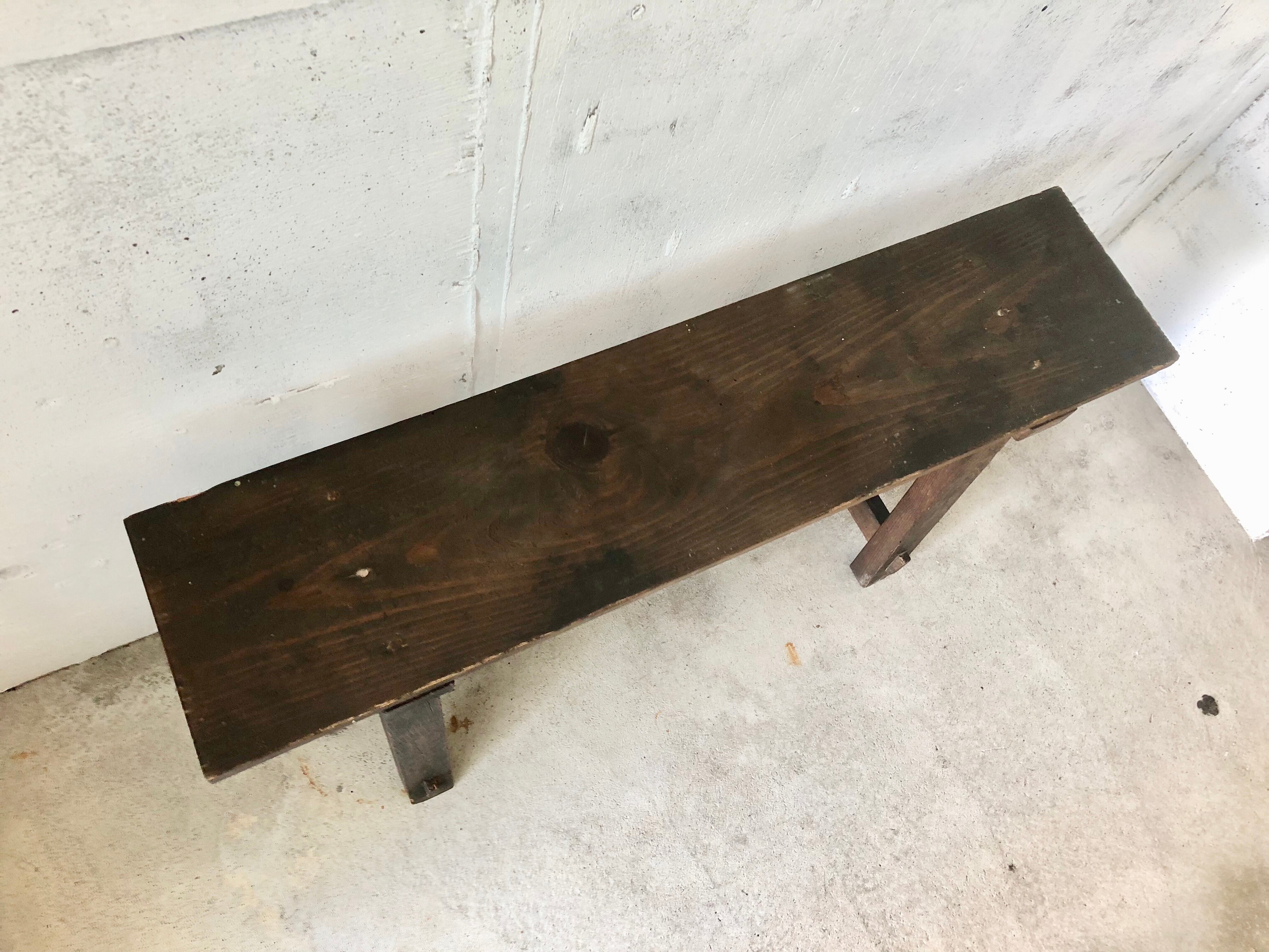 古い木製のベンチになります。スレや剥げ、虫食い、割れ、当たりキズ、落としきれない汚れなどがあります。古いベンチになりますので少しのがたつきはありますが、しっかりとしていて日常気軽にお使いいただけます。全体的に状態も良く、まだまだ実用的に活躍してくれます。