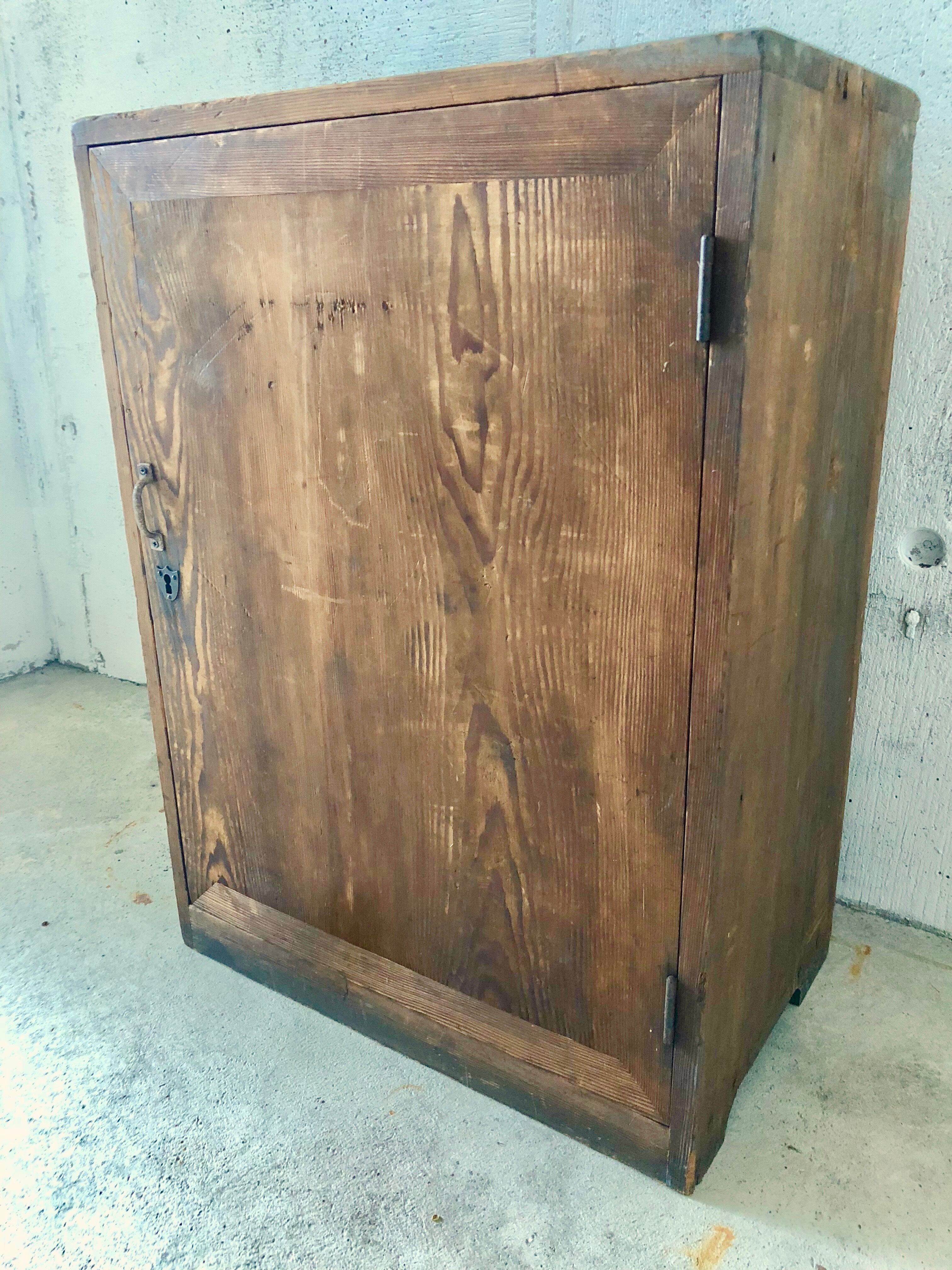 経年変化の使い込まれた木の風合いと味のある取手が魅力的な収納棚。収納力も十分で使い勝手も良いです。天板に持ち手が付いているので持ち運びにも便利。扉の開閉もスムーズに行え、日常気軽にお使いいただけます。キッチンで小皿などの食器のストック棚に使ってみたり、リビングで本や小物の収納としても素敵です。