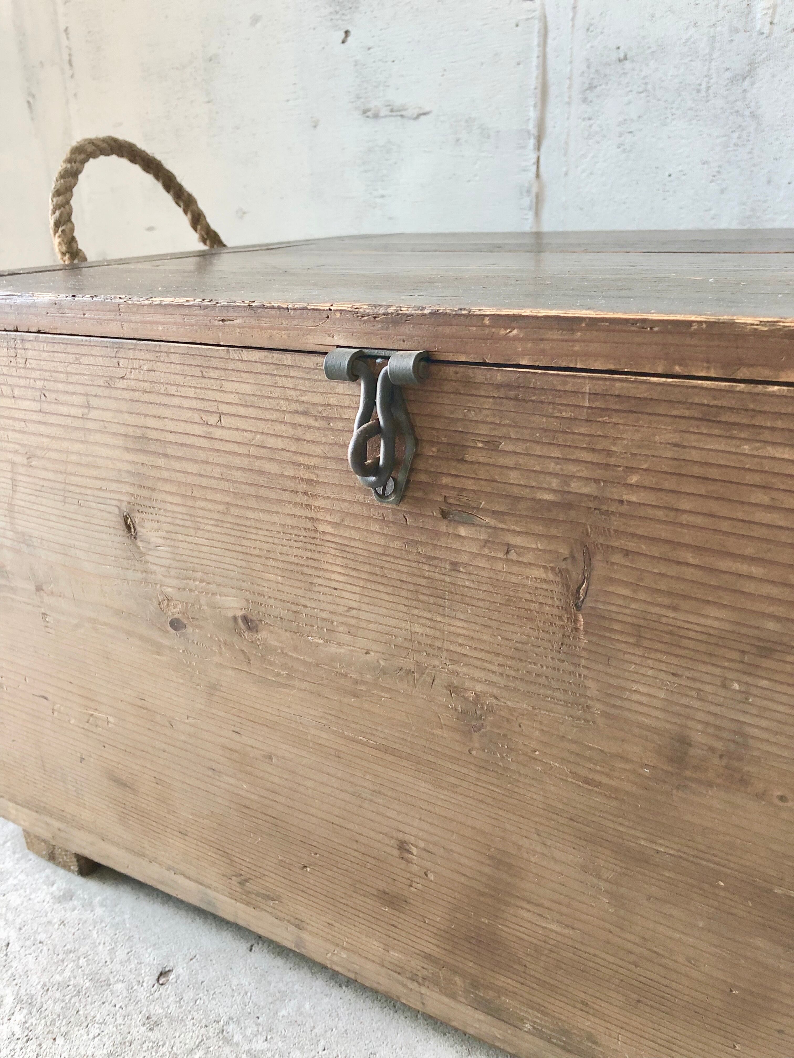経年変化の雰囲気の良い木肌が感じ良い木製の木箱。扉の開閉もスムーズに行え、状態も良いです。両サイドに持ち手が付いているので、持ち運びにも便利。収納力も十分で、子供部屋でおもちゃの収納としてやリビングや衣装部屋で小物、本、洋服の収納としても素敵にお使い頂けそうです。