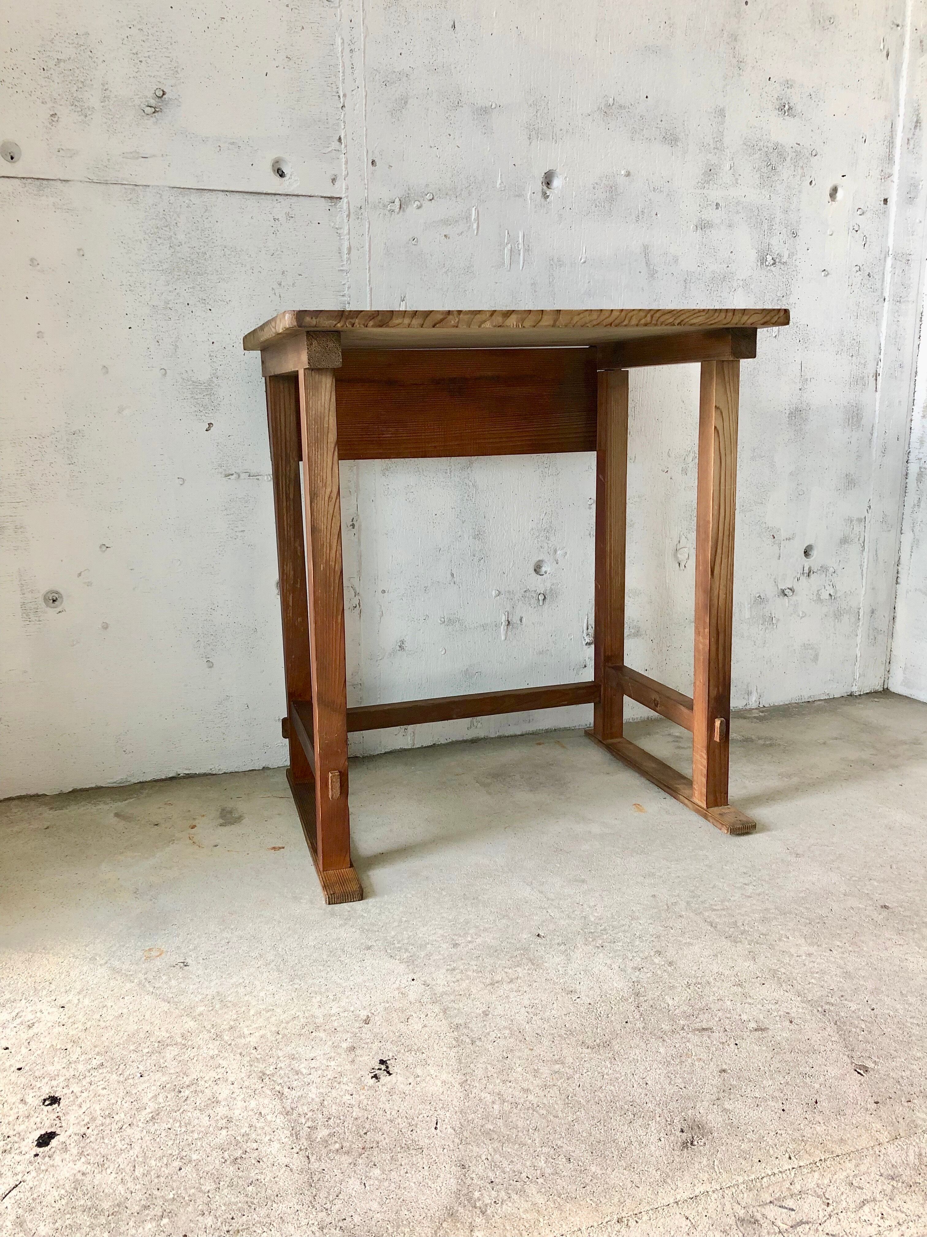 経年変化の使い込まれた良い木肌が感じ良い木製デスク。小振りなサイズ感で場所を取らず、使い勝手が良いです。パソコン作業、物作りなどをする作業テーブルとしてや、お子さんの勉強机としても素敵にお使いいただけそうです。