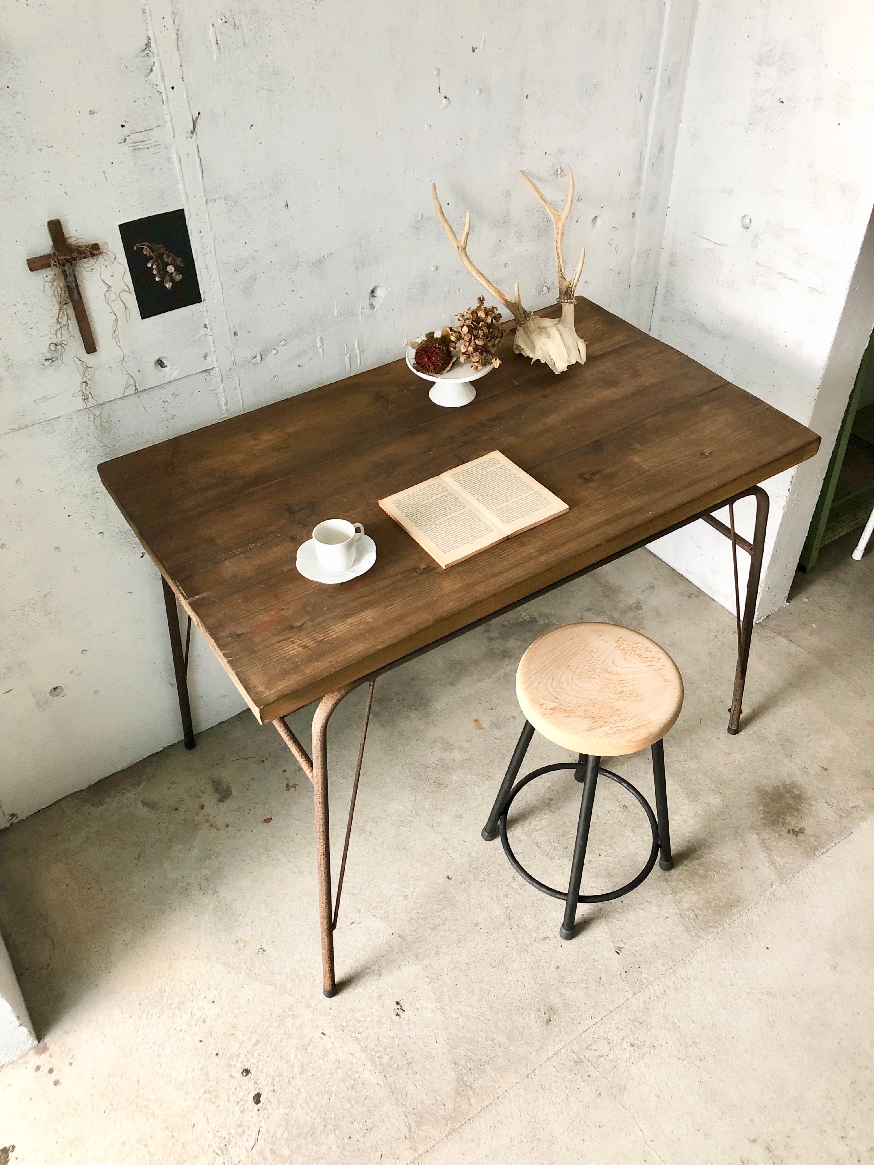 雰囲気の良い古材板と古い鉄脚が良く馴染んだ鉄脚テーブル。天板下のオープンラックも雑誌などが置けるので便利です。2人掛けの向かい合わせテーブルや食卓以外の時間でも、日常の作業をするのに程よいサイズ感がオススメです。味のあるテーブルひとつプラスするだけで雰囲気あるお部屋作りが叶いそうです。