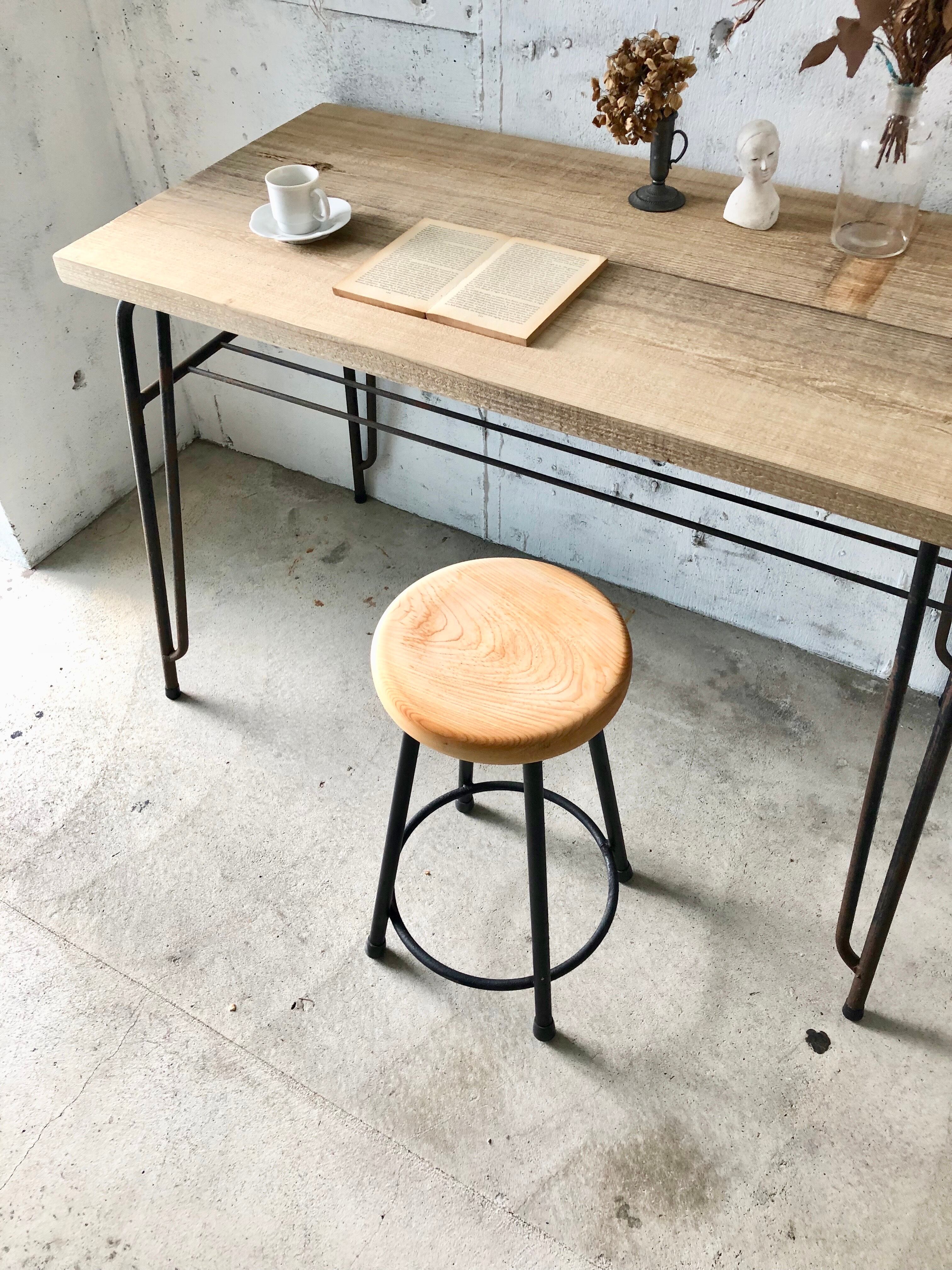 雰囲気の良い古材とアイアン脚が感じ良いスツール。シンプルなデザインでお部屋にもすっと馴染んでくれそうです。少しのがたつきはありますが、状態は良いです。実用使いでテーブルの椅子、キッチンや玄関先の腰掛け椅子としてや、植物を飾るディスプレイ台としても感じ良さそうです。