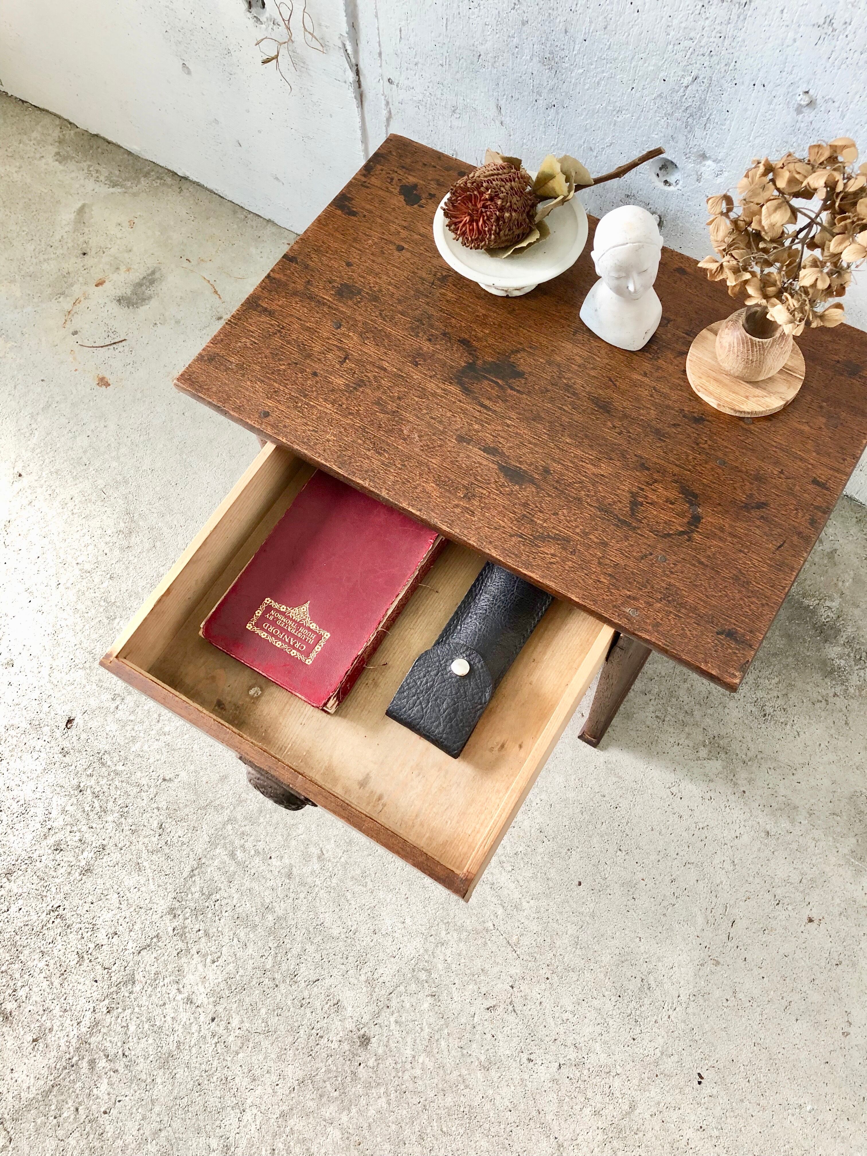 経年変化の良い木肌、小振りなサイズ感が可愛らしいローテーブル。特に目立つがたつきはなく、状態は良好です。お気に入りの小物や植物などをお部屋で飾る台としてや、実用使いで作業テーブルとしてや、お子さんの勉強机としても素敵です。