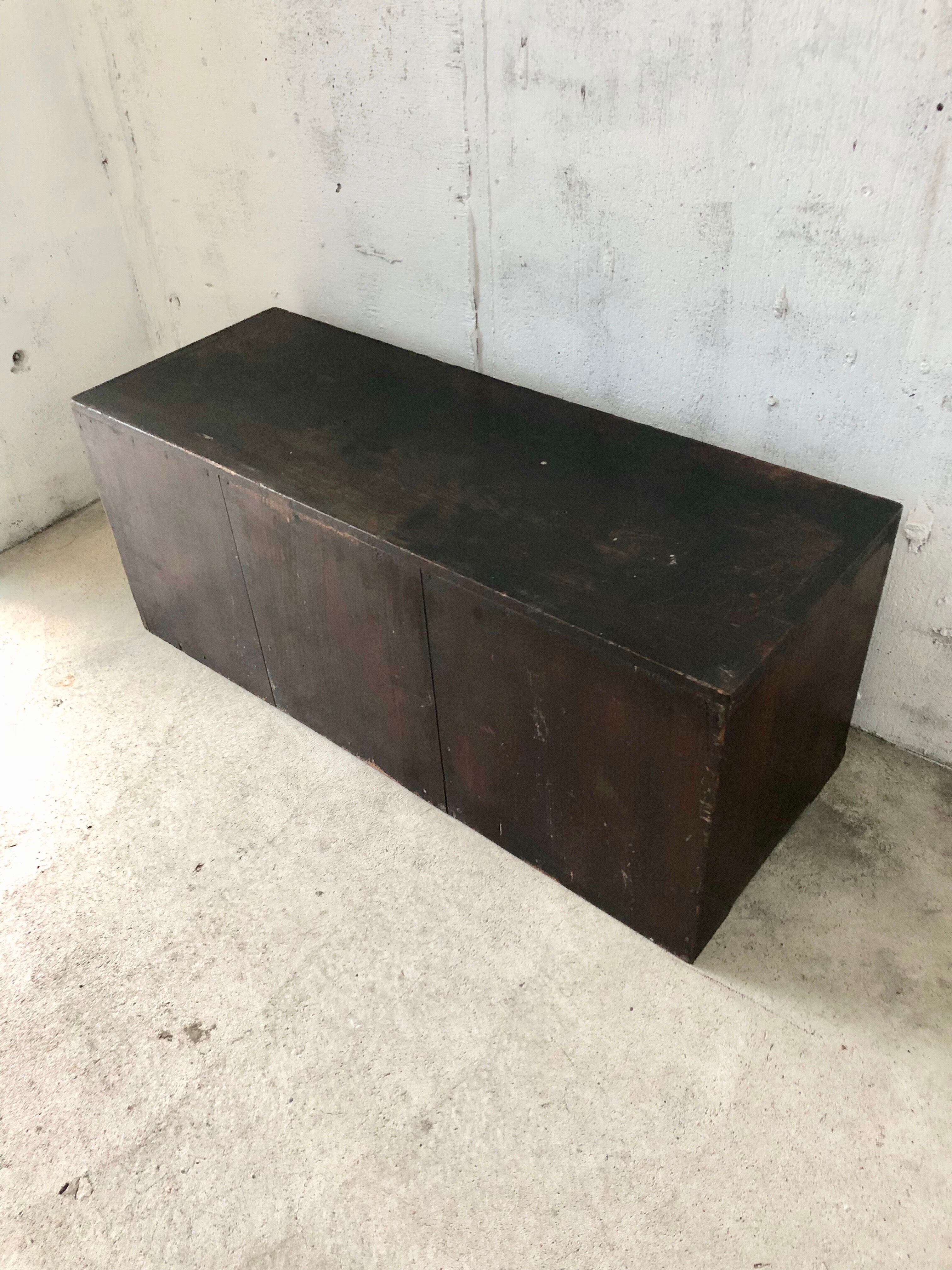 経年変化の落ち着きのある木肌、雰囲気の良い真鍮取手とガラス戸が感じ良いローボード。ガラス戸、引出し収納もあり収納力も十分です。経年による傷などもありますが、ガラス戸、引出しの開閉は比較的スムーズに行え、使用上問題なくお使いいただけます。リビングでテレビ台としてや趣味部屋、キッチンで小物、本、食器などの収納棚として、毎日の暮らしの中で手元に置いてお役立てください。