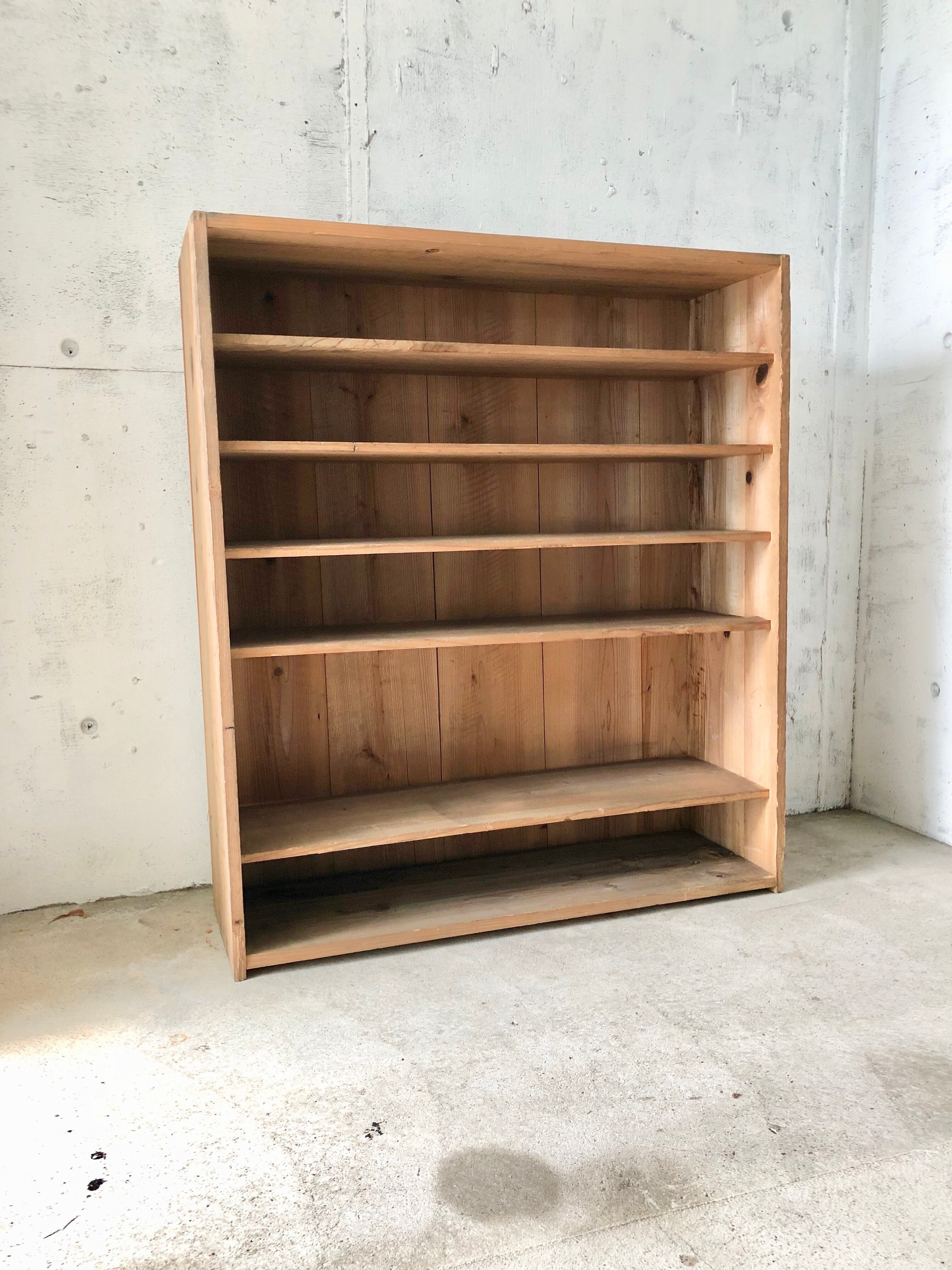 古い木製のシェルフになります.。スレやハゲ、割れ、欠け、隙間、反り、当たりキズ、落としきれない汚れなどがあります。少しのがたつきはありますが、全体的に状態も良いのでまだまだ実用的に活躍してくれます。