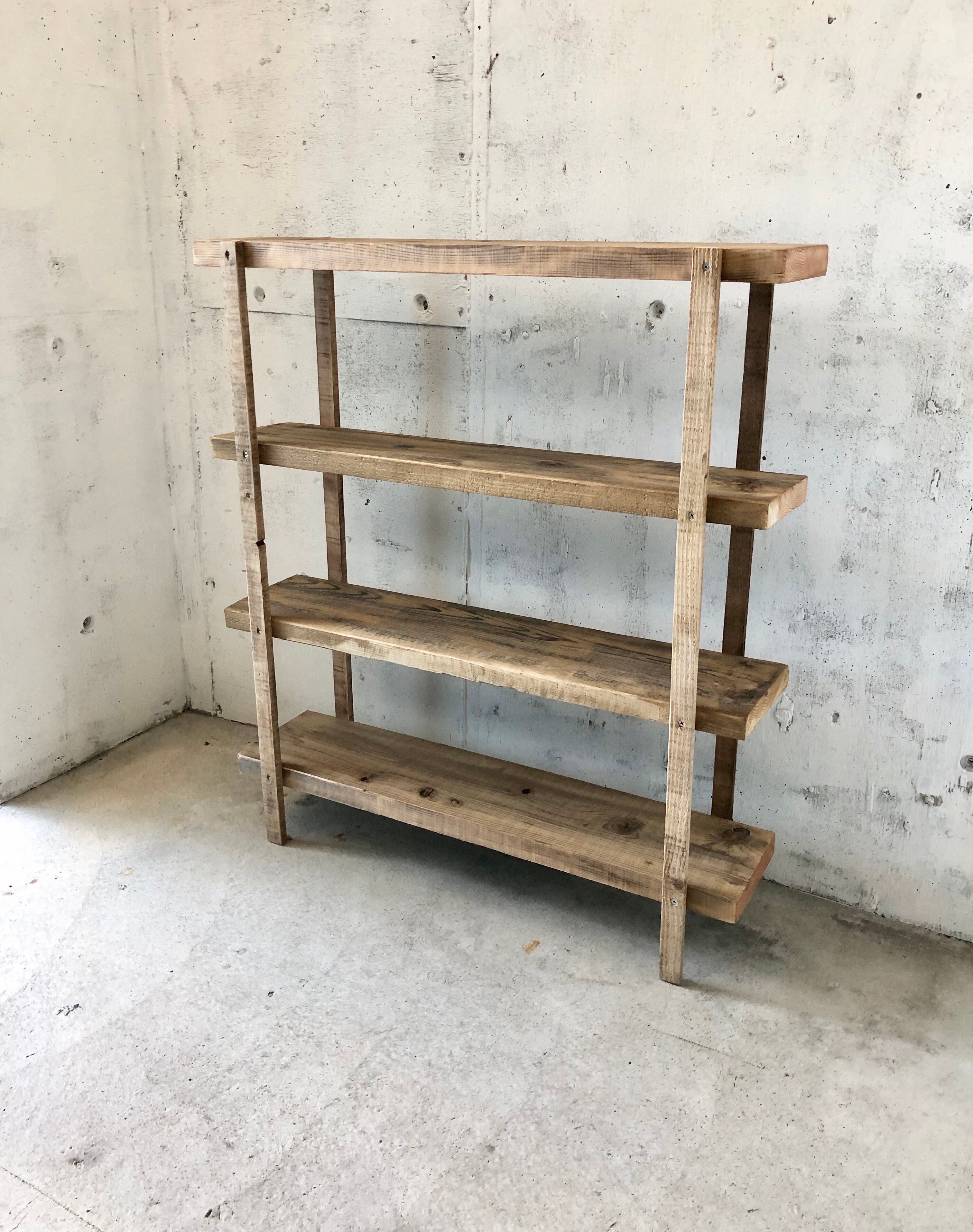 スッキリとしたデザイン、使い込まれた味のある木肌が感じ良いシェルフ。奥行も深すぎず、使い勝手も良いです。本や小物、植物のディスプレイ棚としてや、キッチンで食材やお皿のストック棚、ショップさんのディスプレイ棚としてもオススメです。