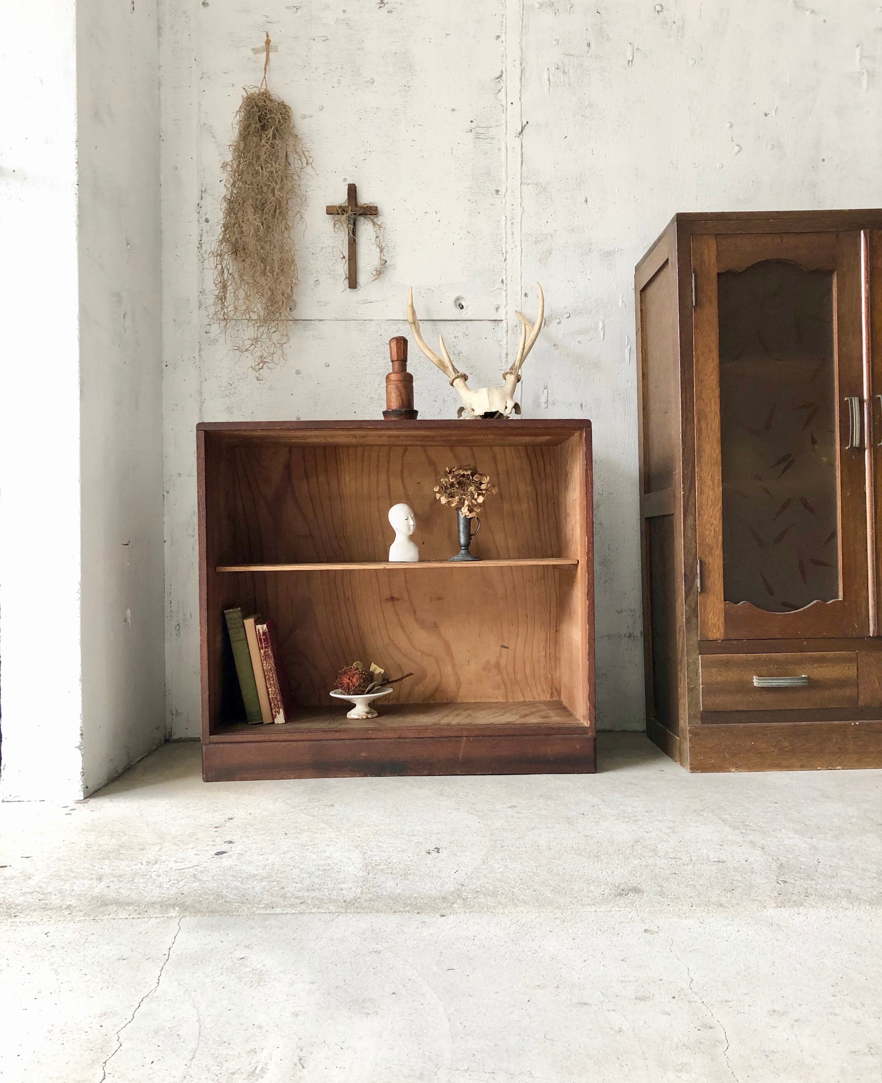 経年変化の使い込まれた木の風合い、すっきりとした姿が感じ良い収納棚。小振りなサイズ感が可愛らしく、使い勝手も良いです。キッチンで食器、小皿や調味料などのストック棚としてや、リビングで本や小物などの整理に使ってみても素敵です。お部屋に合った使い方でいろいろとお楽しみください。
