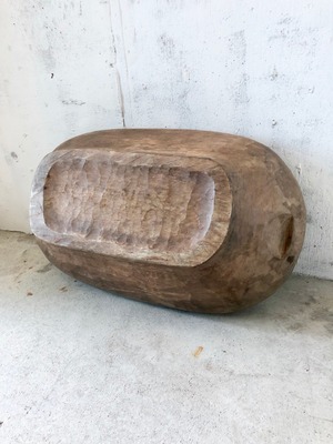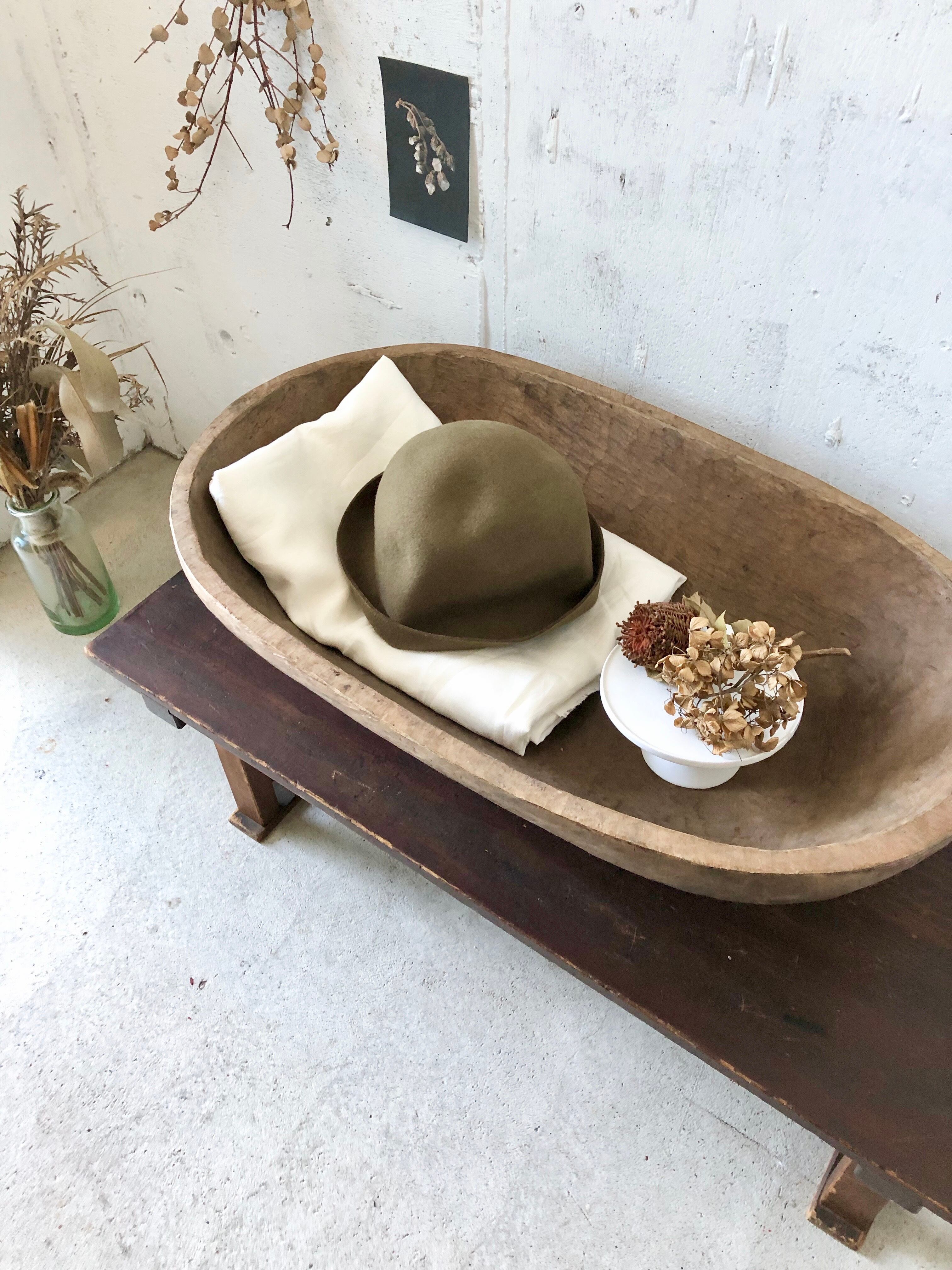 経年変化の良い雰囲気、使い込まれた味のある捏鉢。大きめサイズで横幅もあり収納力も十分で、どっしりとしています。お気に入りの良く着る服、帽子などを飾りながら収納したり、キッチンでフルーツやお野菜入れとして、玄関先やリビングなどでドライフラワーをこんもり入れて飾ってみても素敵な空間演出が叶いそうです。
