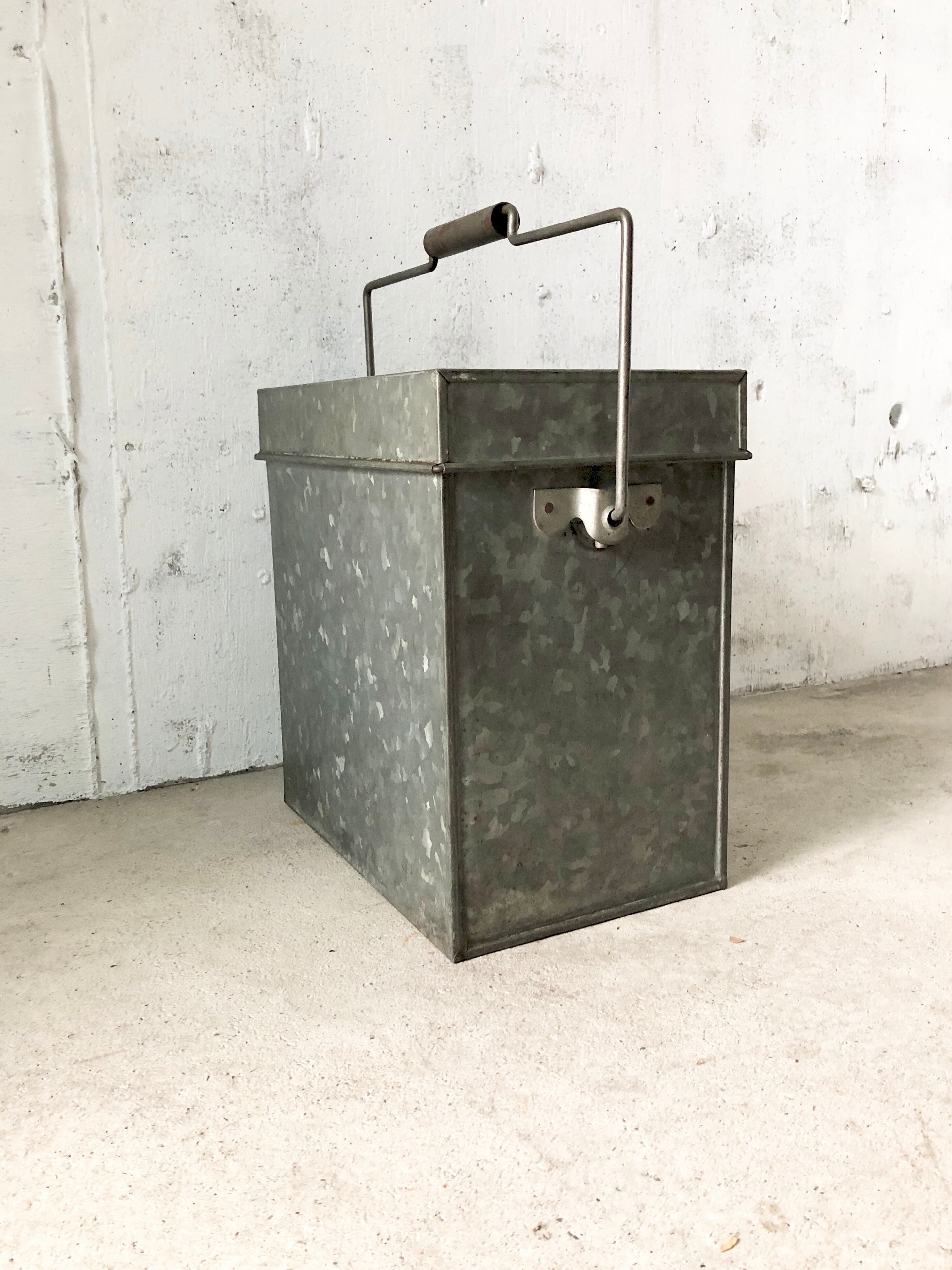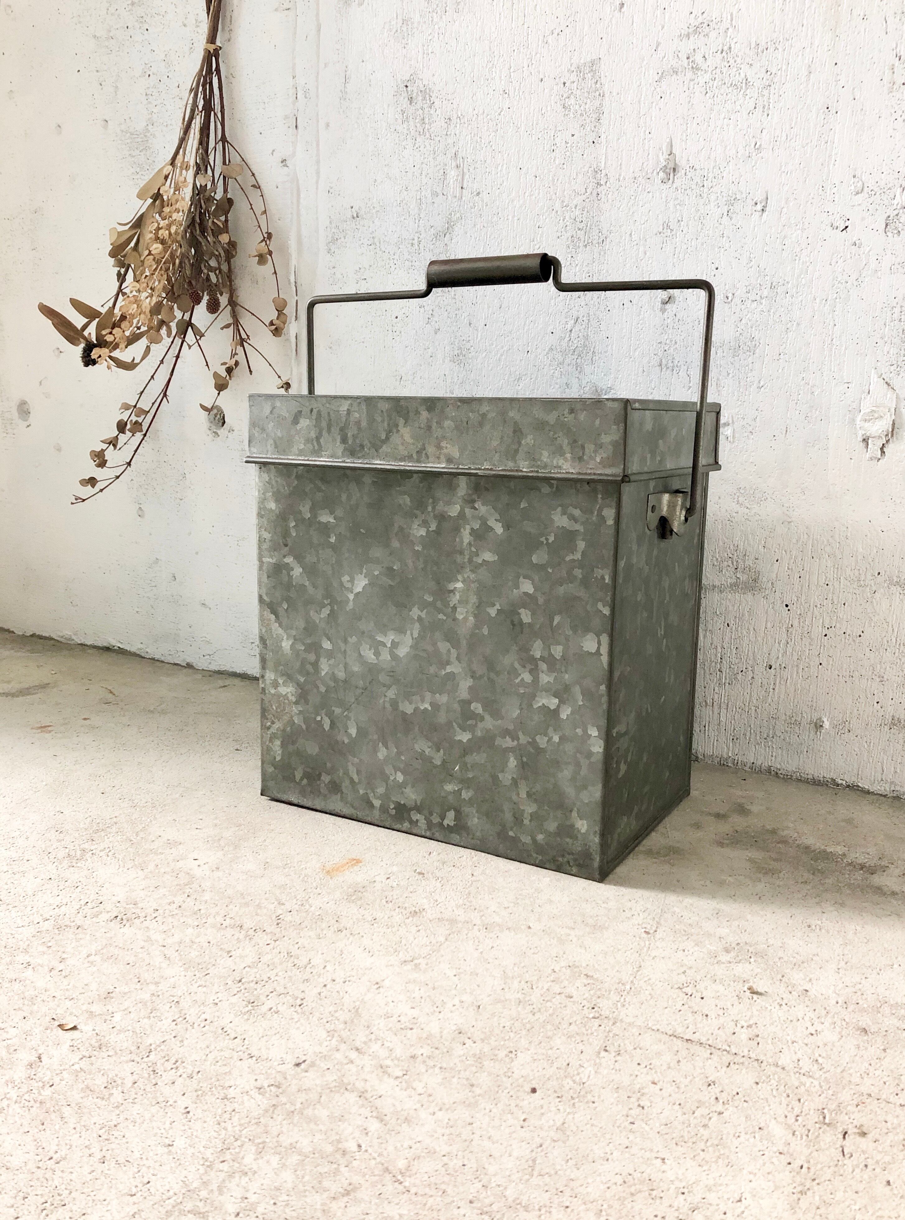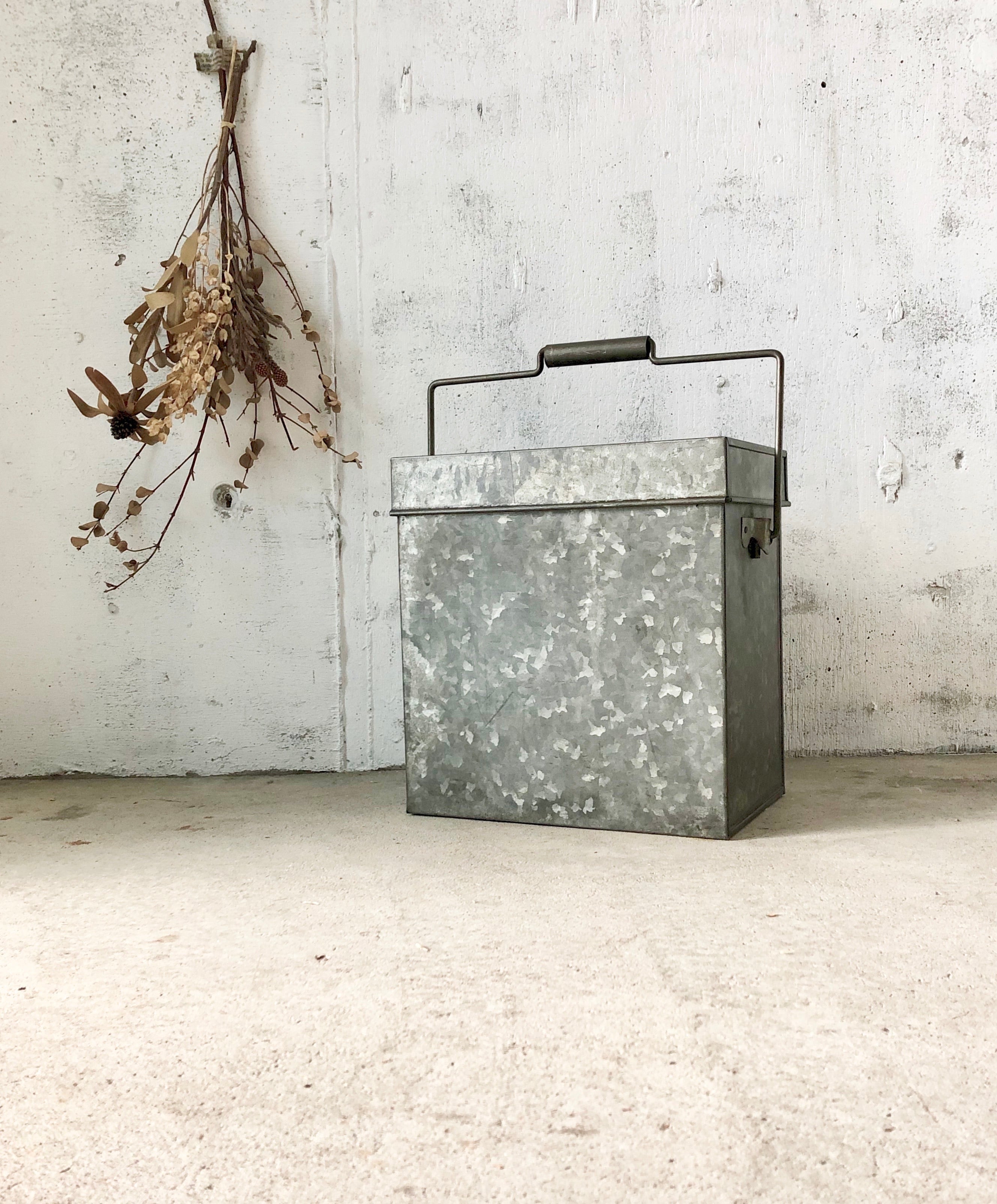 経年変化の程良いサビ感、マットな質感が感じ良いブリキ缶。シンプルなデザインでインテリアに取り入れやすく、持ち手が付いているので持ち運びにも便利。リビングや作業部屋で小物の収納としてやガーデニングで鉢カバーとしても素敵にお使い頂けそうです。