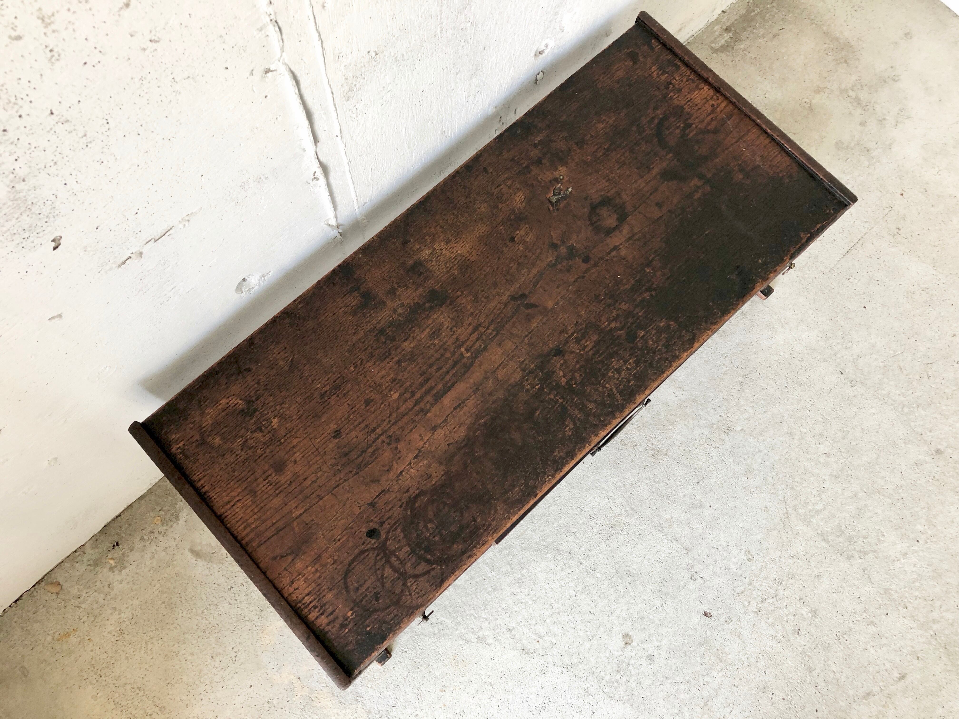 古いローテーブルになります。スレやハゲ、欠け、反り、サビ、当たりキズ、落としきれない汚れなどがあります。引出し中は少し汚れがありますが、開閉は比較的スムーズに行えます。全体的に状態も良いのでまだまだ実用的に活躍してくれます。