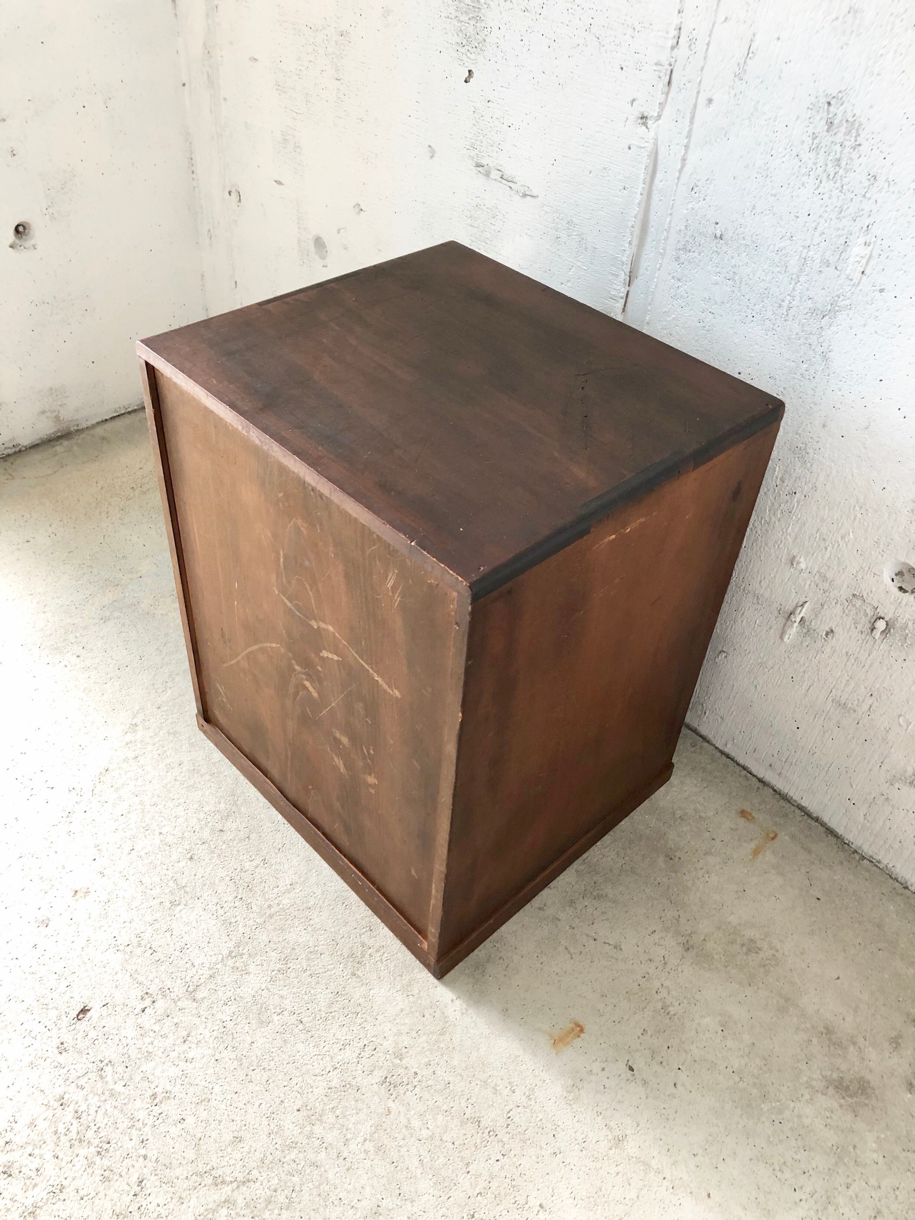 経年変化の味のある木肌、小振りなサイズ感が可愛らしい収納棚。品のある佇まいも魅力的です。リビングや趣味部屋、作業部屋で小物、アクセサリー、パーツ、細々した物などの収納棚としても素敵にお使い頂けそうです。