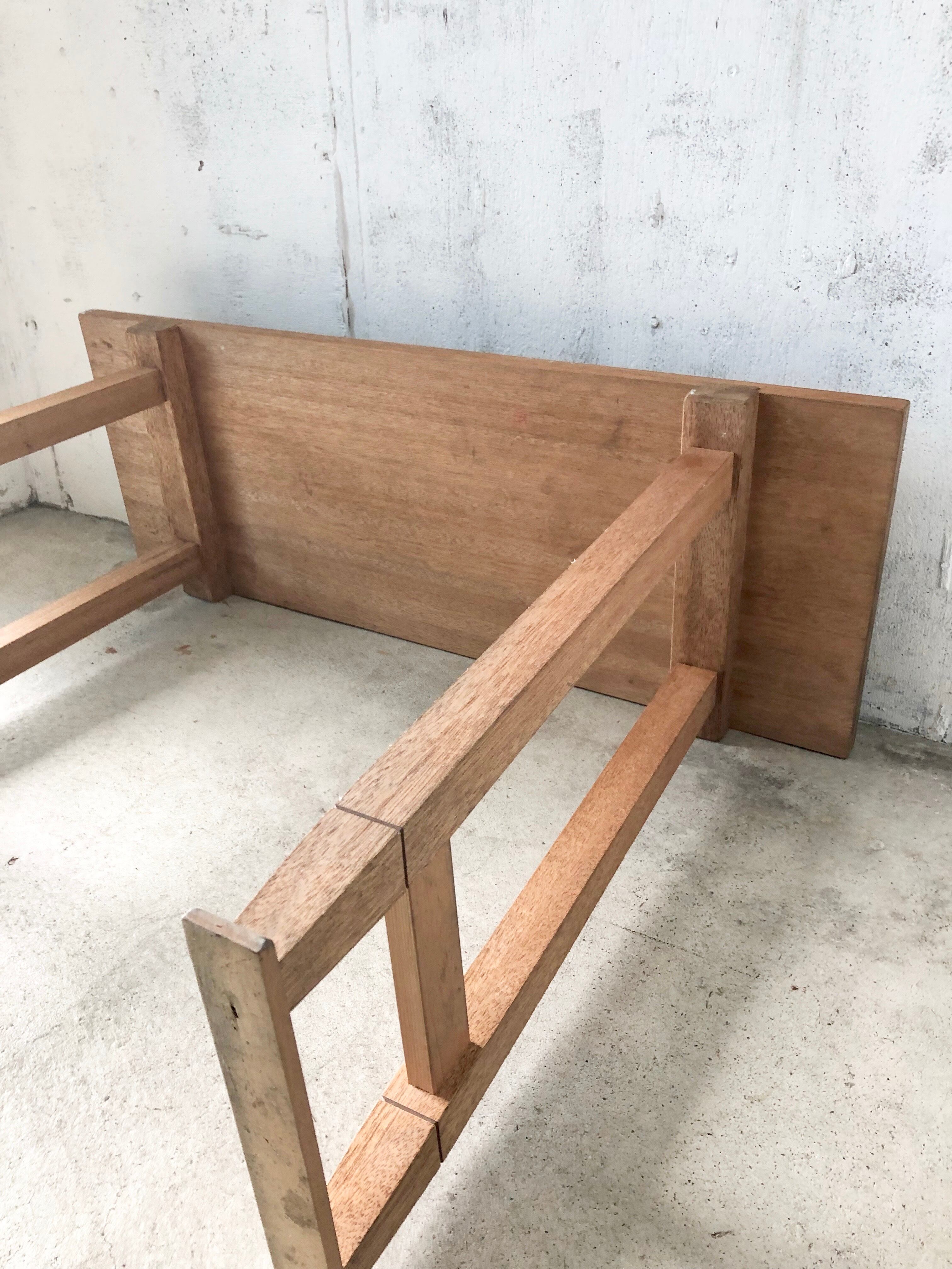 経年変化の雰囲気良い木肌、すらっとした脚が感じ良い木製デスク。奥行は深すぎず、すっきりと置けて使い勝手も良いです。実用使いで作業テーブル、パソコンテーブルとしてやお子さんの勉強机としてや、店舗什器として商品のディスプレイ台としてもオススメの品です。