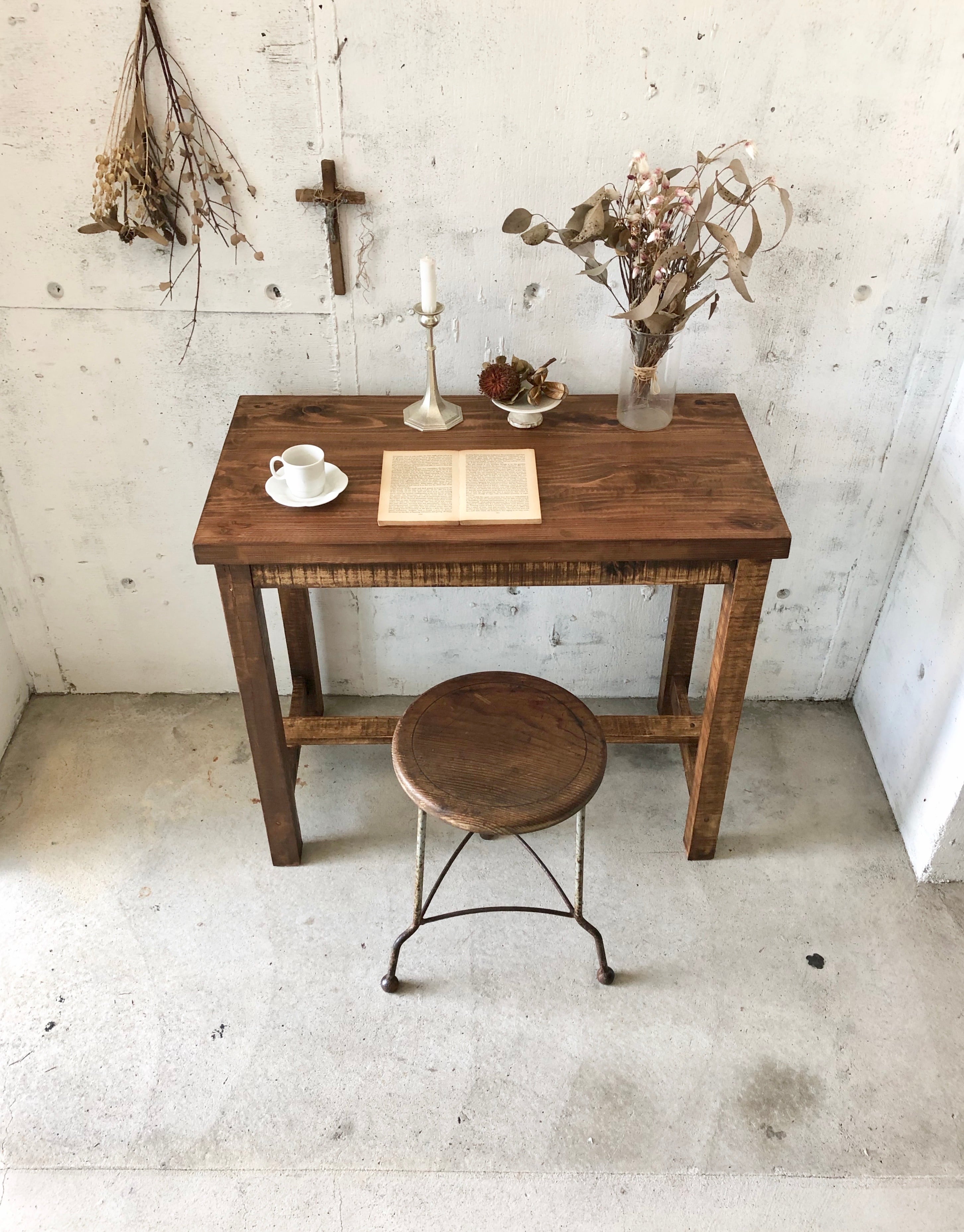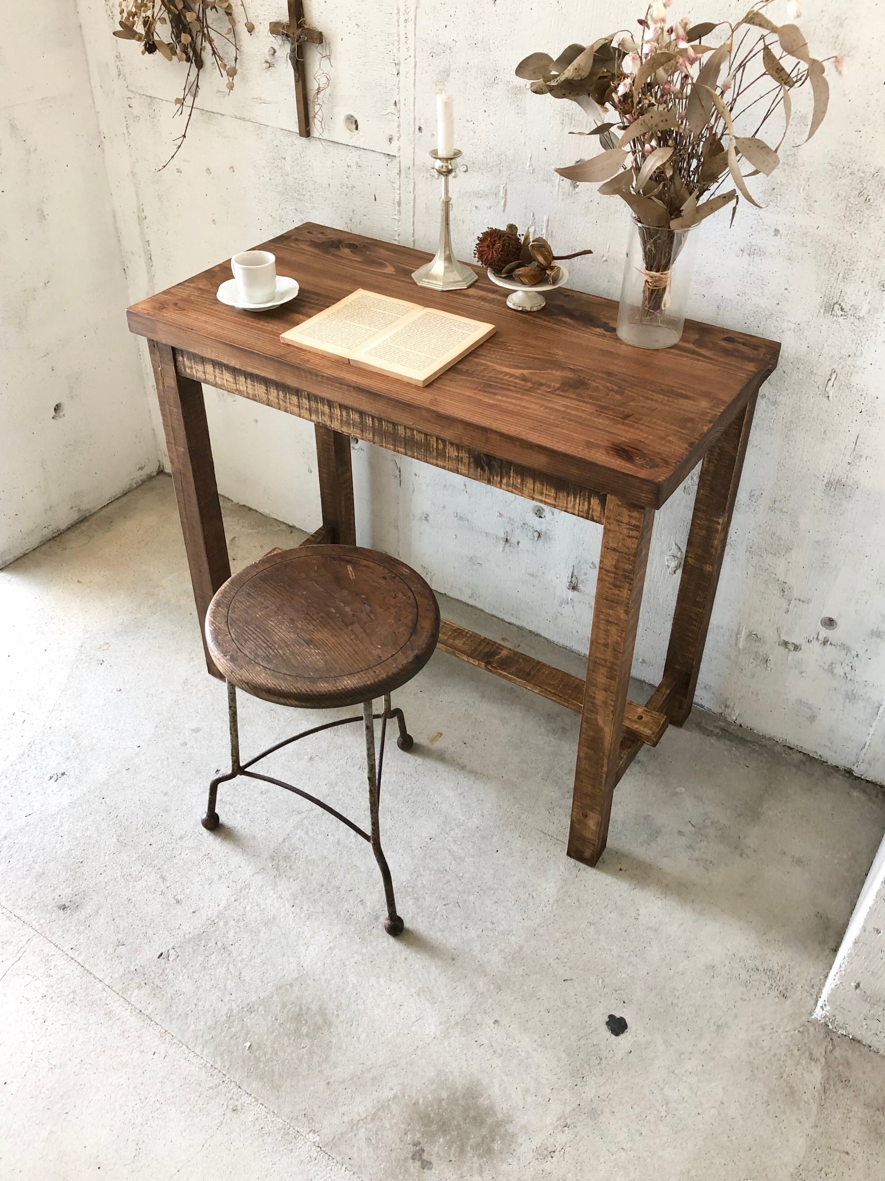 経年変化の雰囲気のある古材が感じ良い木製デスク。少しがたつきはありますが、厚みのある天板でしっかりとしています。実用使いで作業テーブル、パソコンテーブルとしてやお子さんの勉強机として、店舗什器として商品のディスプレイ台やカフェ席のテーブルとしてもオススメの品です。