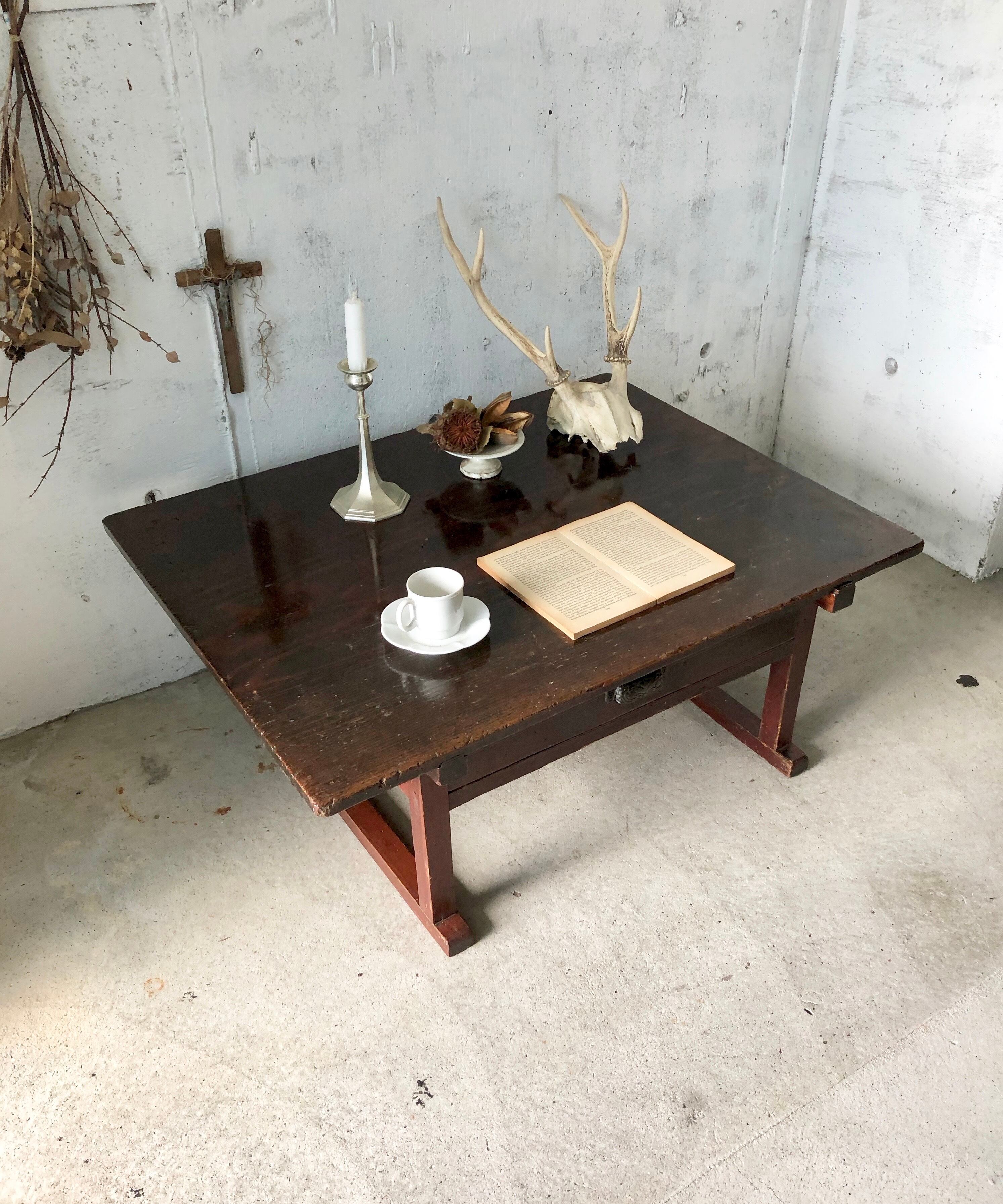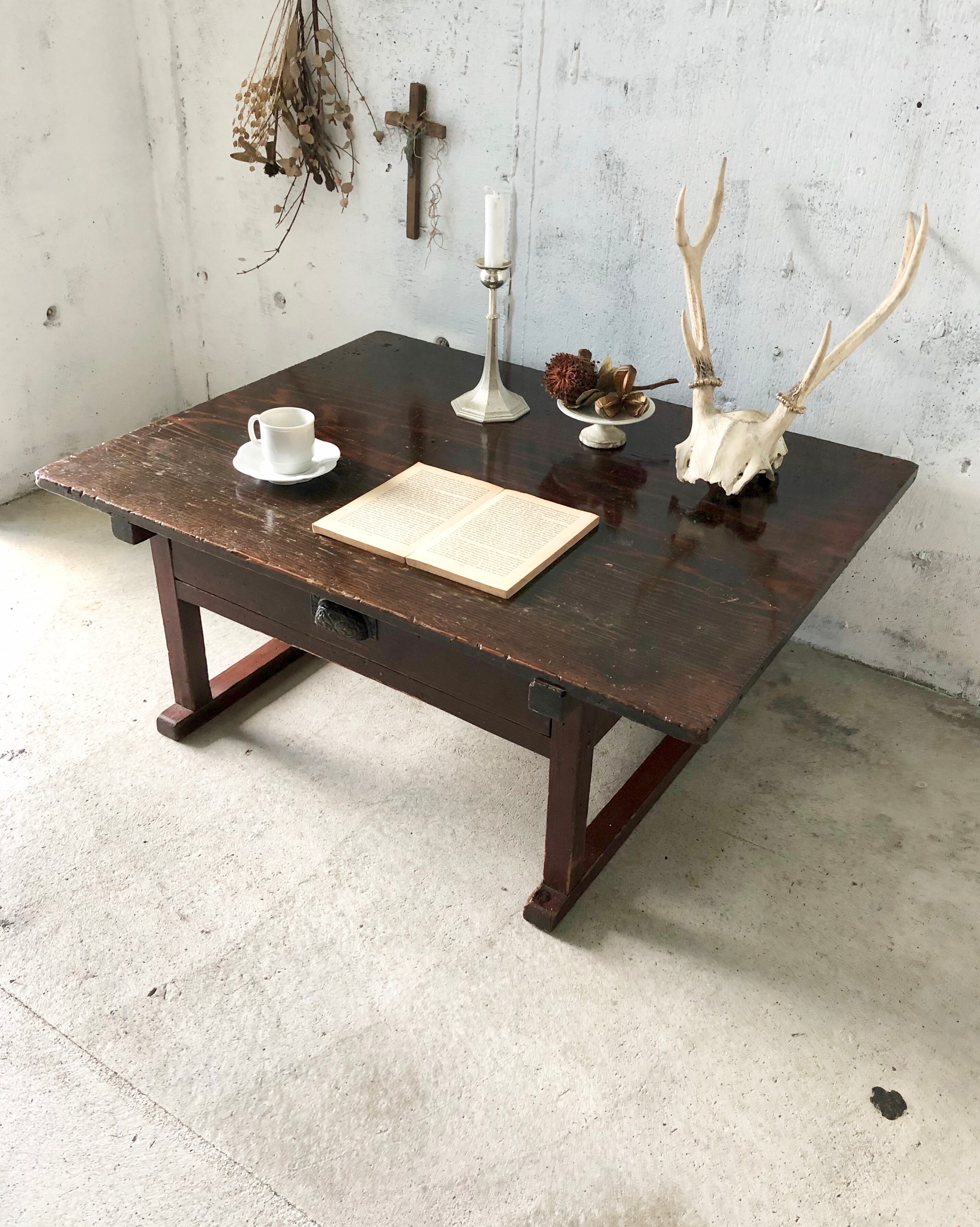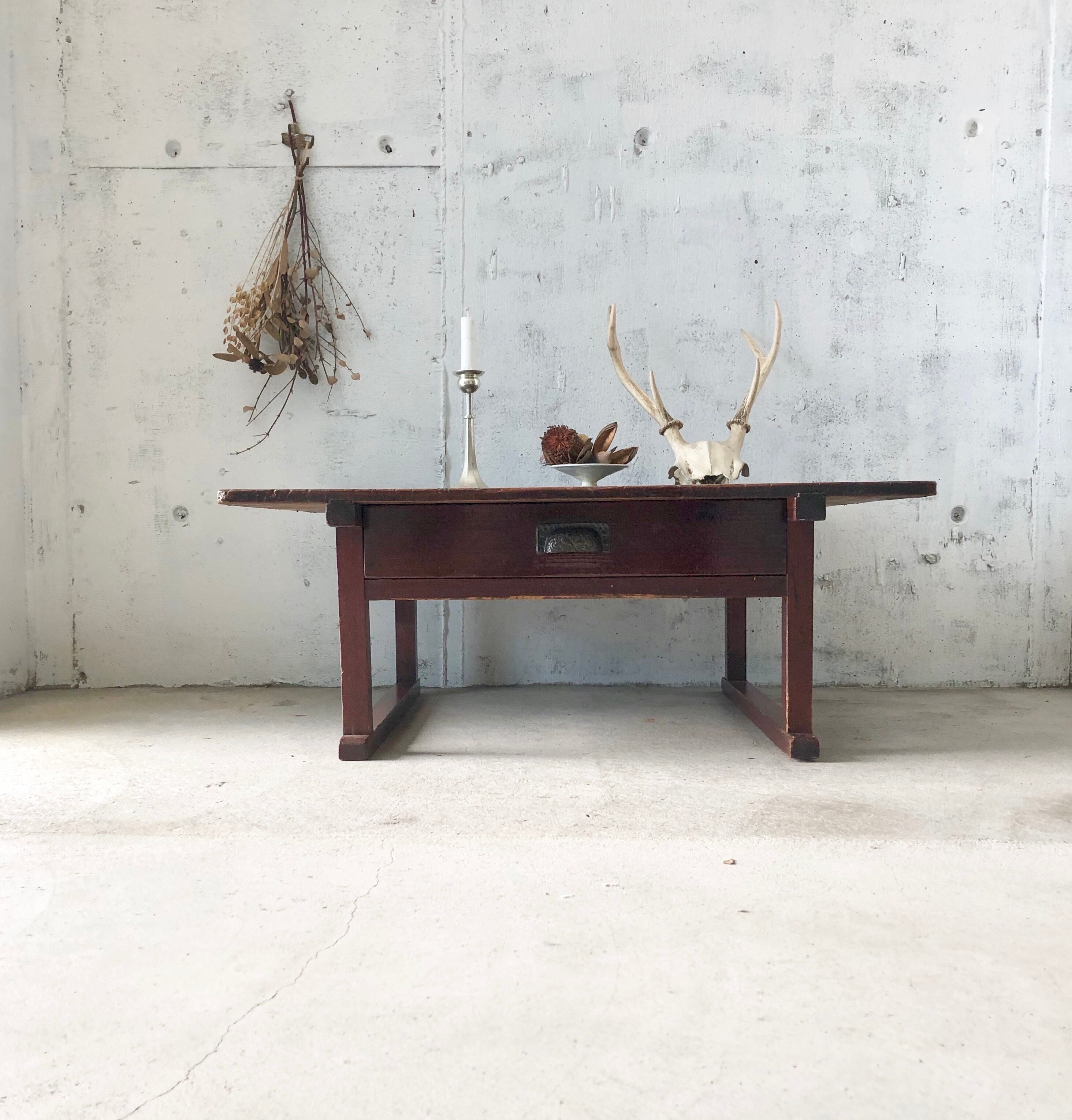 経年変化の落ち着きのある良い木肌、味のある取手が感じ良いローテーブル。シンプルなデザインでお部屋にすっと溶け込んでくれます。ソファテーブルとしてや作業テーブル、お子さん用のテーブルとしても素敵にお使い頂けそうです。