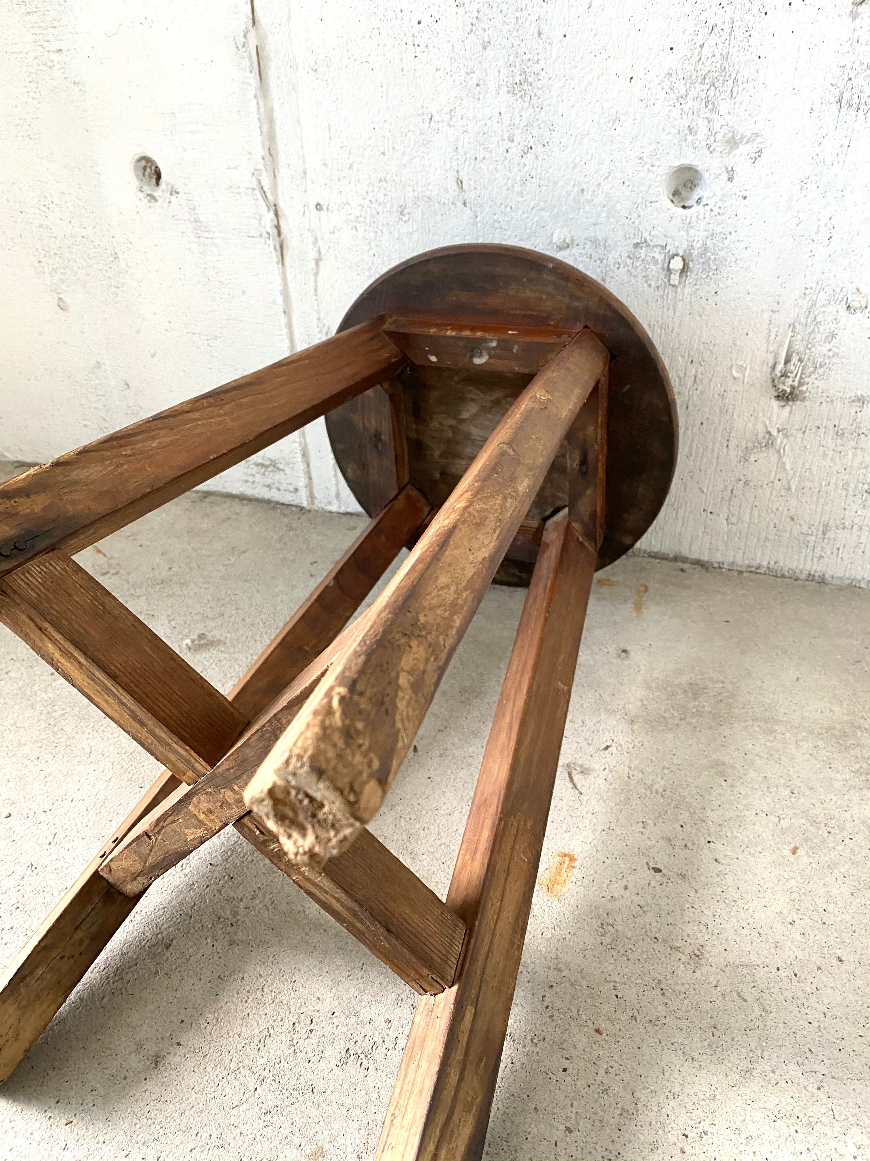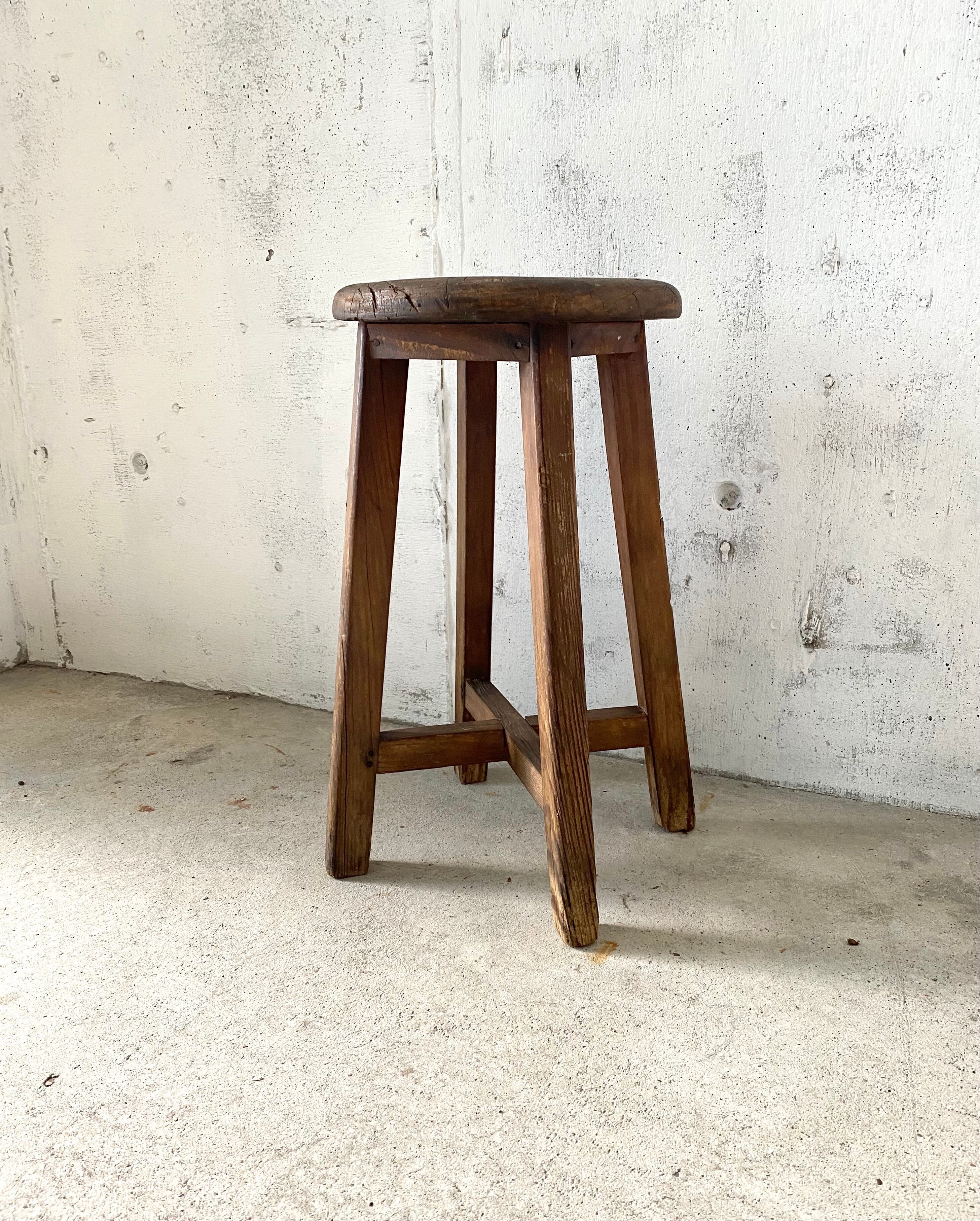 古いスツールになります。スレや剥げ、割れ、欠け、反り、当たりキズ、落としきれない汚れなどがあります。少しのがたつきはありますが,、全体的に状態も良いのでまだまだ実用的に活躍してくれます。