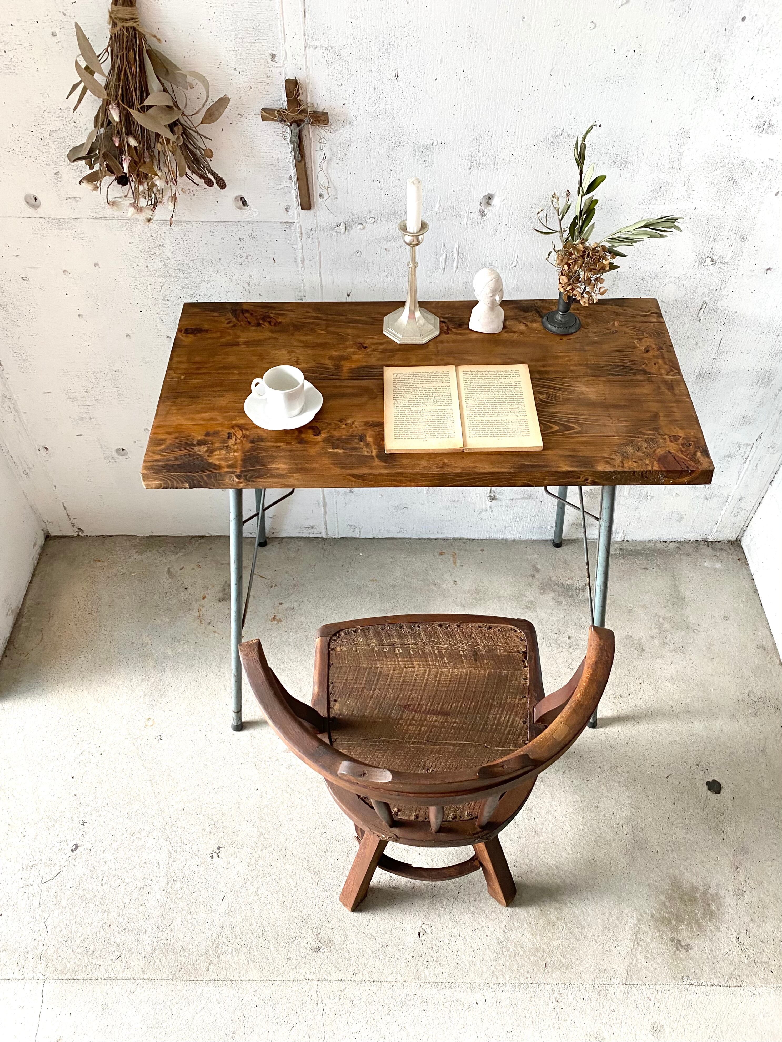 雰囲気の良い木板と古い鉄脚が良く馴染んだ鉄脚テーブル。天板下のオープンラックも雑誌などが置けるので便利です。2人掛けの向かい合わせテーブルや食卓以外の時間でも、日常の作業をするのに程よいサイズ感がオススメです。味のあるテーブルひとつプラスするだけで雰囲気あるお部屋作りが叶いそうです。