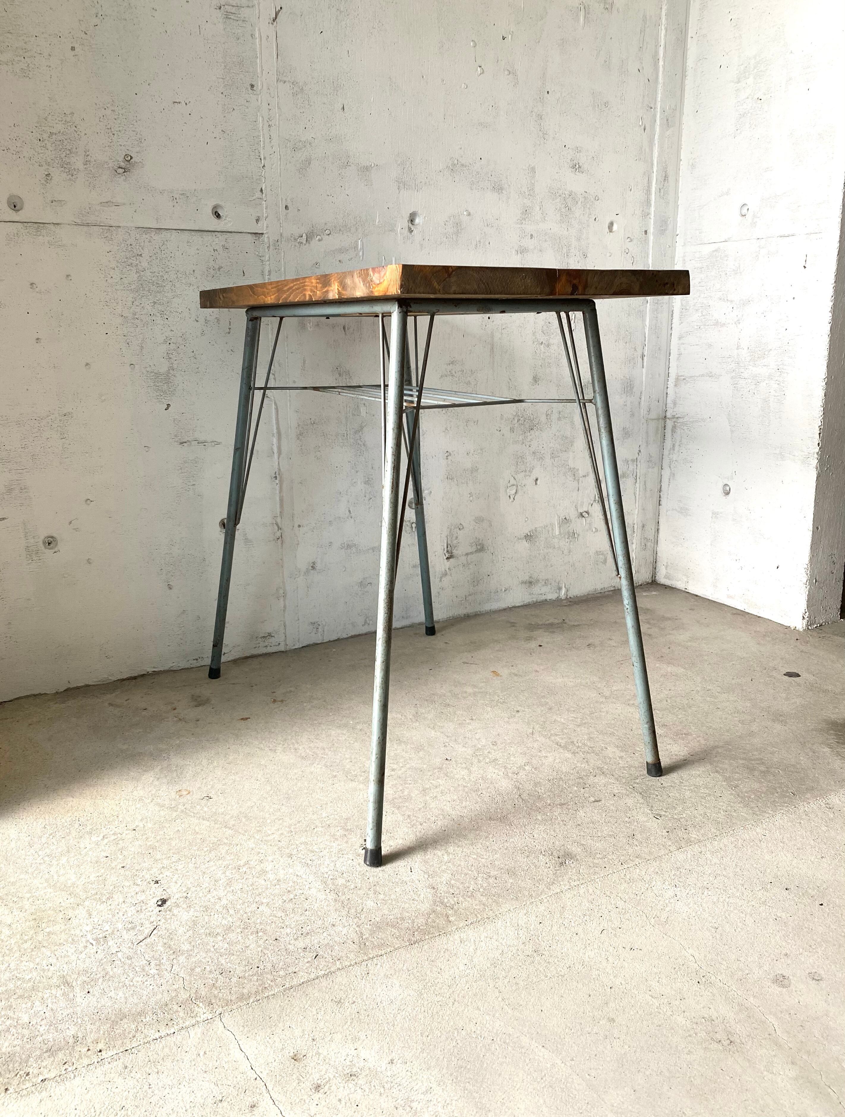 古材と古いアイアン脚のテーブルになります。スレや欠け、当たりキズ、割れ、禿げ、サビ、反り、隙間、落としきれない汚れなどがあります。古い鉄脚になりますので少しのがたつきはありますが、全体的に状態も良いのでまだまだ実用的に活躍してくれます。