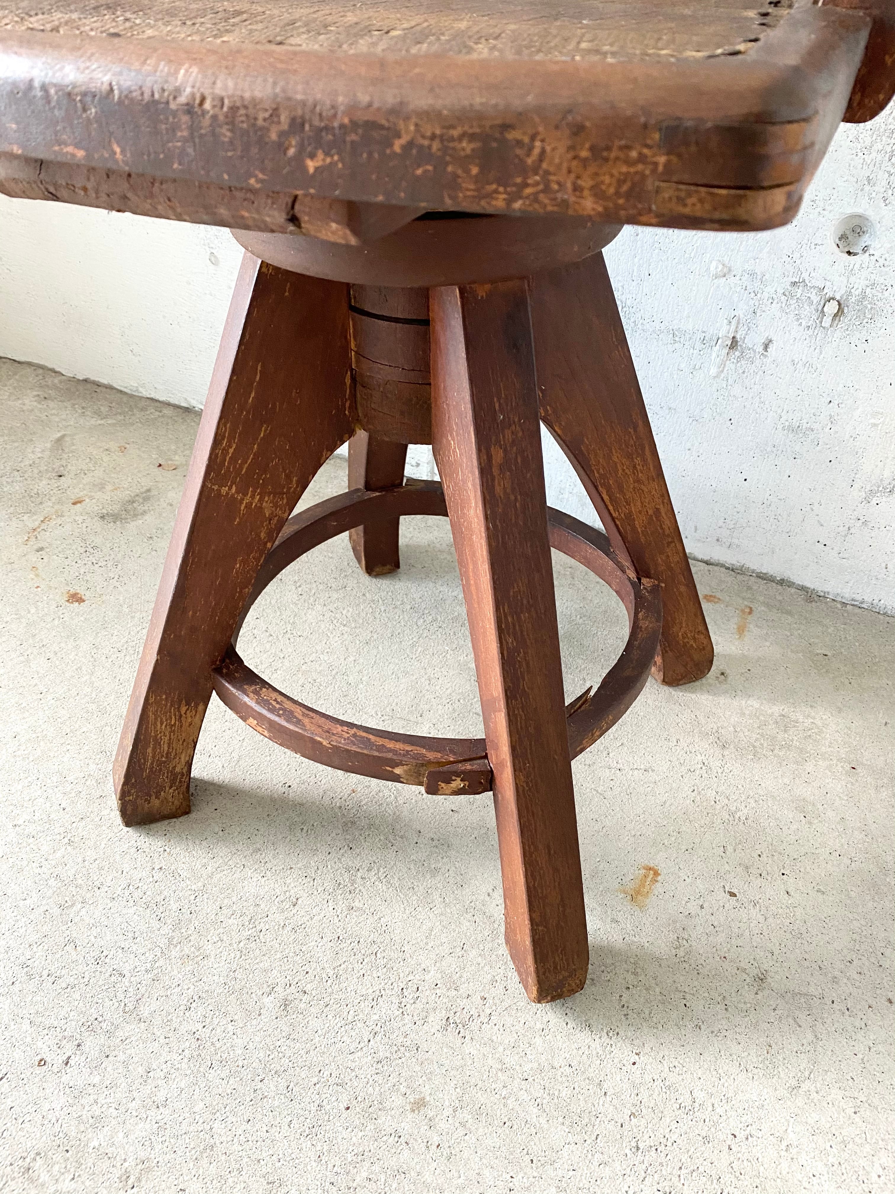 古い椅子になります。スレや剥げ、サビ、割れ、少しの傾き、落としきれない汚れなどがあります。椅子の回転はしません。古い椅子になりますので、がたつきとぐらつきがあります。全体的に状態も良いのでまだまだ活躍してくれます。