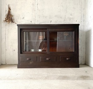 ガラス引戸の収納棚[古家具]