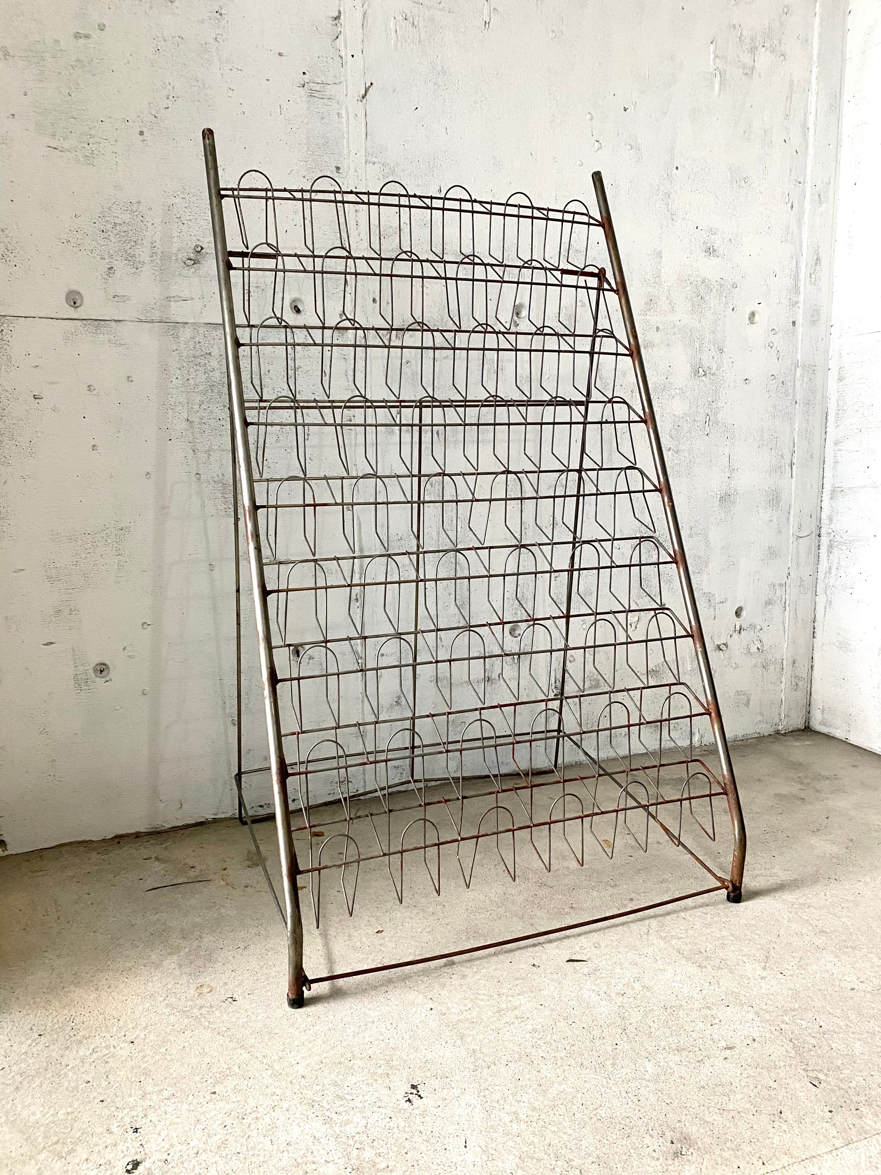 経年変化の程良いサビ感、インダストリアルな雰囲気が格好良いラック。折り畳み式になっていて、使い勝手も良いです。リビングや趣味部屋などで本やポストカード、ドライフラワーを飾りながら収納しても素敵です。