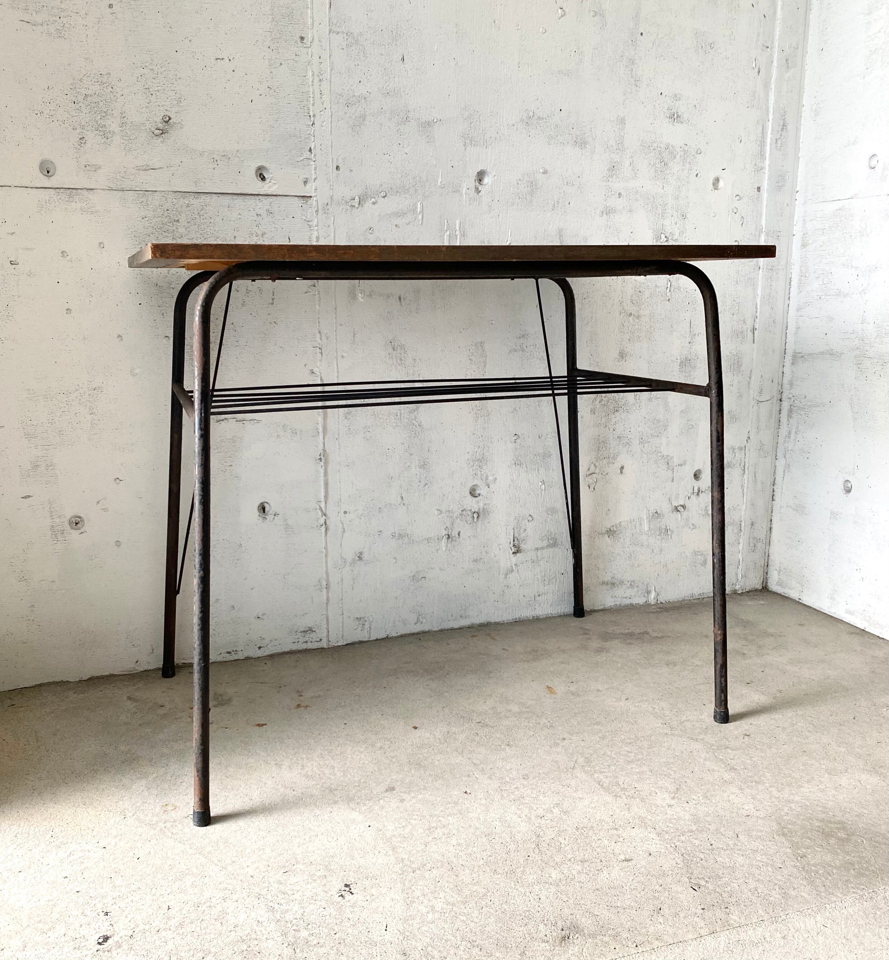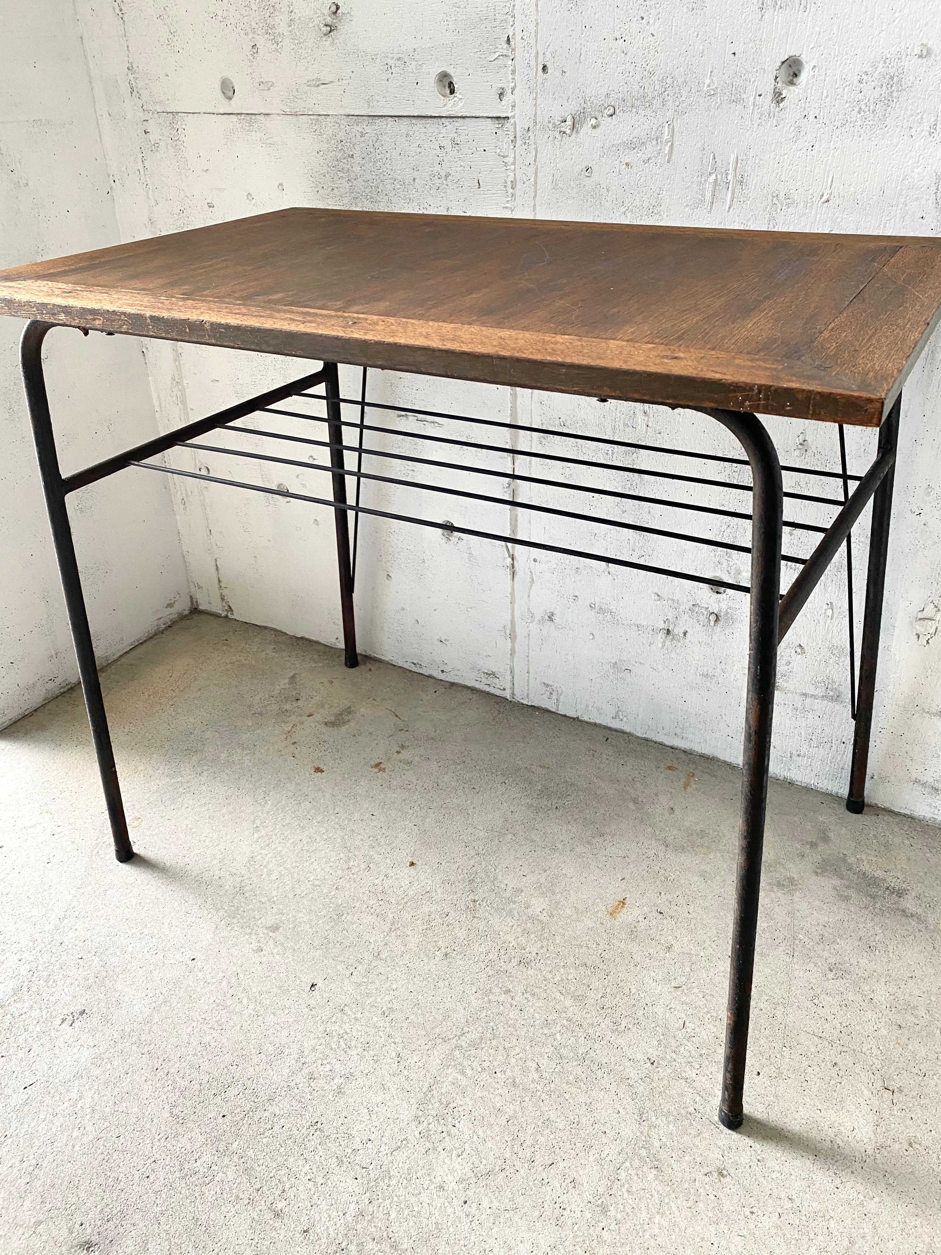 雰囲気の良い古材と古いサビ脚が良く馴染んだ鉄脚テーブル。天板下のオープンラックも雑誌などが置けるので便利です。2人掛けの向かい合わせテーブルや食卓以外の時間でも、日常の作業をするのに程よいサイズ感がオススメです。味のあるテーブルひとつプラスするだけで雰囲気あるお部屋作りが叶いそうです。