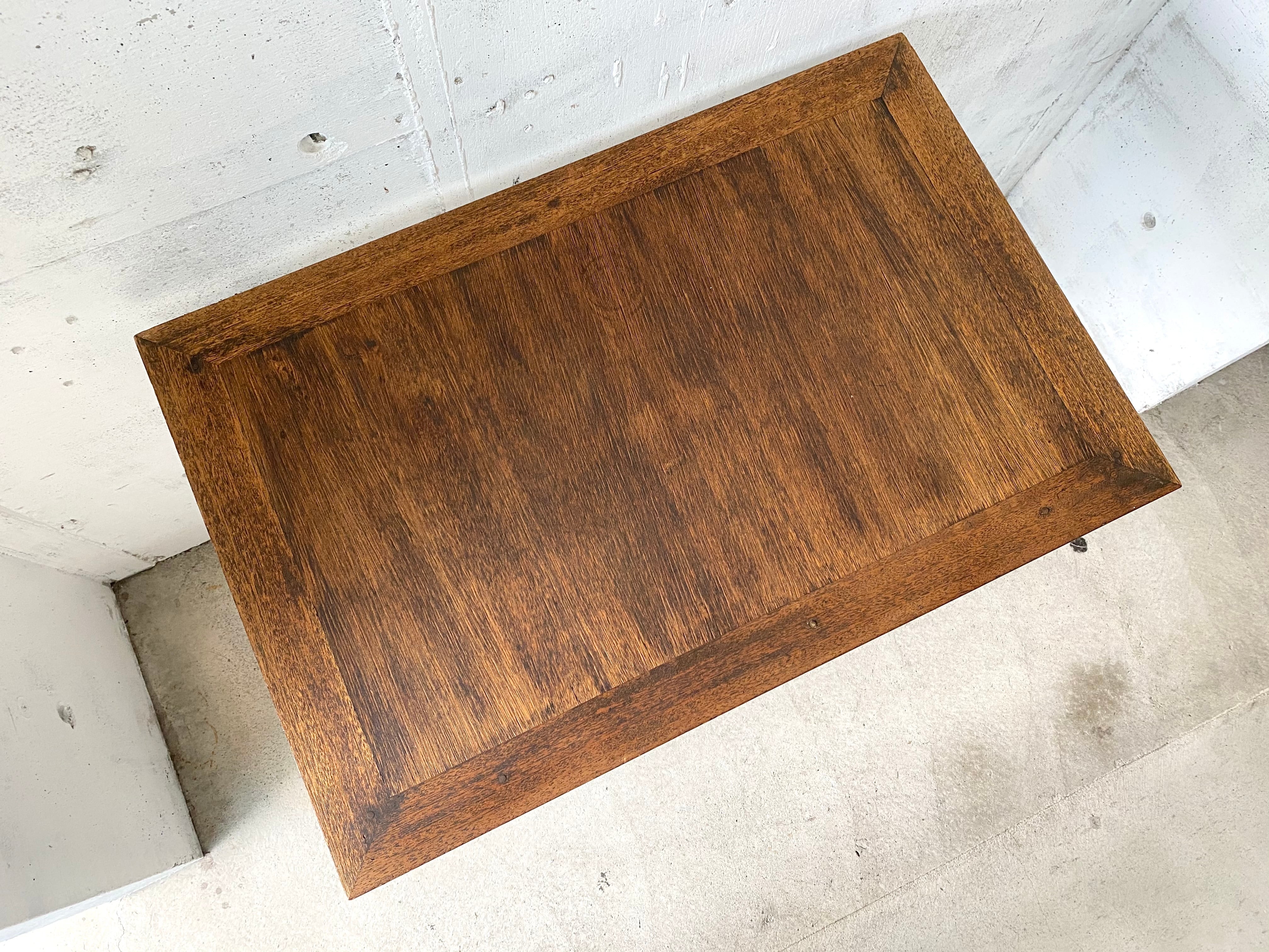 古材とサビ脚のテーブルになります。スレや欠け、当たりキズ、割れ、禿げ、サビ、反り、隙間、落としきれない汚れなどがあります。古い鉄脚になりますので少しのがたつきはありますが、全体的に状態も良いのでまだまだ実用的に活躍してくれます。