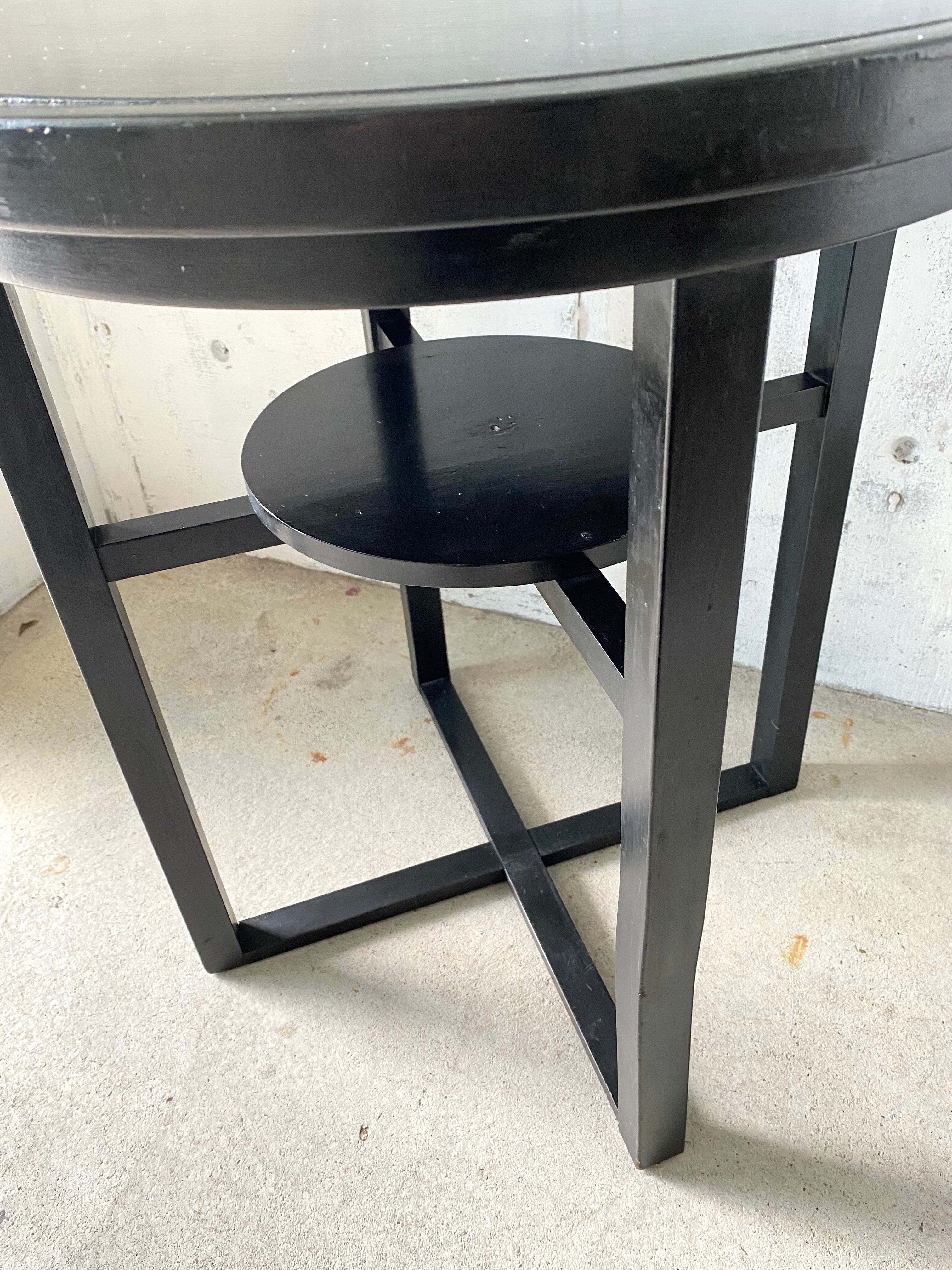 古いラウンドテーブルになります。スレや剥げ、当たりキズ、隙間、浮き、落としきれない汚れなどがあります。少しのがたつきはありますが、全体的に状態も良いのでまだまだ実用的に活躍してくれます。