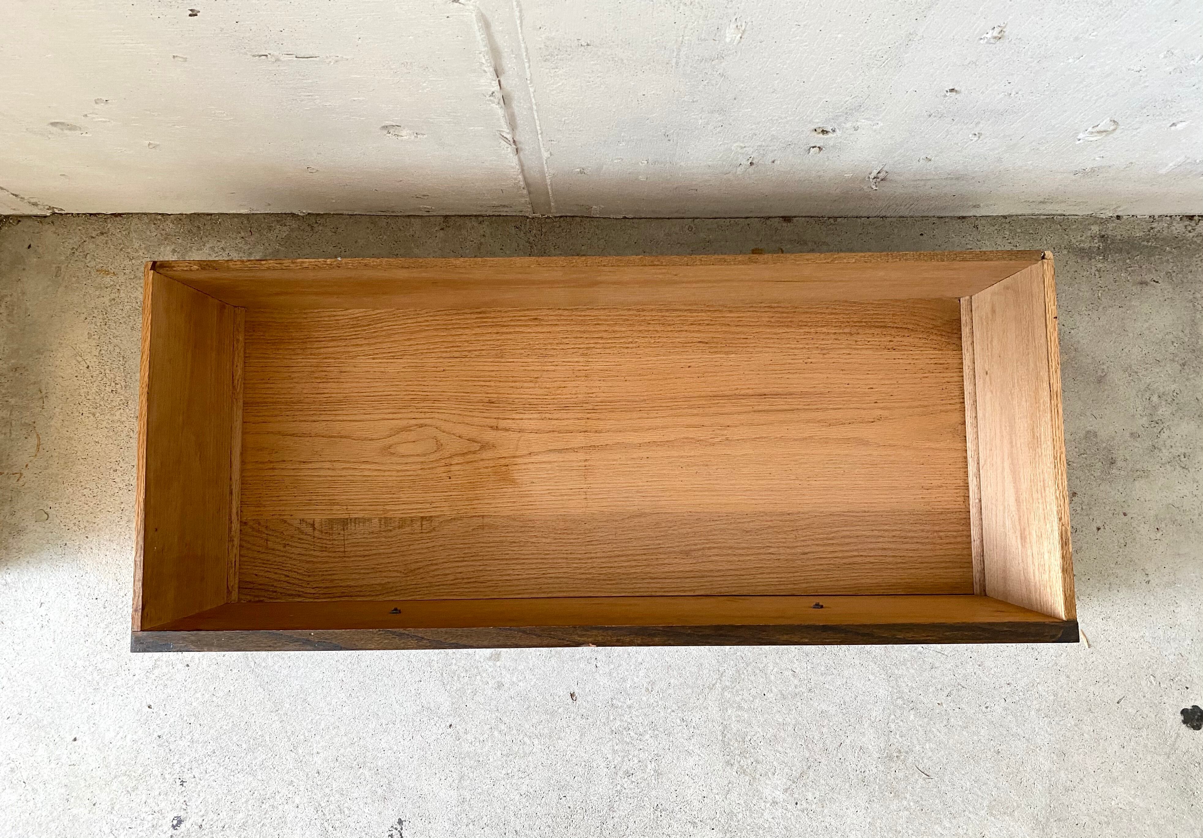 古いローボードになります。スレや欠け、当たりキズ、割れ、反り、サビ、隙間、落としきれない汚れなどがあります。引出しの開閉は比較的スムーズに行え、使用上問題なくお使いいただけます。全体的に状態も良いのでまだまだ実用的に活躍してくれます。
