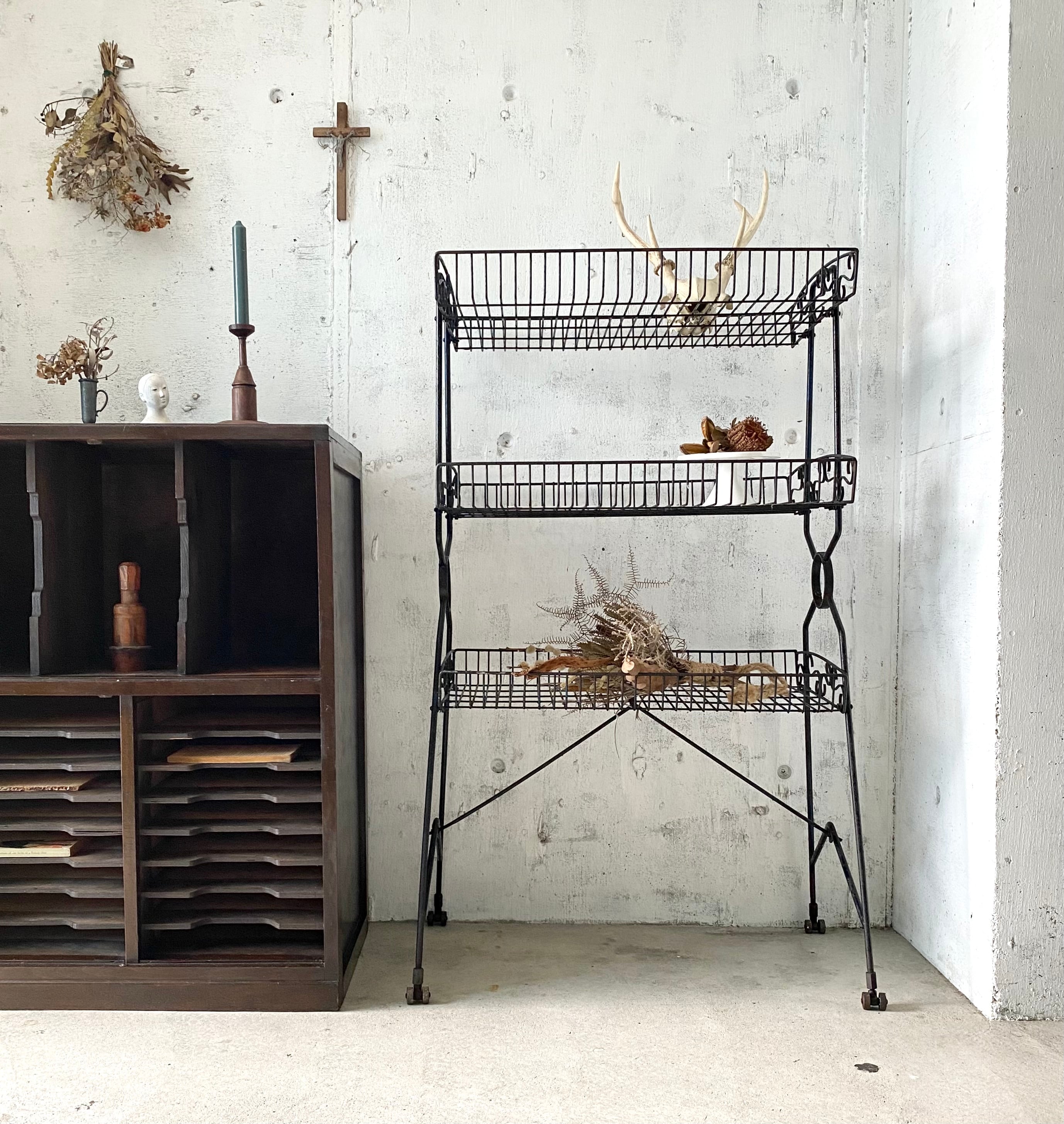 経年変化の程良い質感のワイヤー、インダストリアルな雰囲気が格好良いワイヤーラック。リビングで本や小物を飾りながら収納したり、キッチンで食器のストック棚として、衣装部屋や脱衣所で服やタオル置きとしても素敵です。