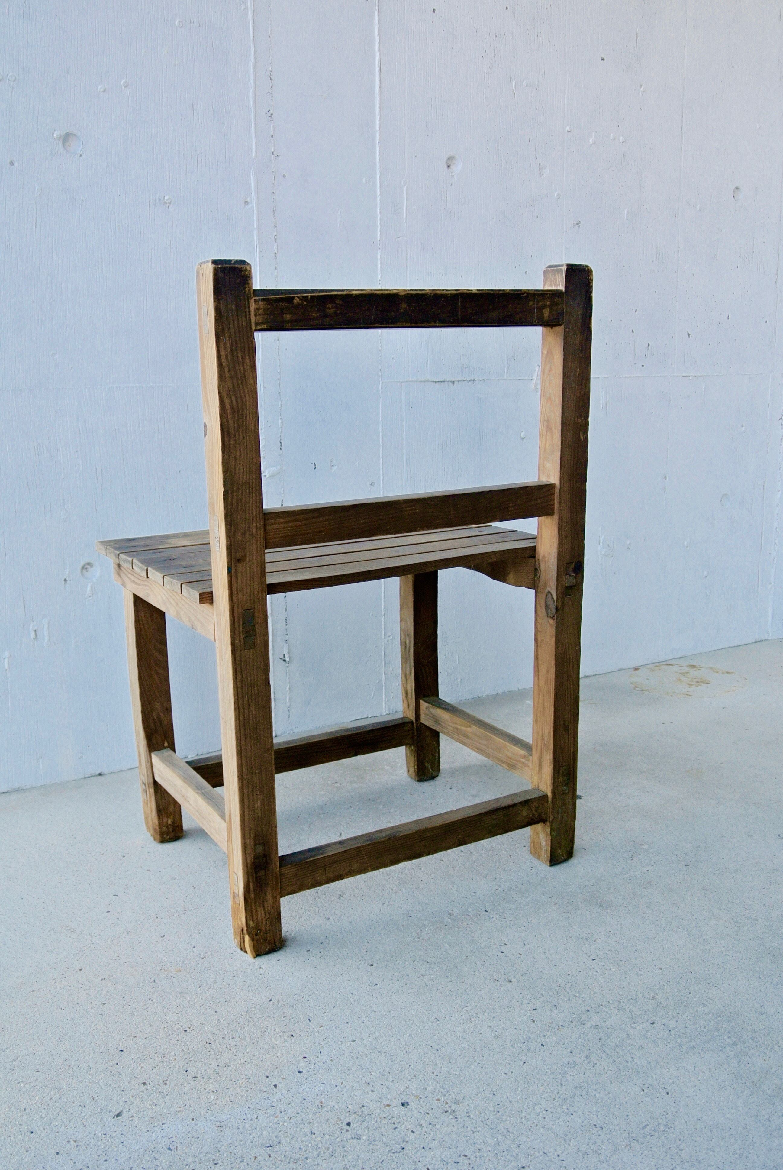 古い木製の椅子になりますので、スレや剥げ、当たりキズ、落としきれない汚れなどがあります。特にがたつき、ぐらつきもなく、全体的に状態も良いのでまだまだ実用的に活躍してくれます。