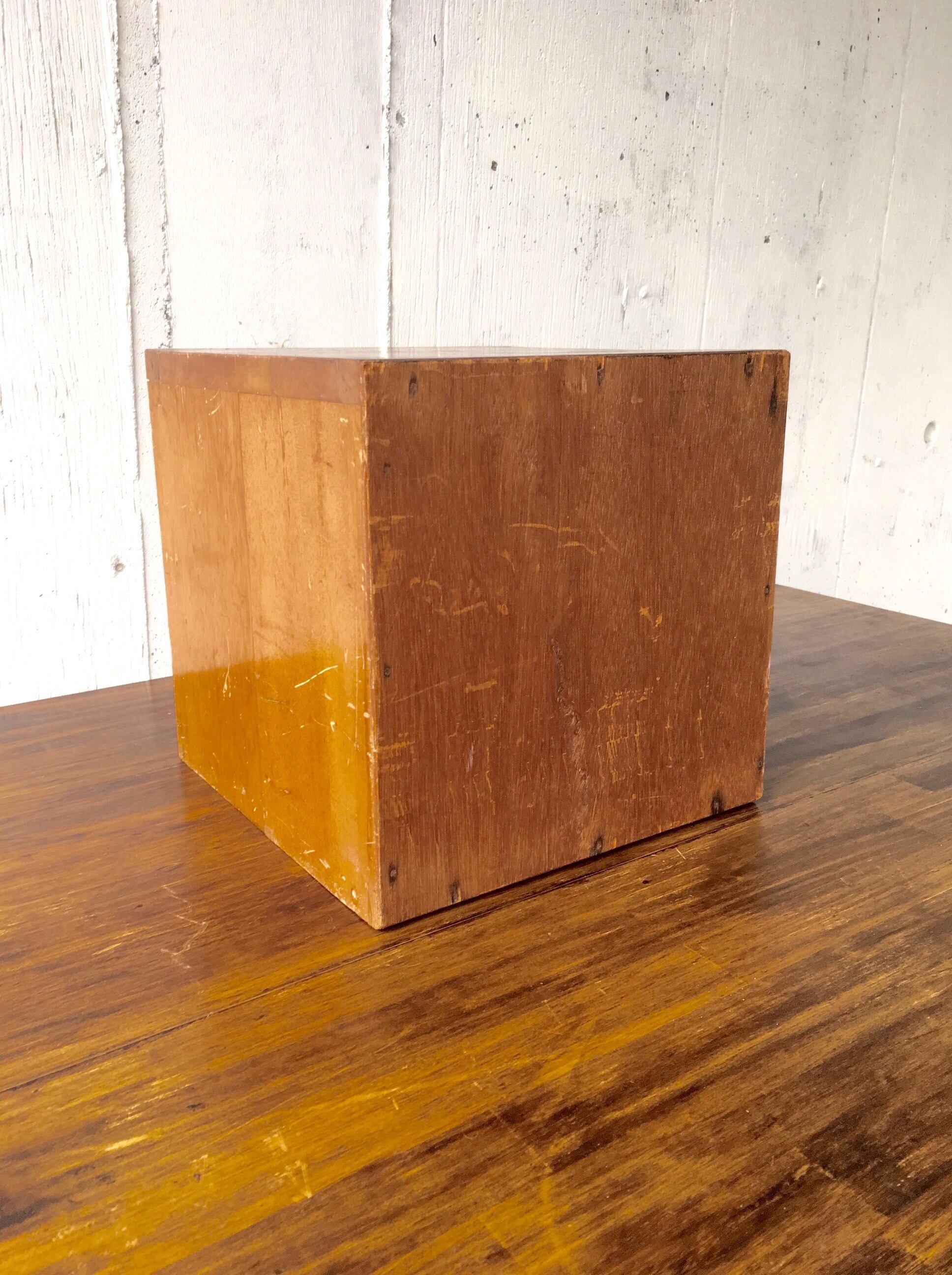 古い小引出しになります。少しのスレや当たりキズ、剥げ、落としきれない汚れなどがあります。引出しの開閉もスムーズに行え日常気軽にお使いいただけます。全体的に綺麗で状態も良く、まだまだ実用的にお使いいただけます。