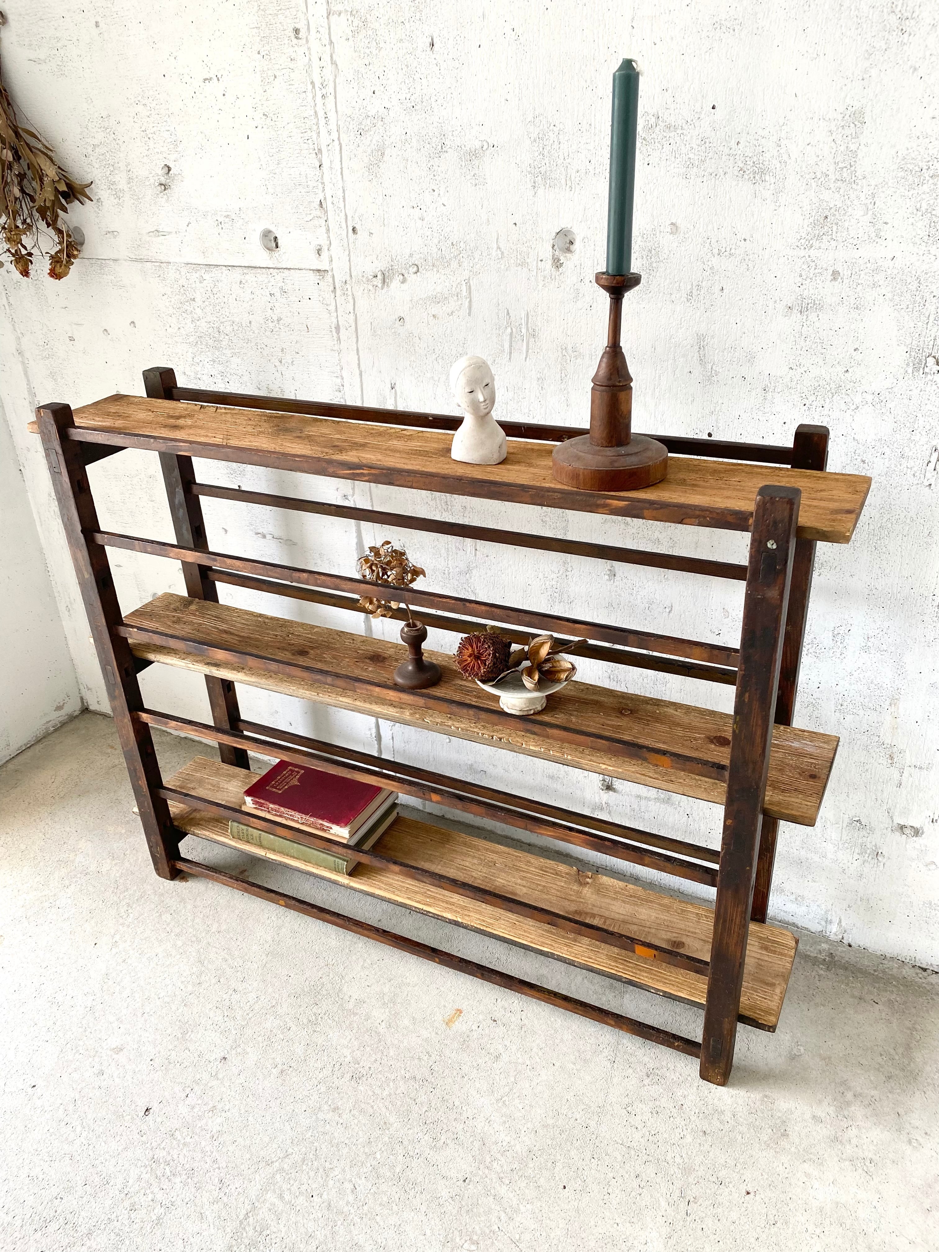 経年変化の古木の風合い、すっきりとした姿が感じ良いオープンラック。奥行も深すぎず、場所を取らないので使いやすいです。本や小物、植物のディスプレイ棚としてや、キッチンで食器や調味料のストック棚、ショップのディスプレイ棚としてもオススメです。