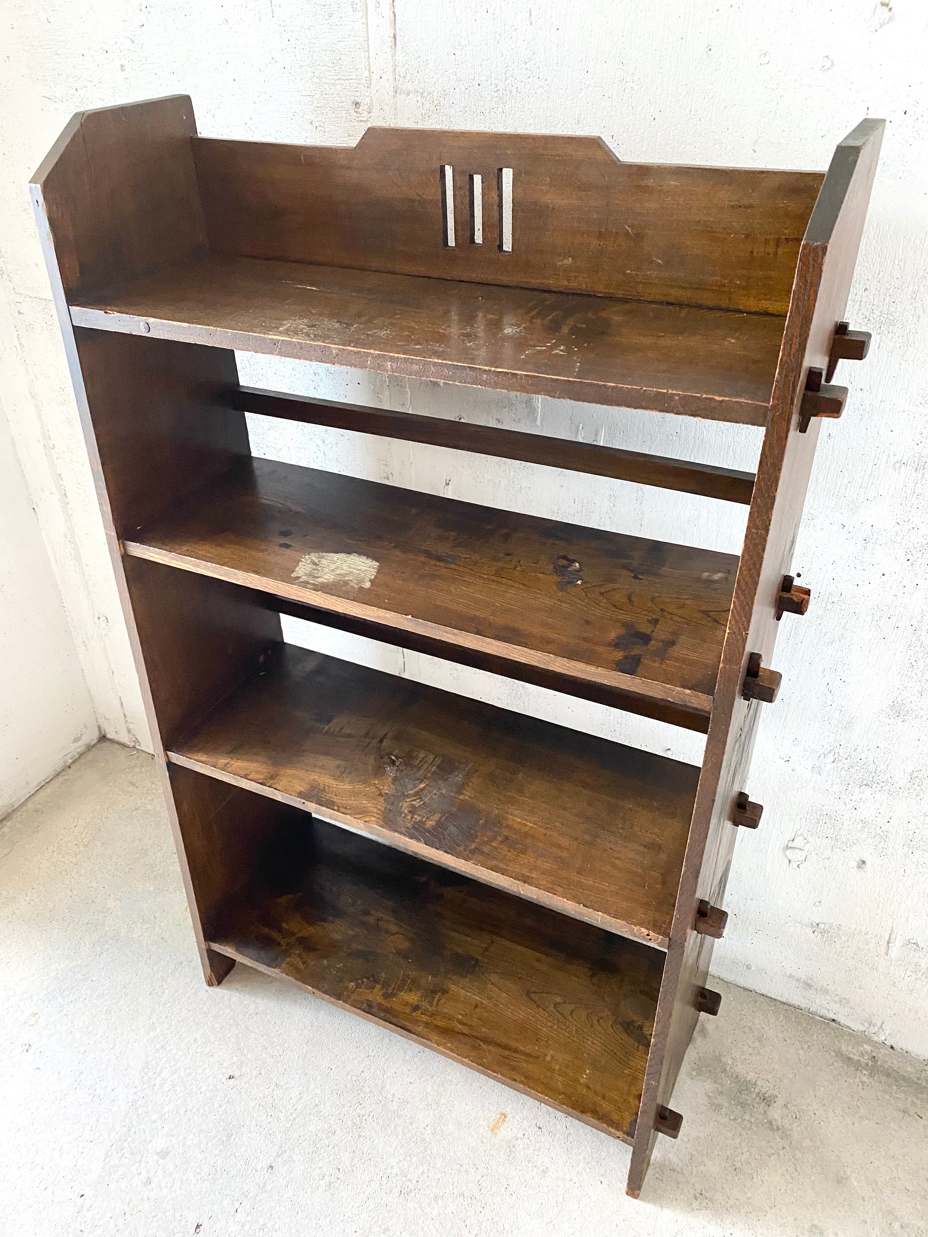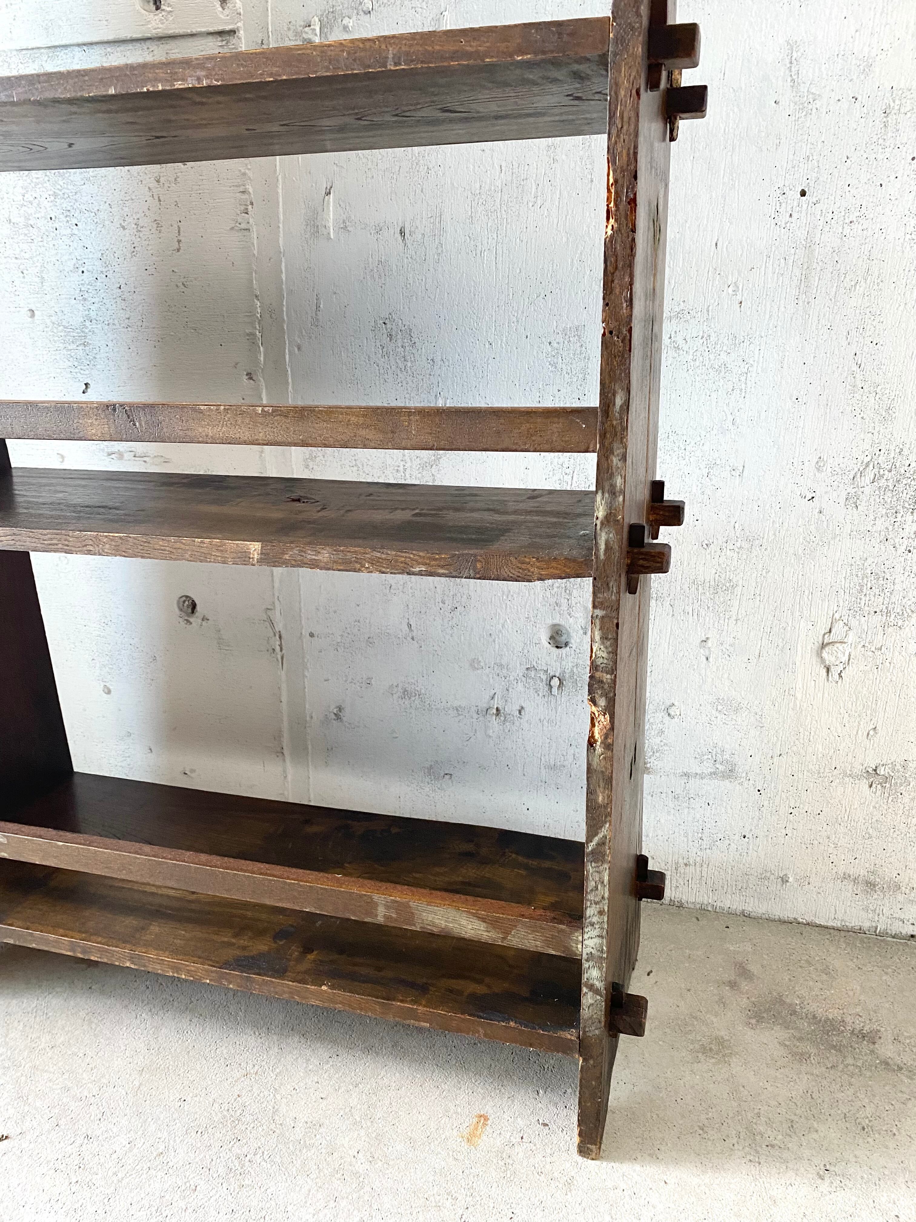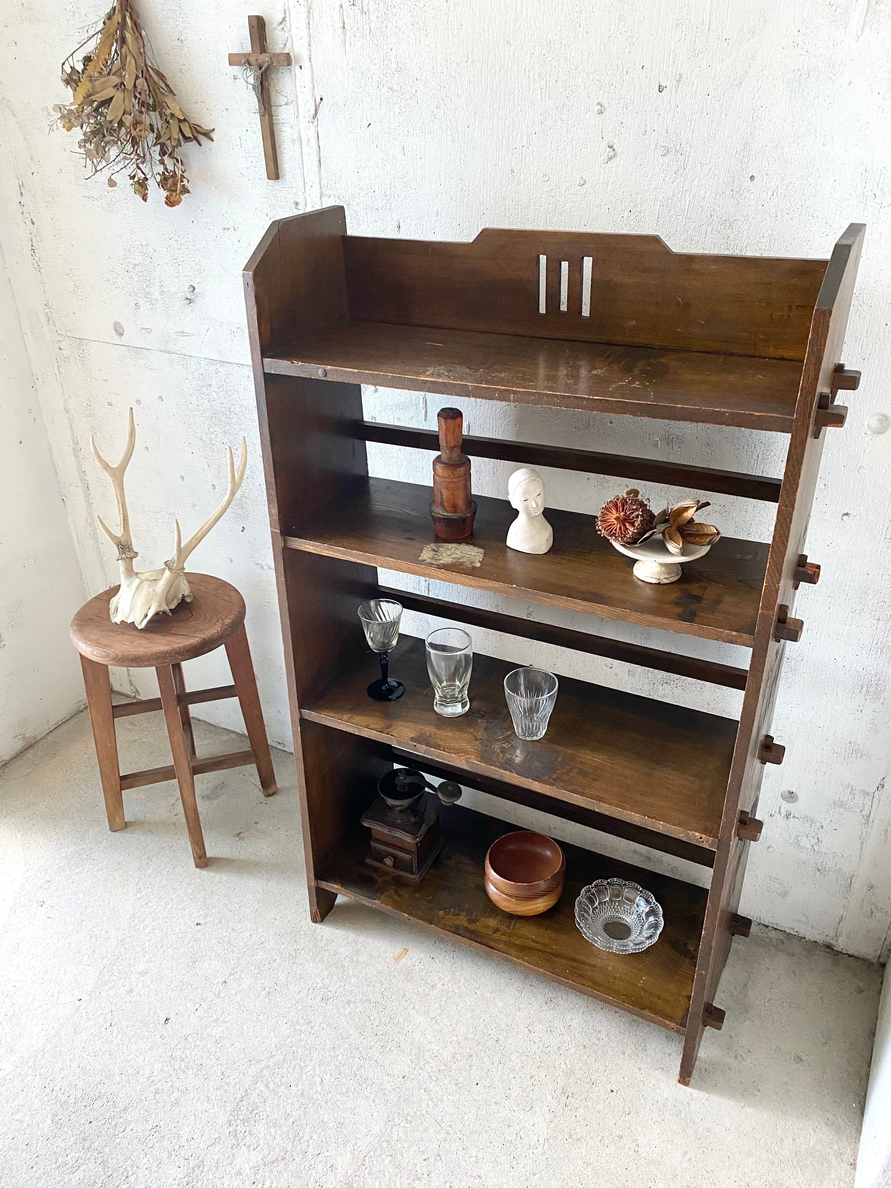 経年変化の落ち着きある木肌、上品な佇まいが感じ良いオープンラック。釘を使わず楔で組み立てられていて、しっかりとしています。キッチンで食器や調味料の収納棚としてや、リビングでお気に入りのコレクションや植物を飾るディスプレイ棚としても素敵です。