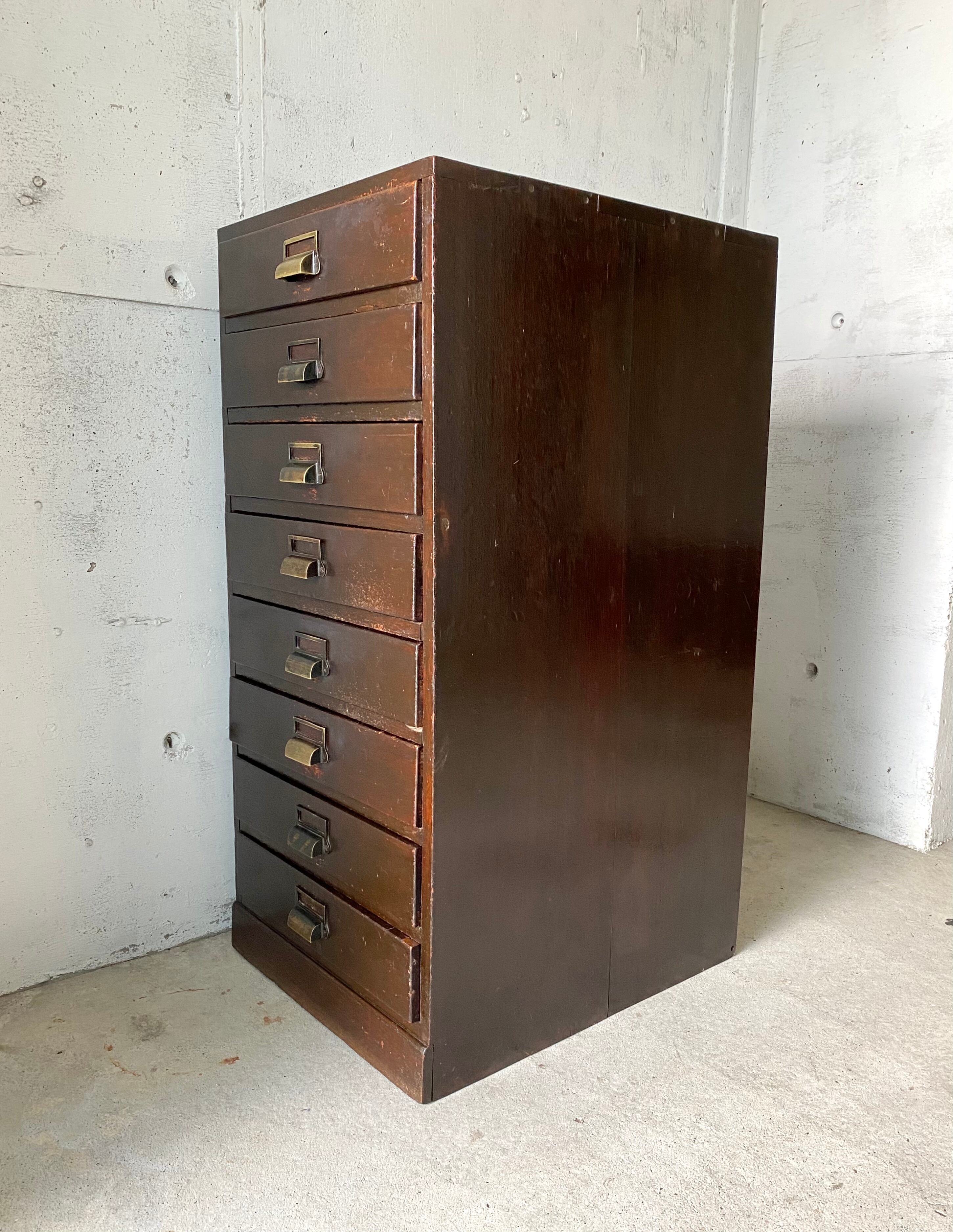 存在感のある姿、8杯の引出しが綺麗に並んだ収納棚。収納力も十分です。リビングやアトリエで紙物や書類、小物などの収納としても素敵にお使い頂けそうです。