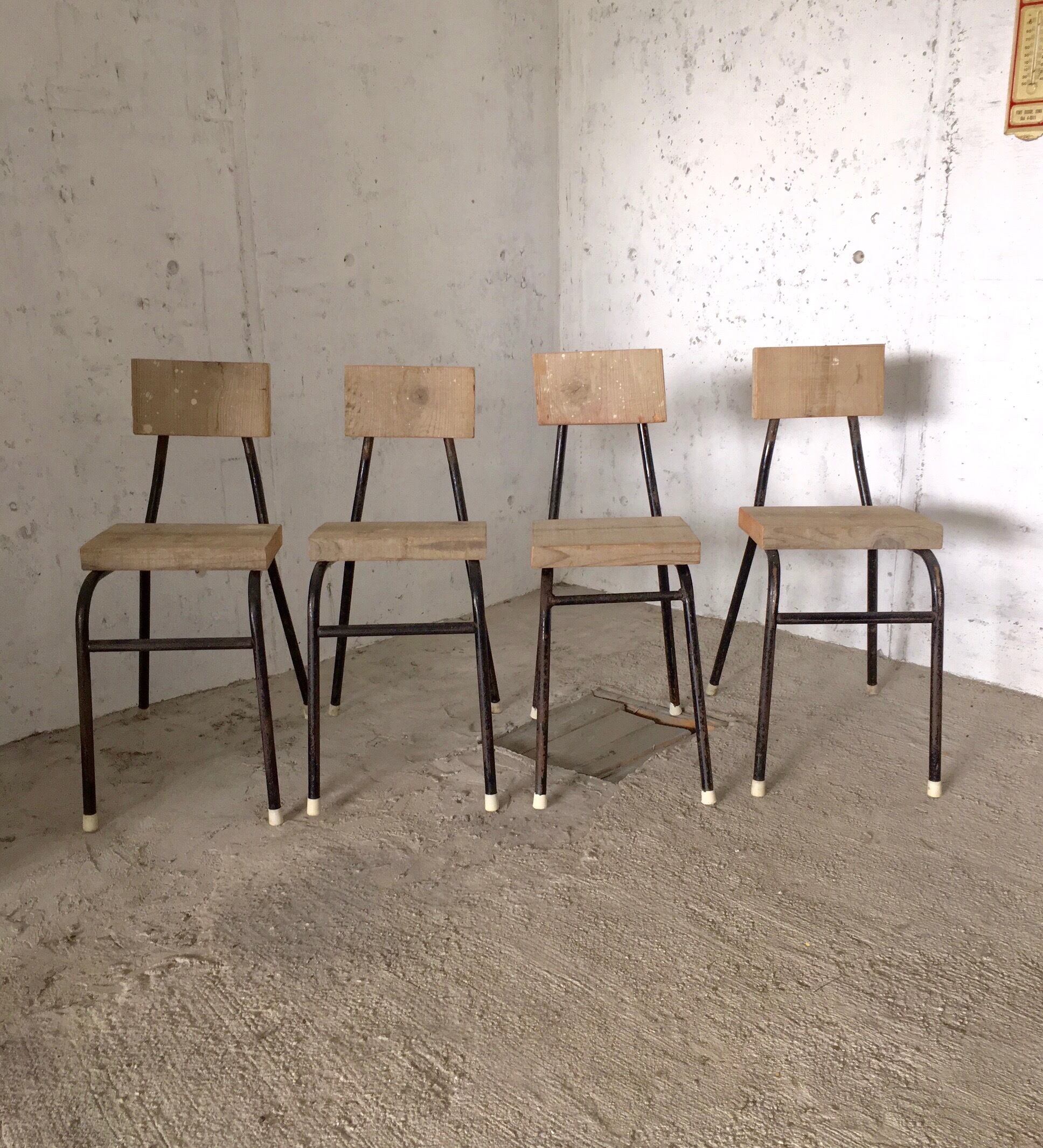 古い椅子になりますので、スレや剥げ、当たりキズ、サビ,落としきれない汚れなどがあります。古い鉄脚になりますので少しのサイズ違い、少しのがたつきがありますが、強度上は問題なくお使いいただけます。古材板の厚みもあり、しっかりとしていて、全体的に状態も良いので、まだまだ実用的に活躍してくれます。