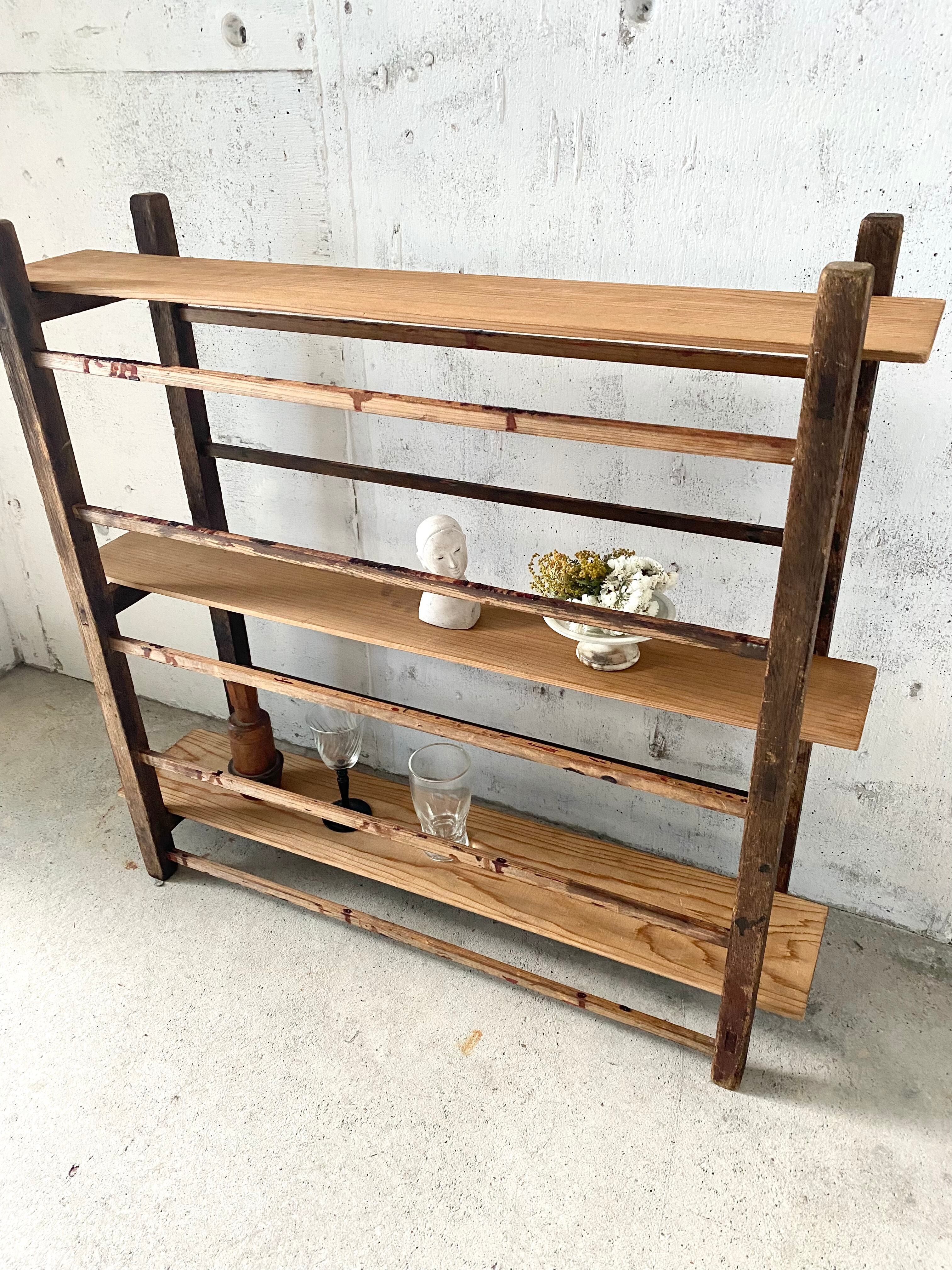 古いシェルフになります。スレや欠け、当たりキズ、割れ、禿げ、隙間、落としきれない汚れなどがあります。全体的に状態も良いのでまだまだ実用的に活躍してくれます。